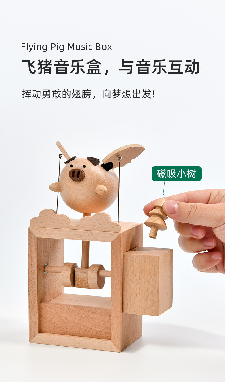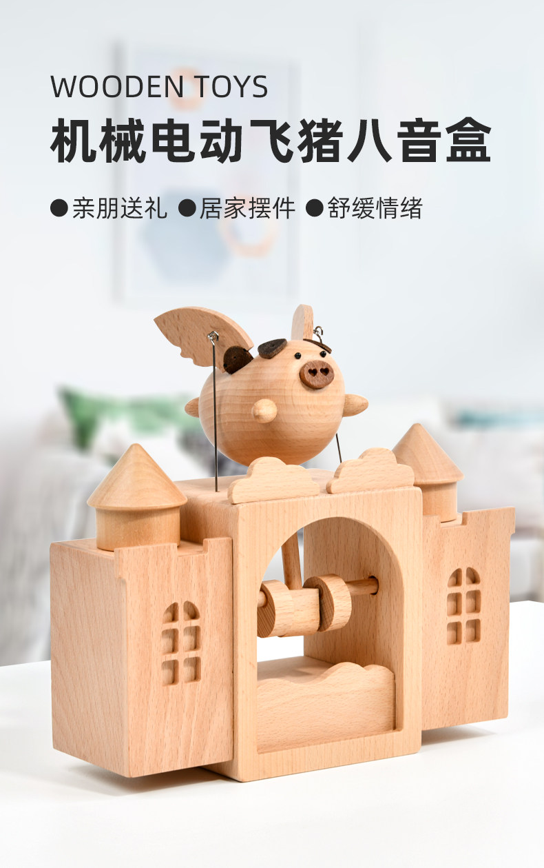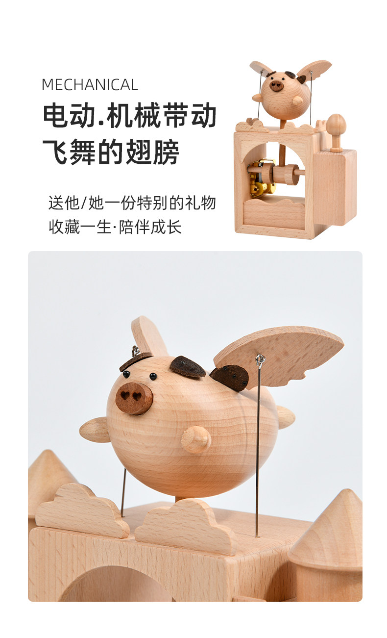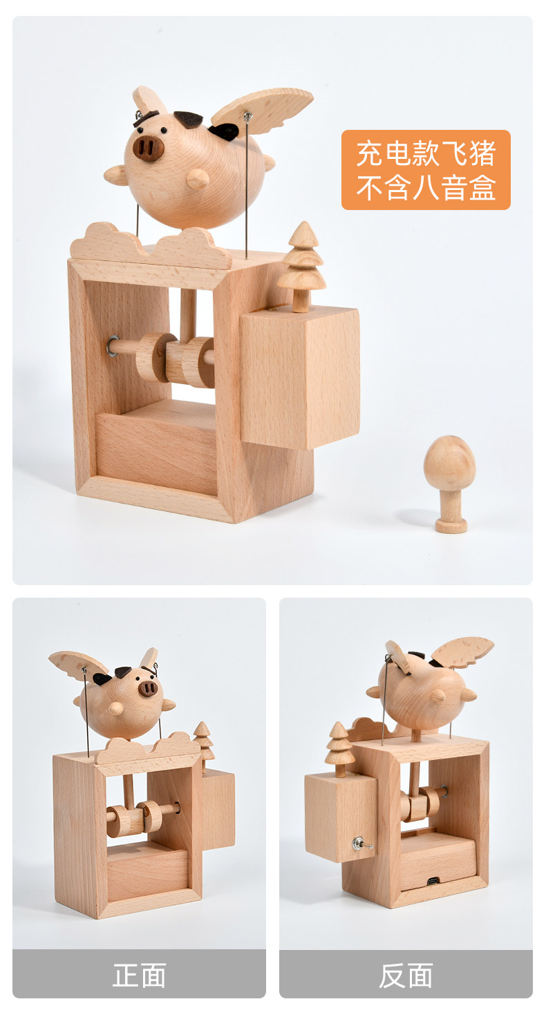 Children's Educational Electric Little Flying Pig Creative Birthday Christmas Gift Music Box Wooden Mechanical Ornament Music Box