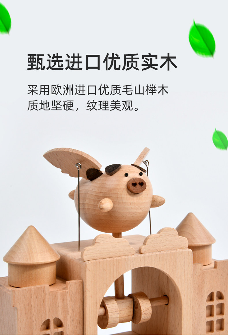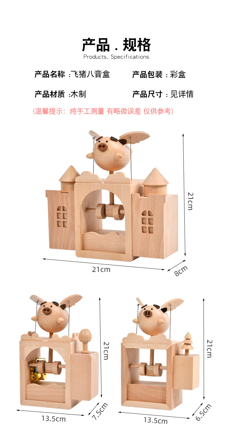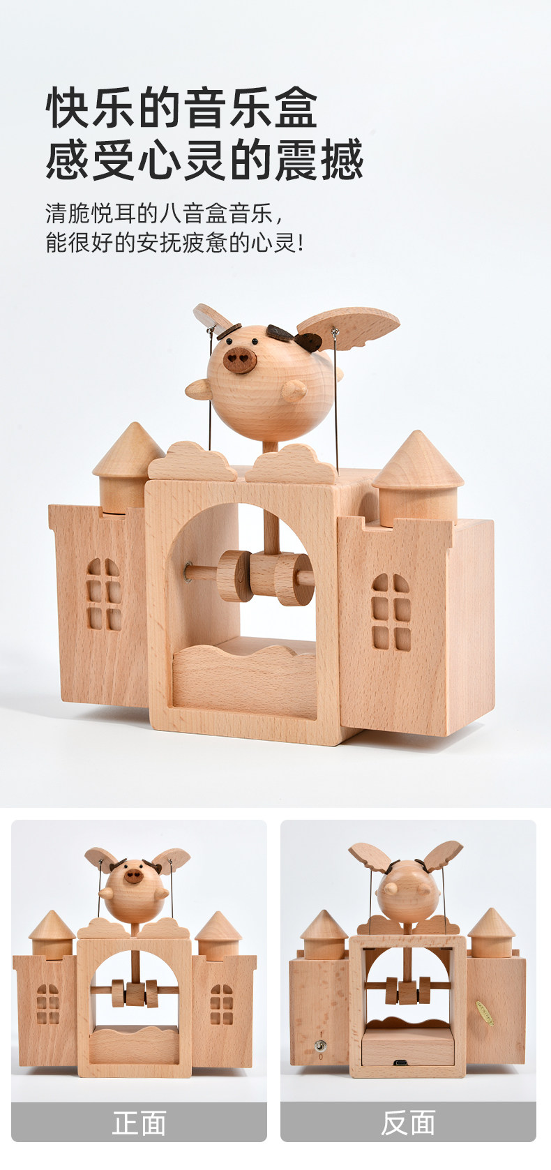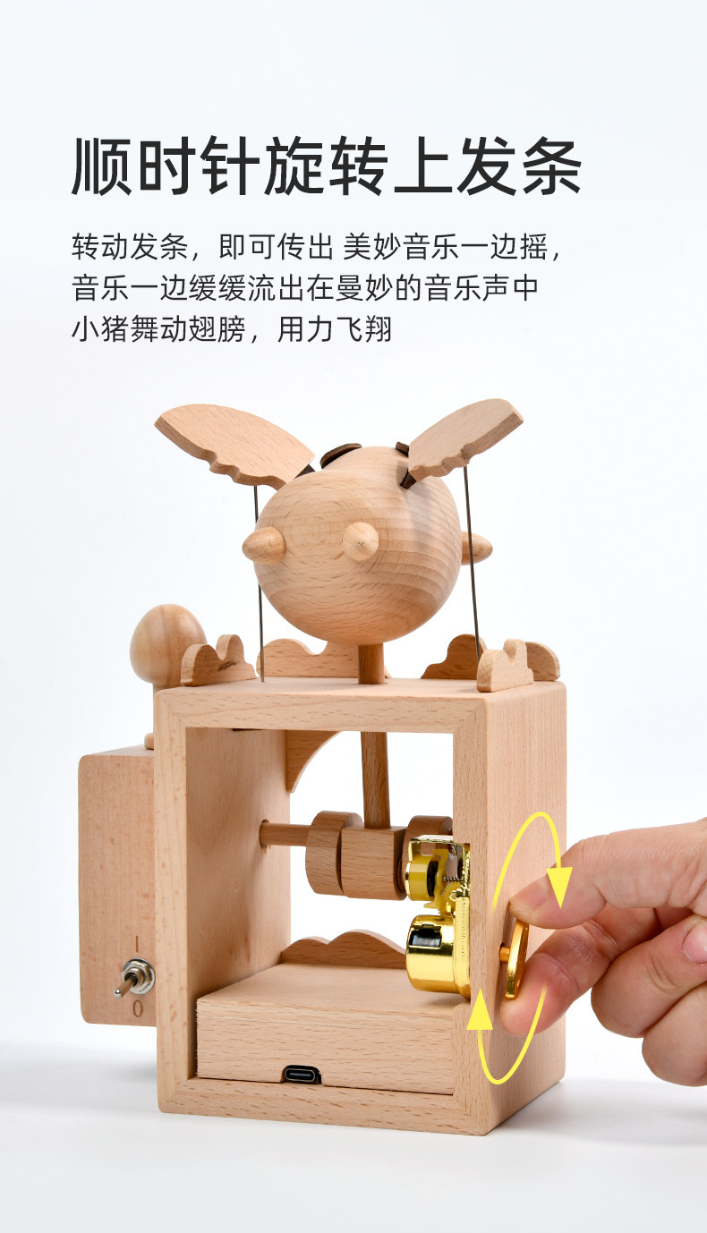 Children's Educational Electric Little Flying Pig Creative Birthday Christmas Gift Music Box Wooden Mechanical Ornament Music Box