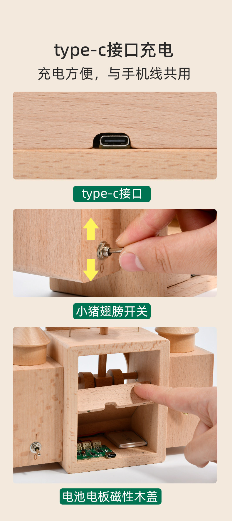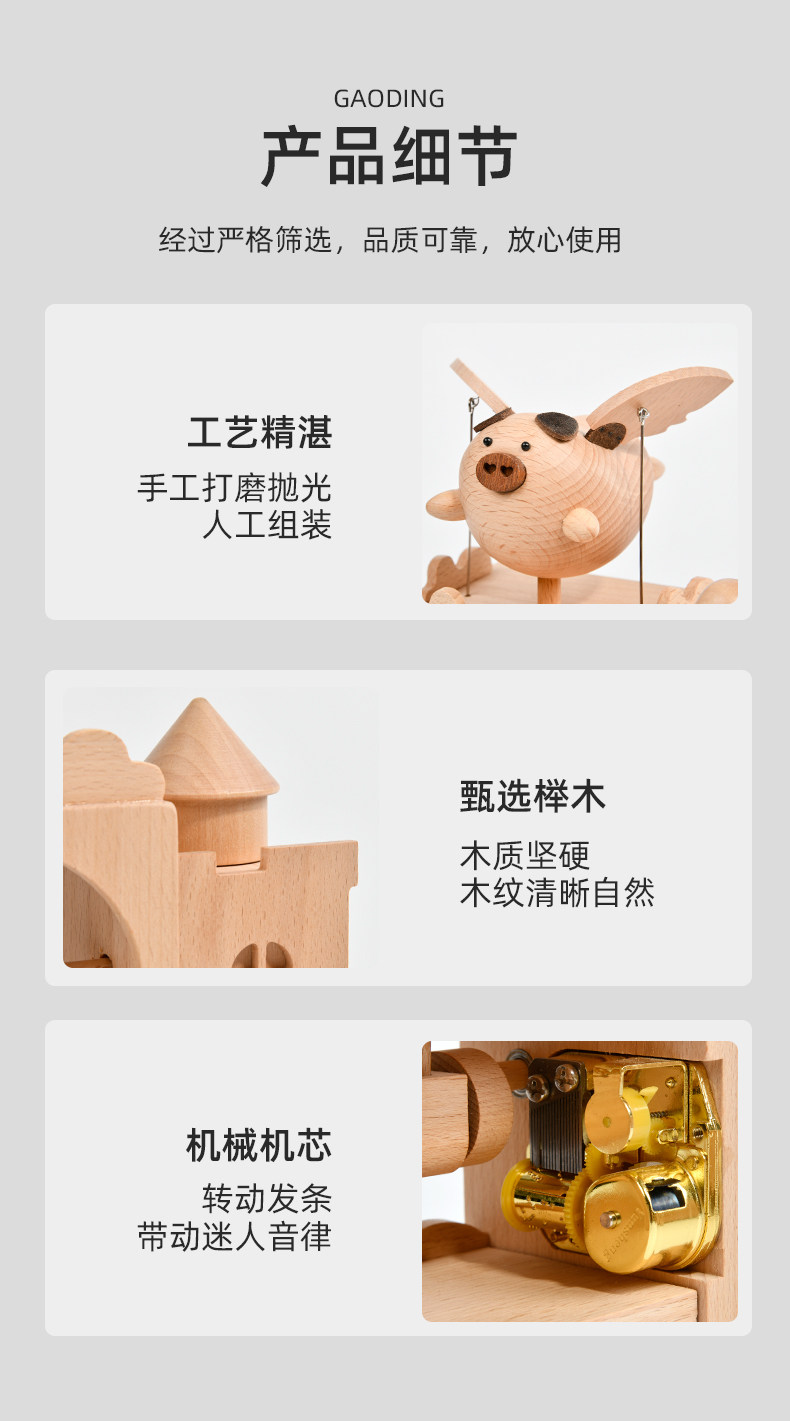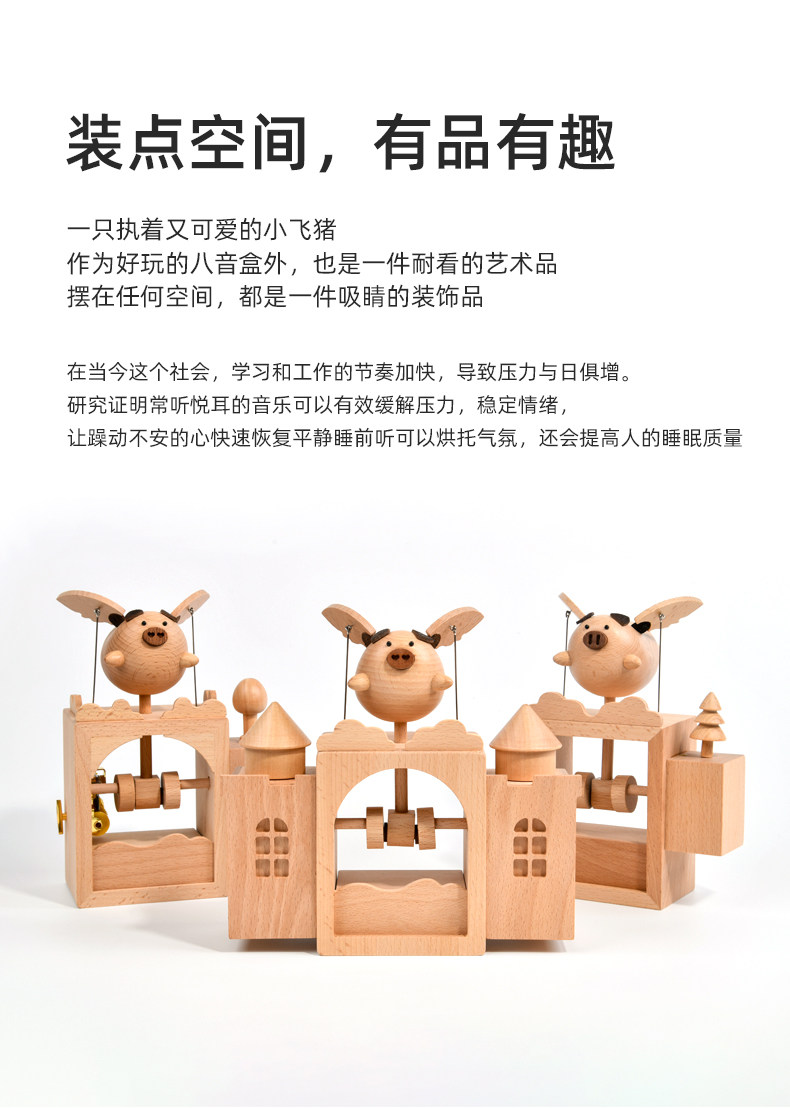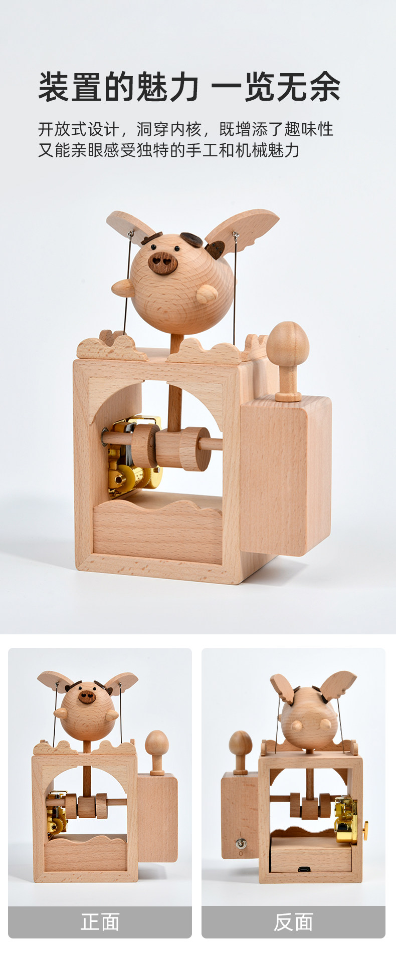 Children's Educational Electric Little Flying Pig Creative Birthday Christmas Gift Music Box Wooden Mechanical Ornament Music Box