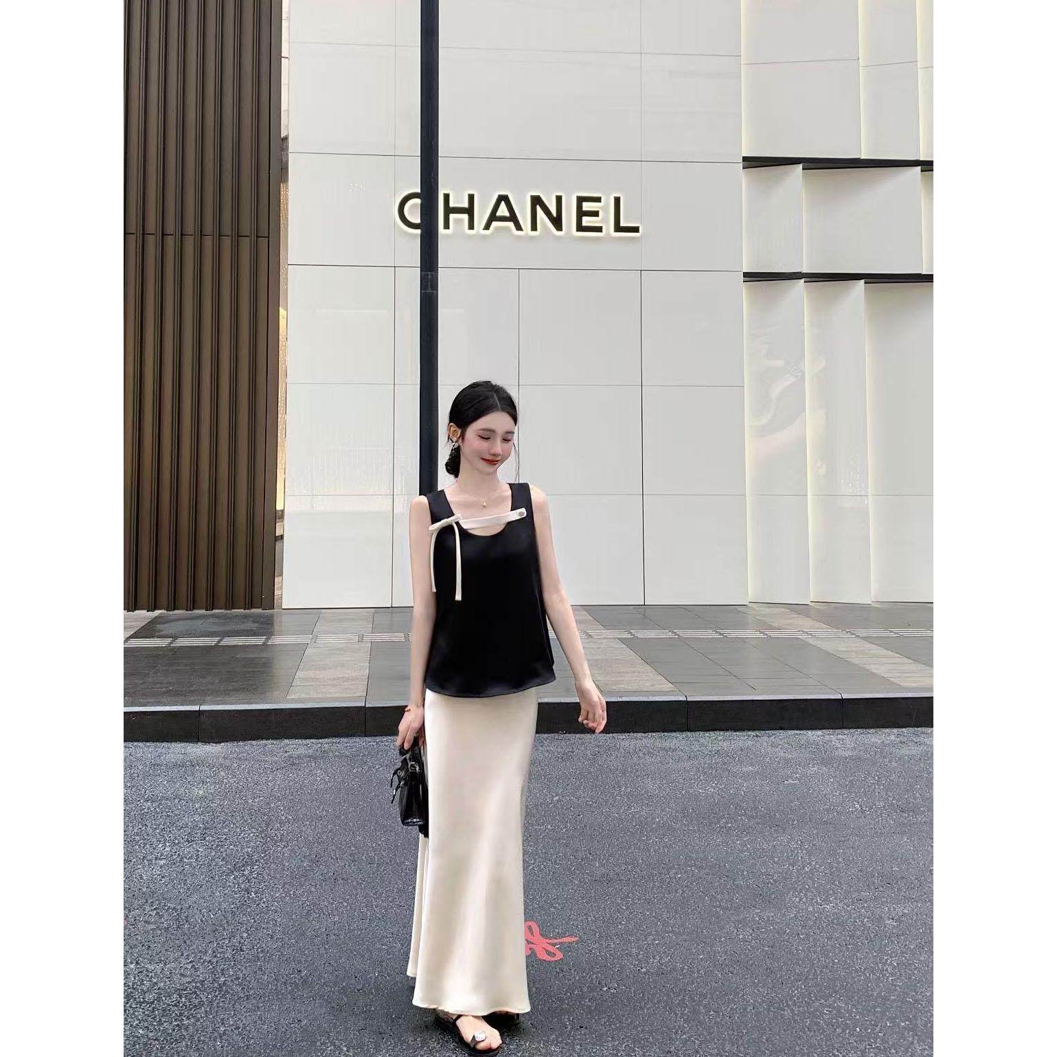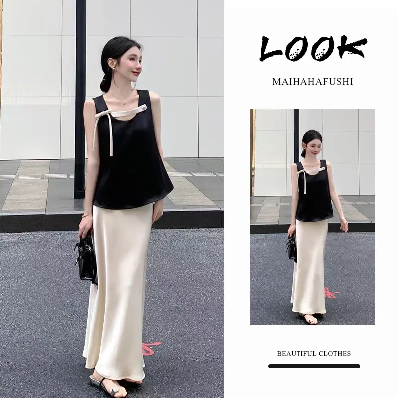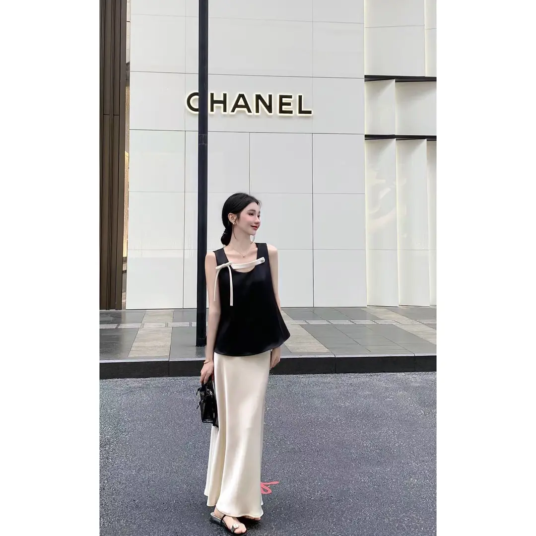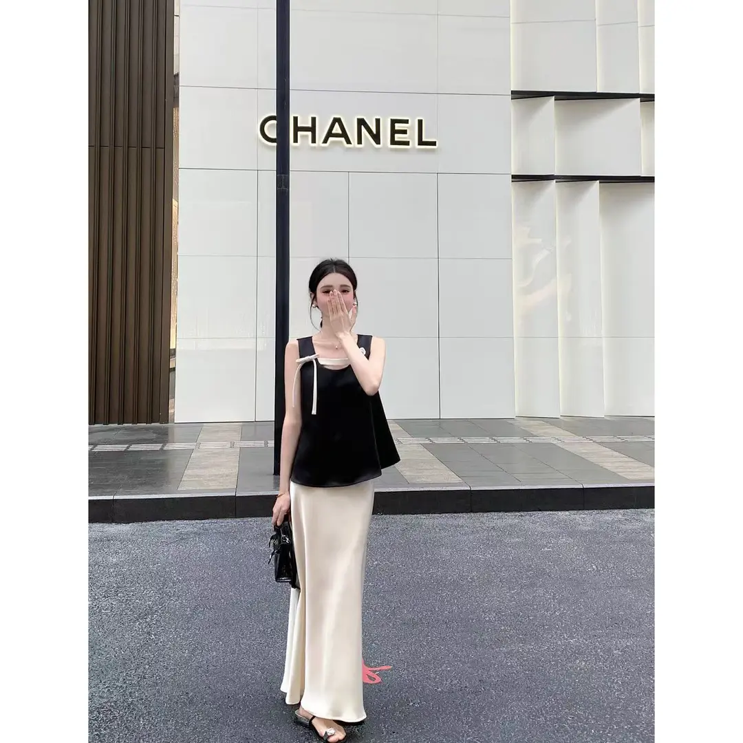 2025夏日穿搭一整套气质高级感无袖上衣女法式高腰半身裙两件套装