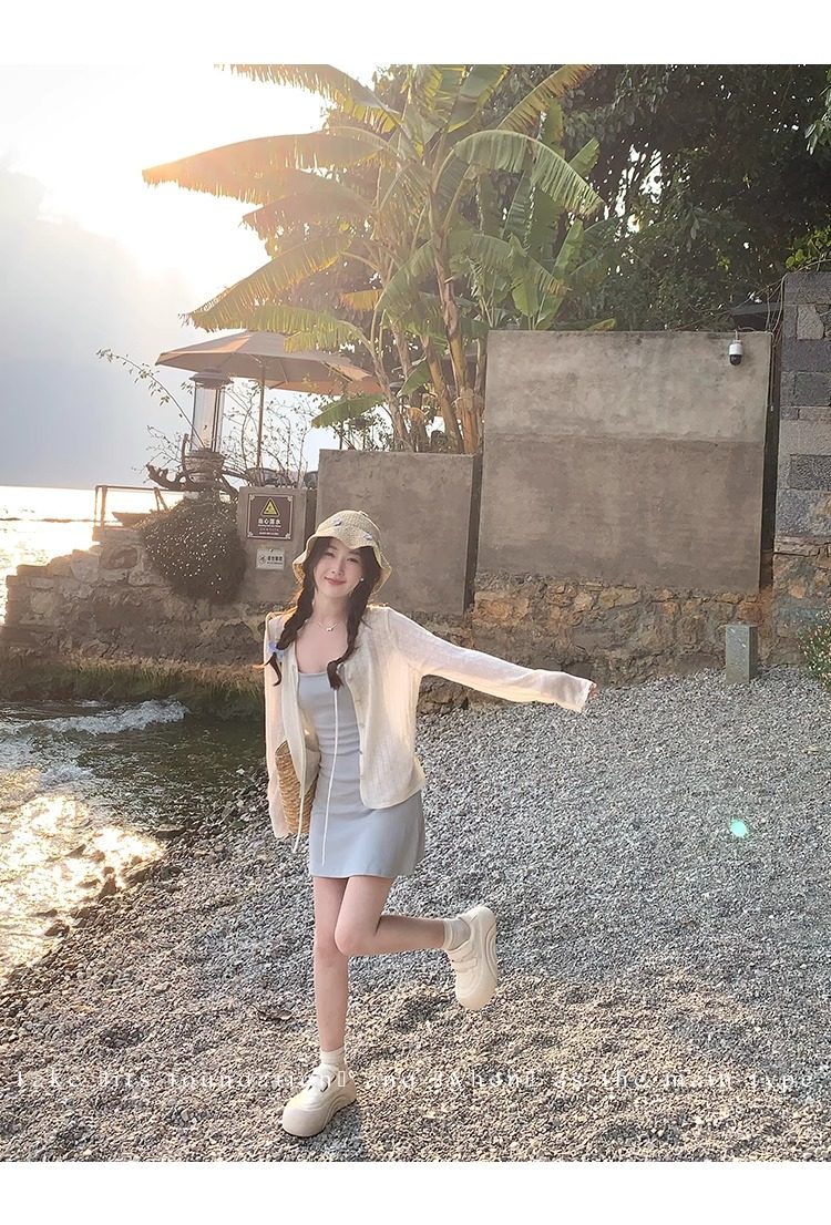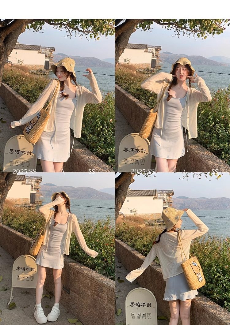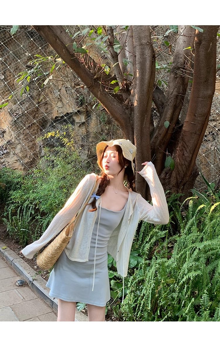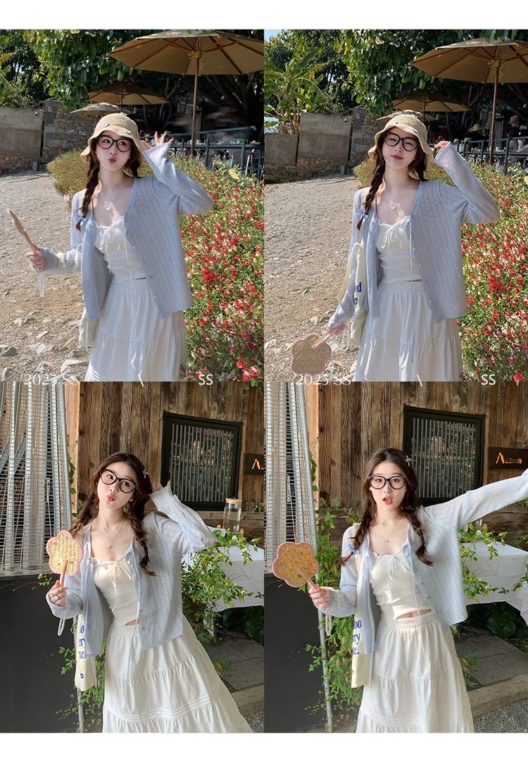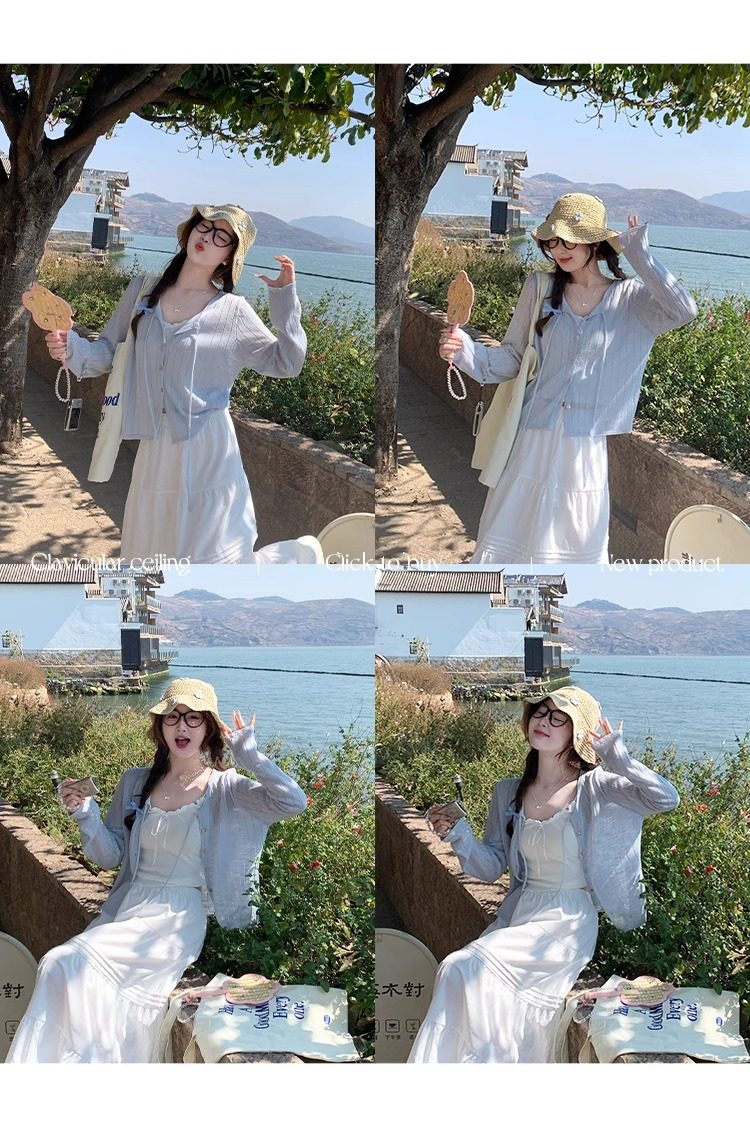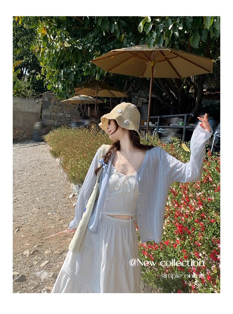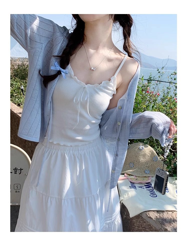 蓝色开衫女薄款2025新款夏季外搭配吊带防晒罩衫冰丝针织外套上衣