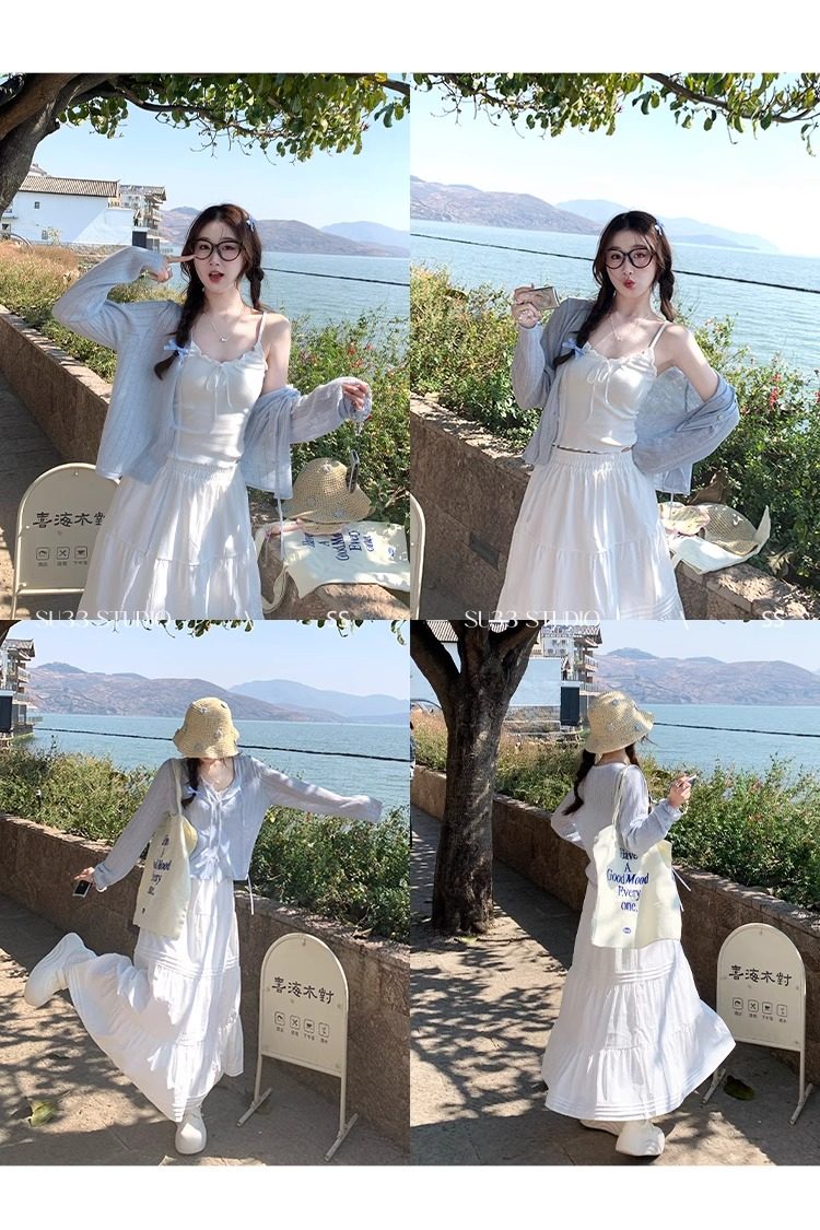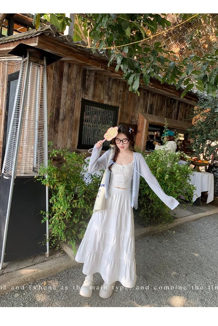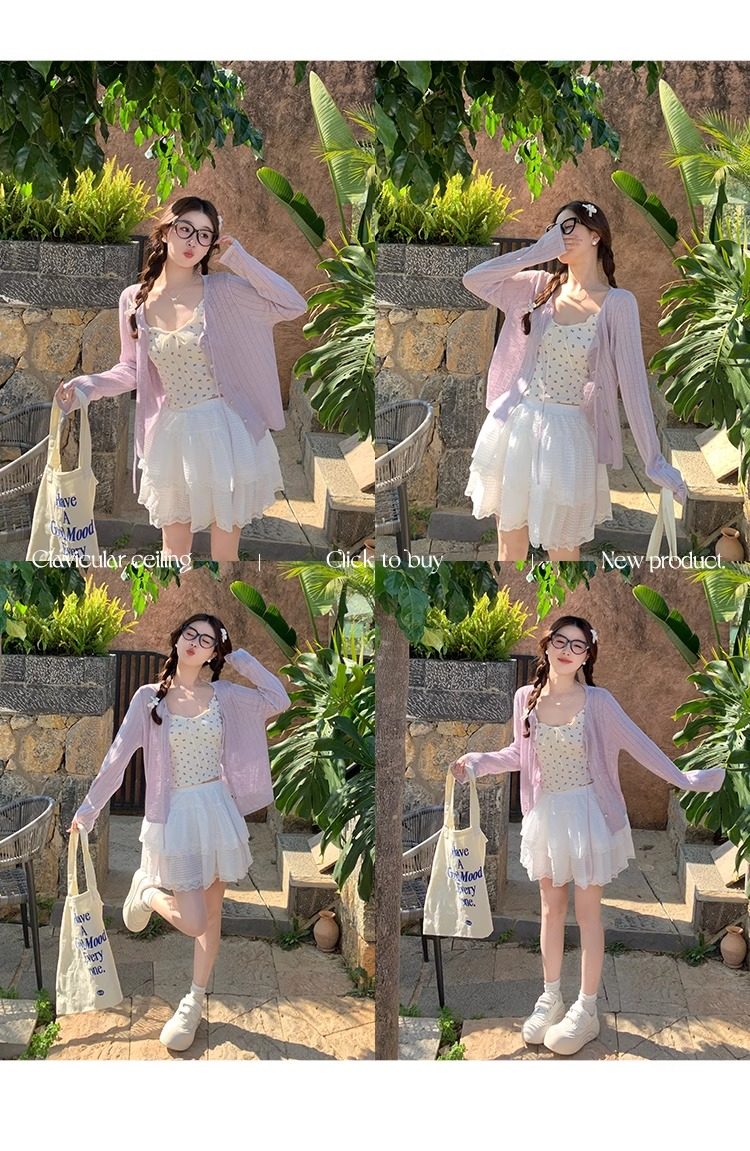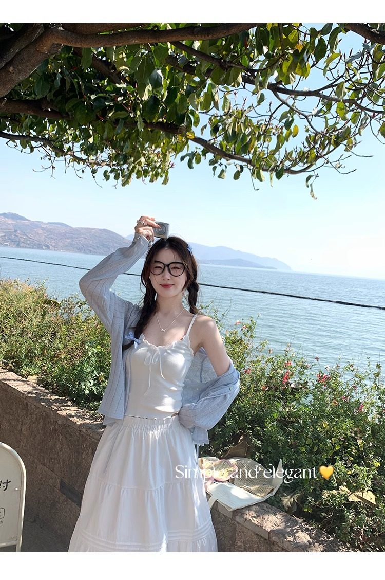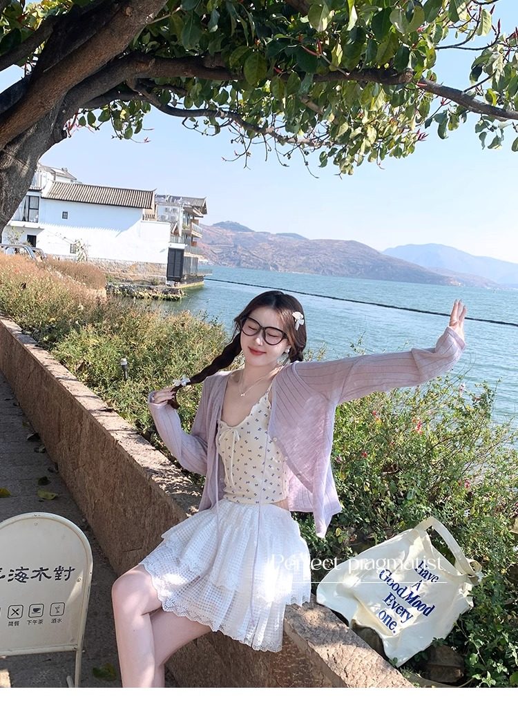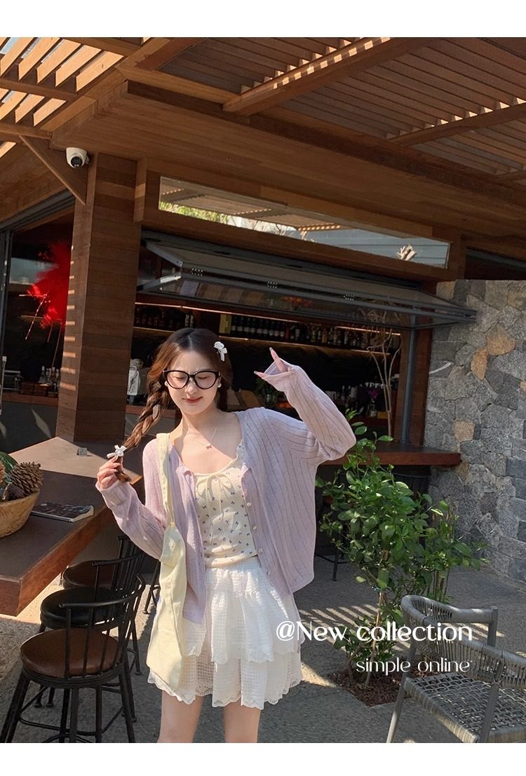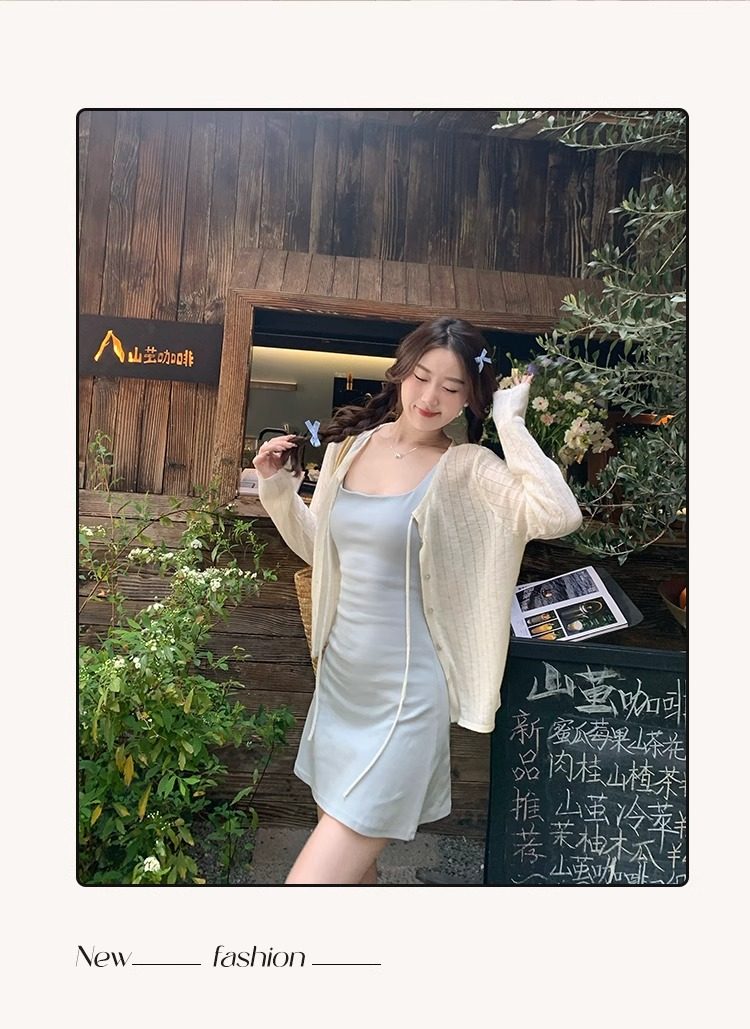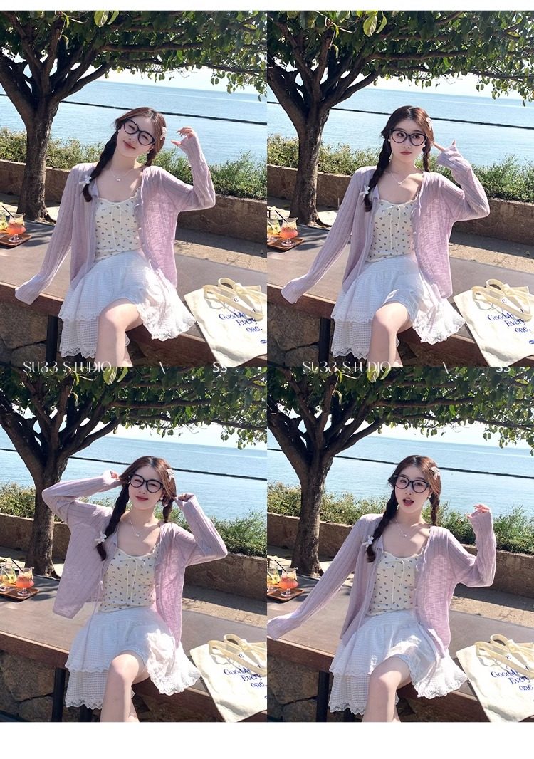 蓝色开衫女薄款2025新款夏季外搭配吊带防晒罩衫冰丝针织外套上衣