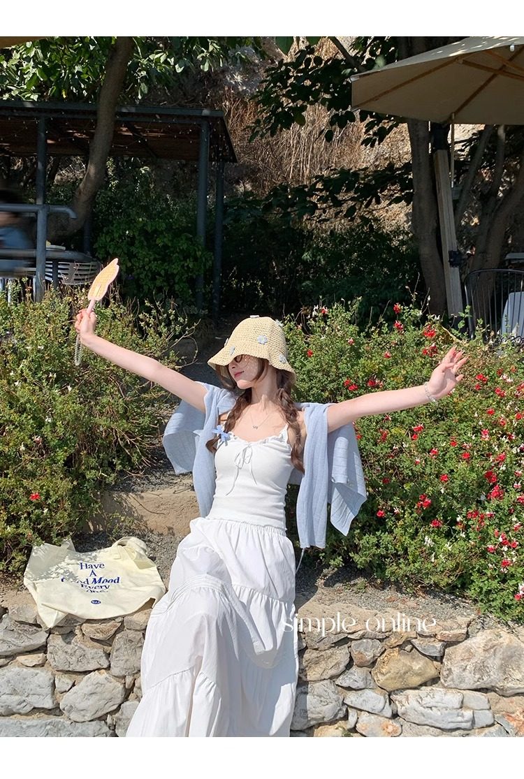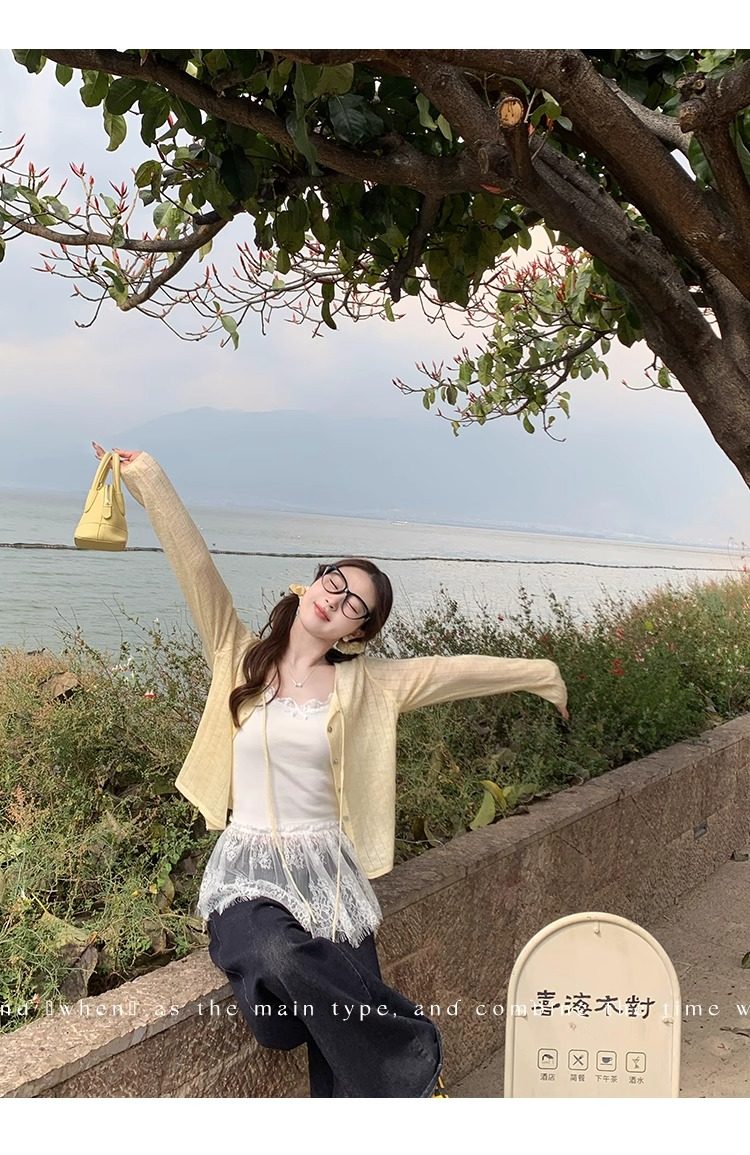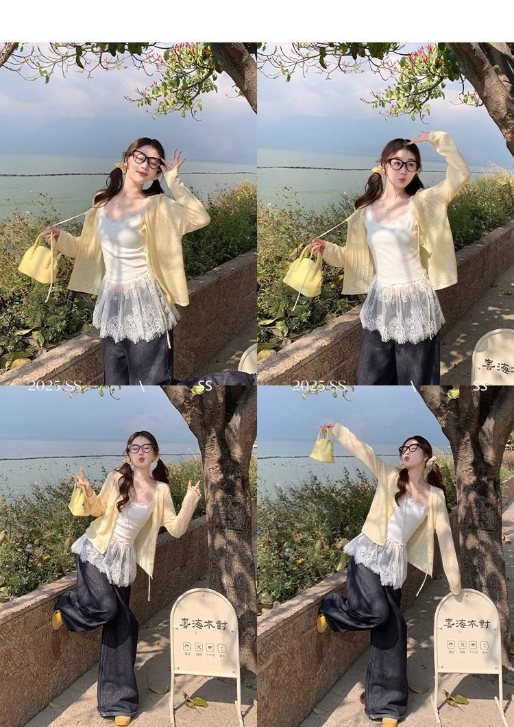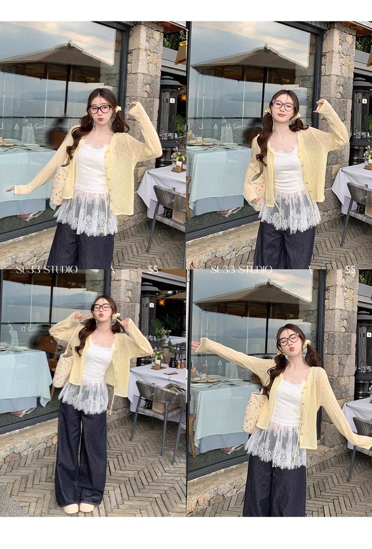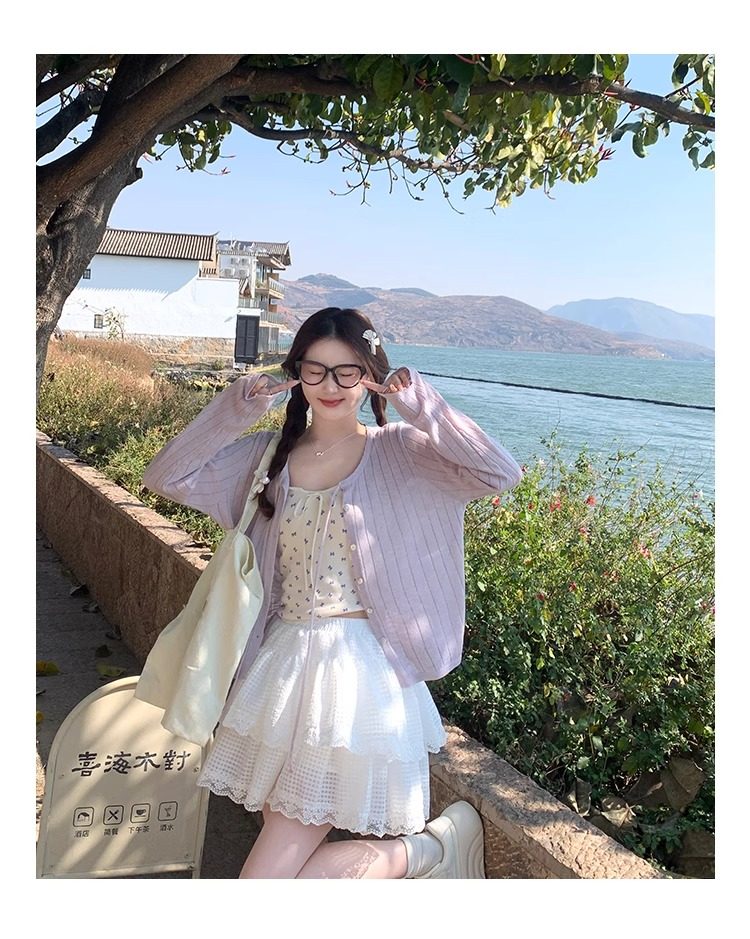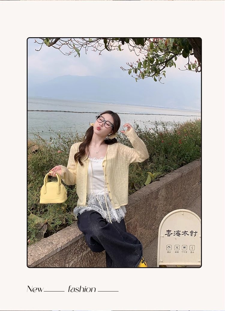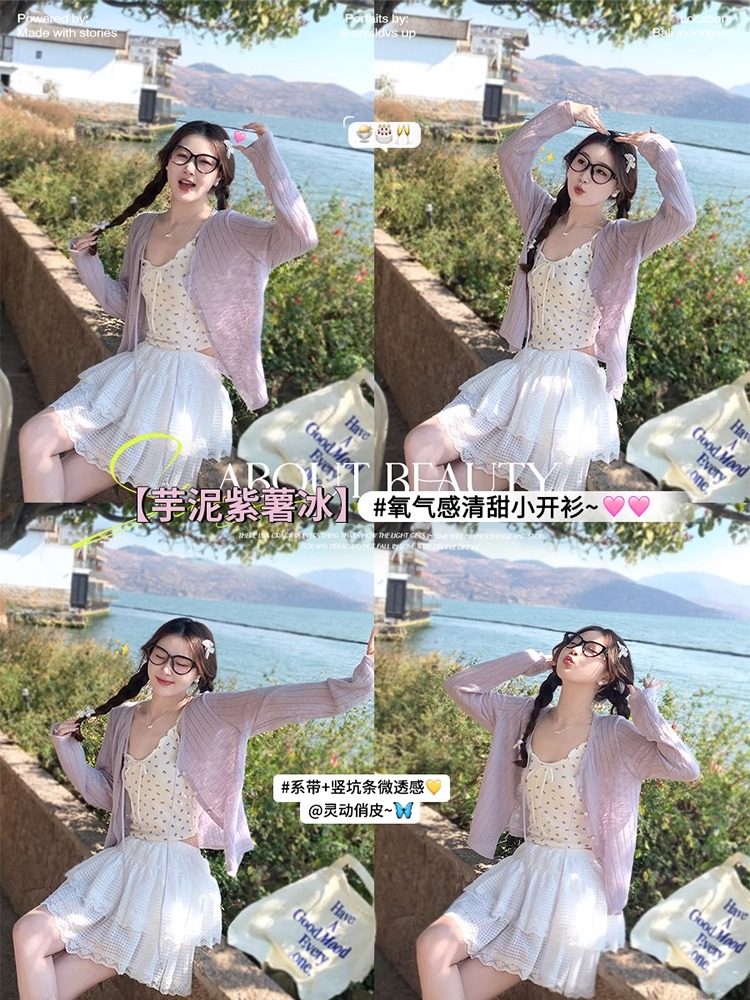 蓝色开衫女薄款2025新款夏季外搭配吊带防晒罩衫冰丝针织外套上衣