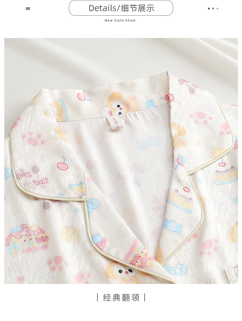 Butter Cake Ice Silk Pajamas for Women, Summer Cool Short-Sleeved with Chest Pad, One-Piece Summer Silk Loungewear Set