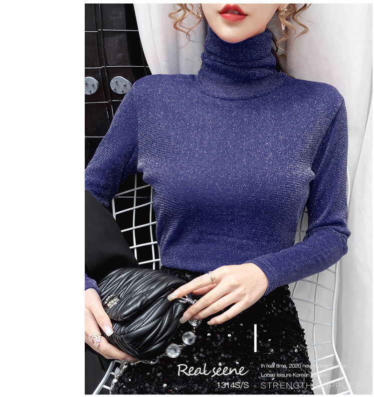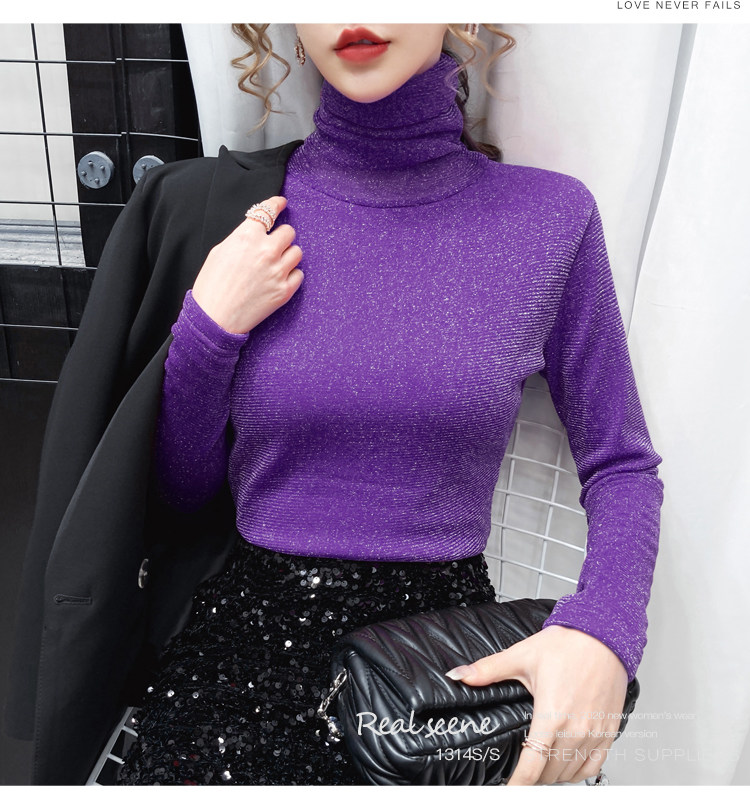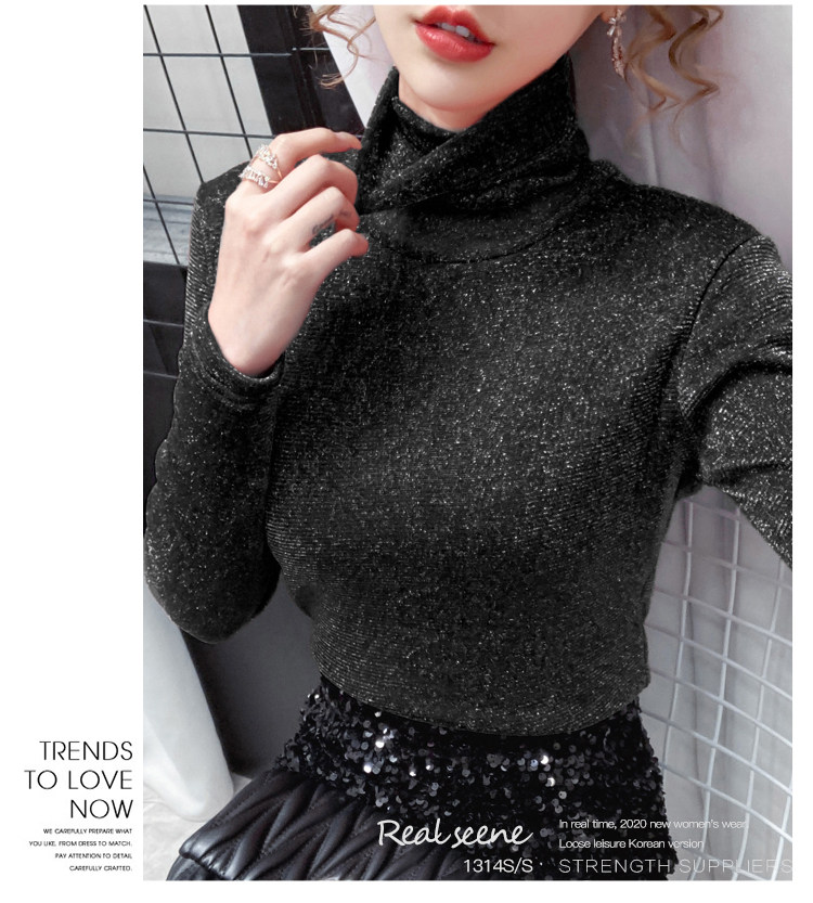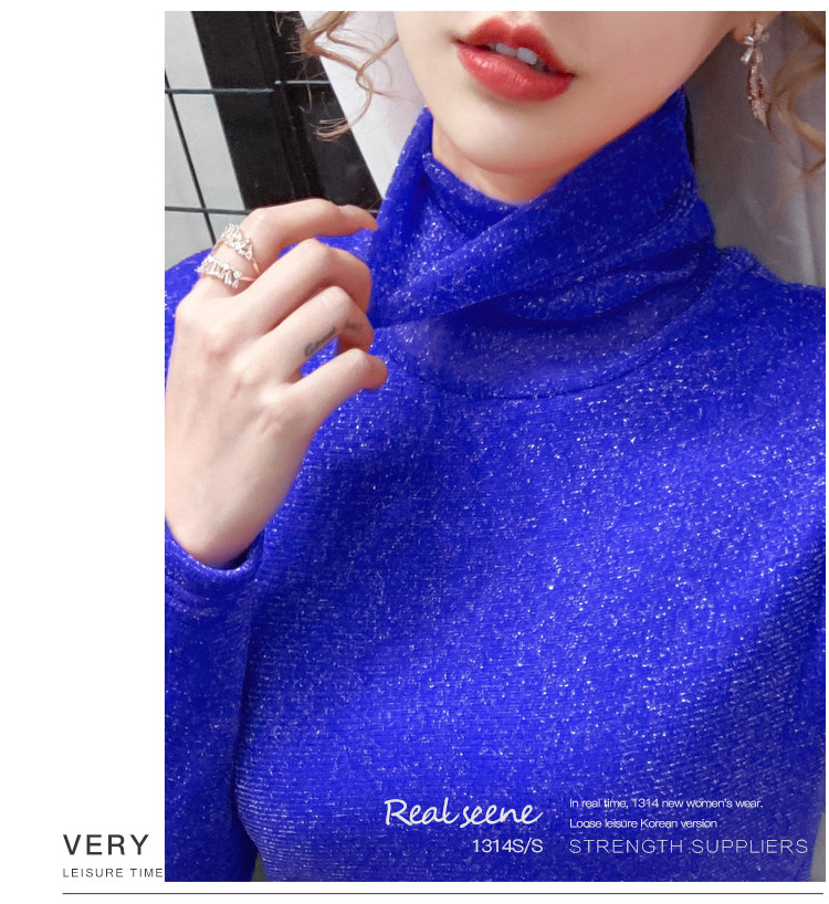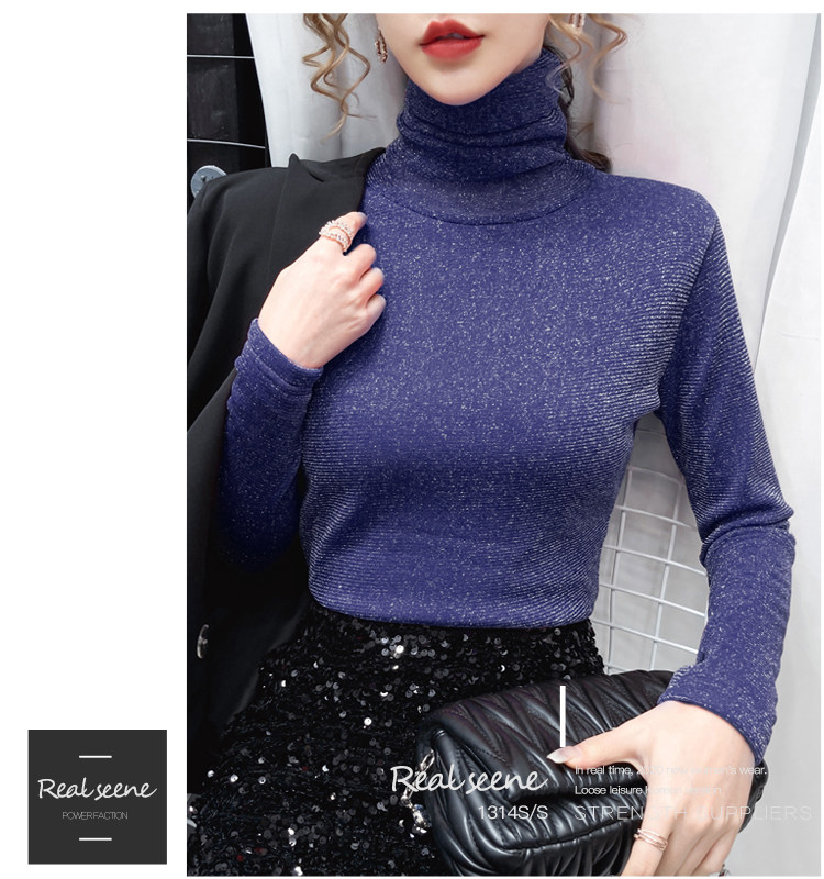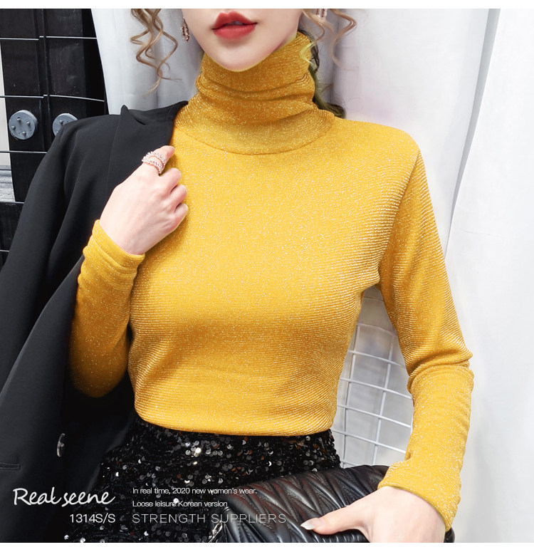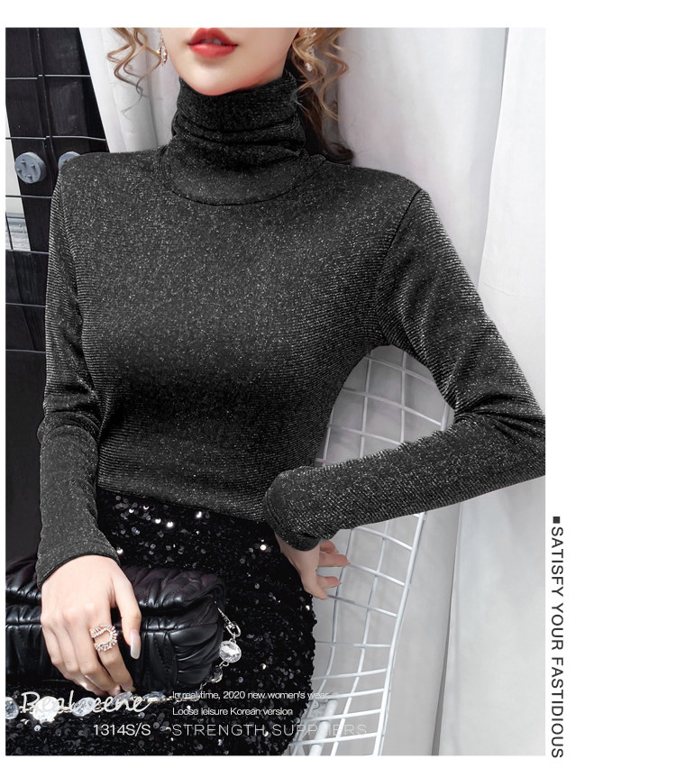 高领亮丝打底衫女2025秋冬新款洋气t恤内搭体恤加绒加厚保暖上衣