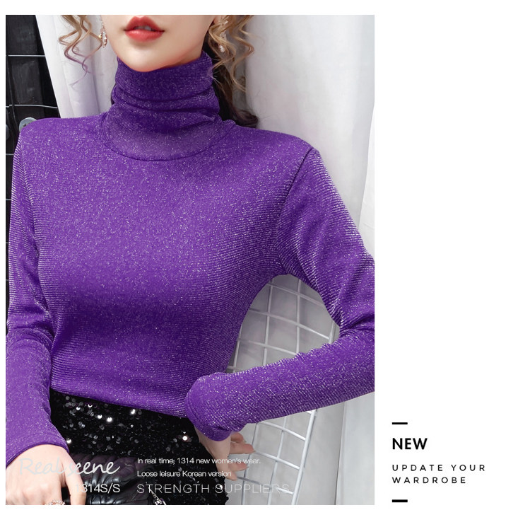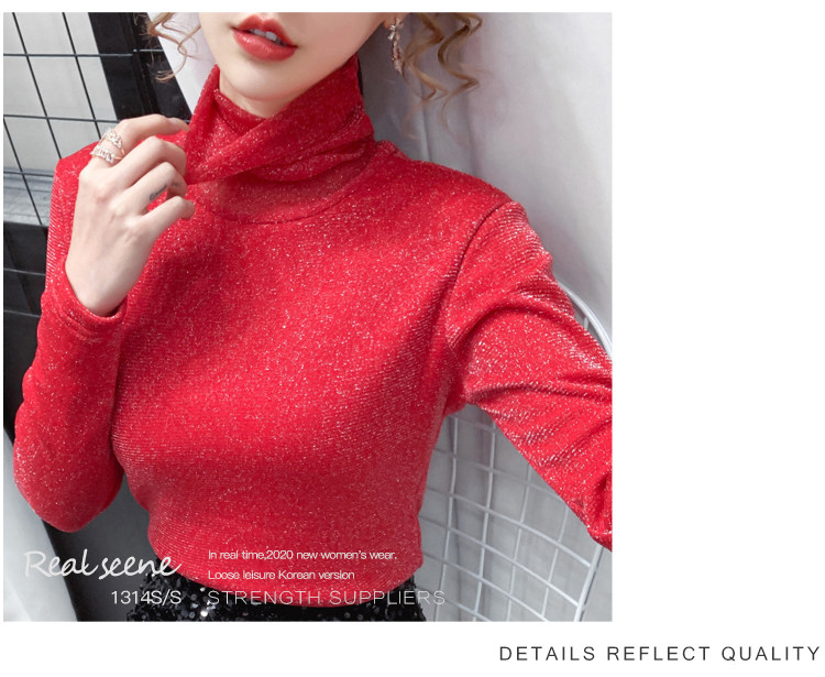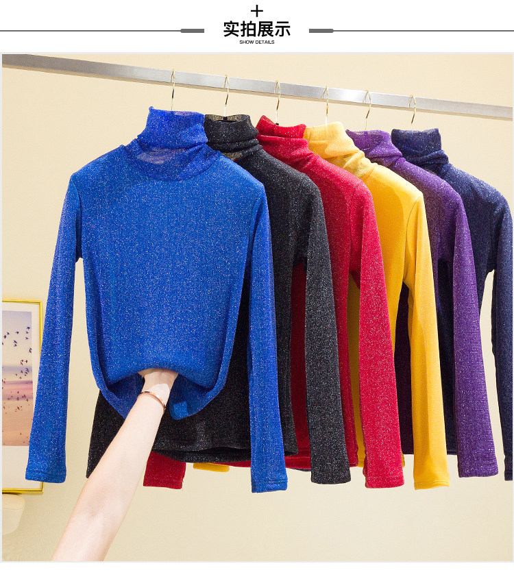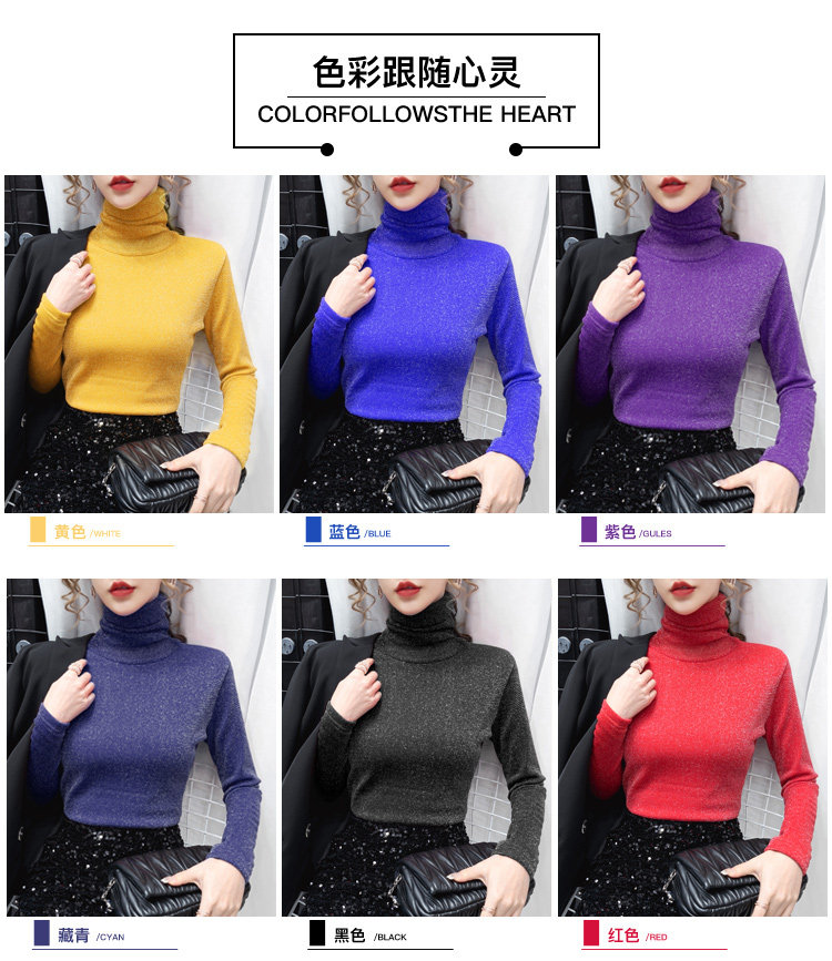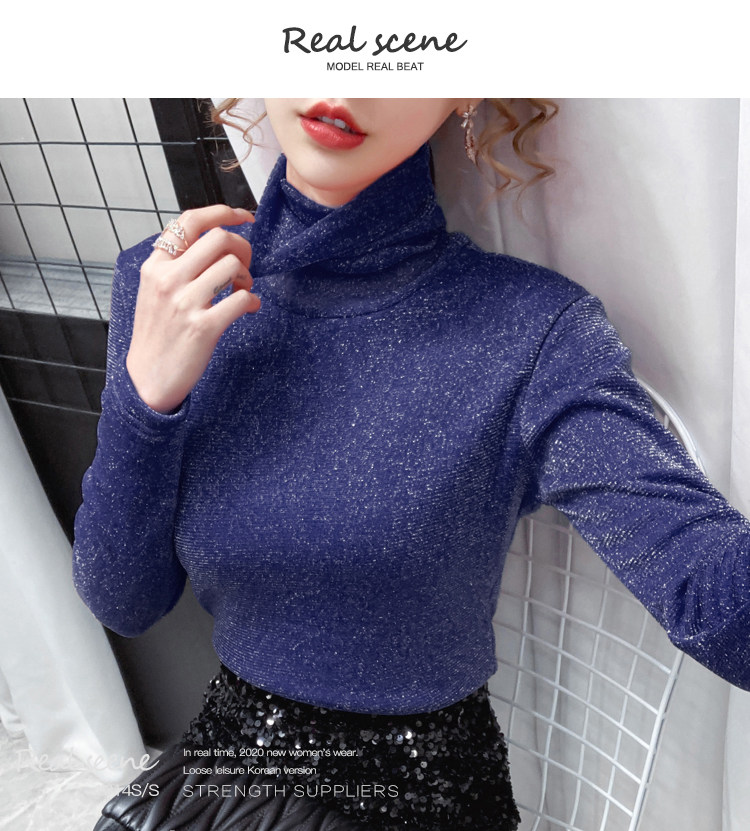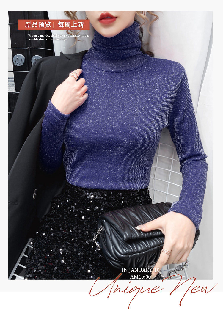 高领亮丝打底衫女2025秋冬新款洋气t恤内搭体恤加绒加厚保暖上衣