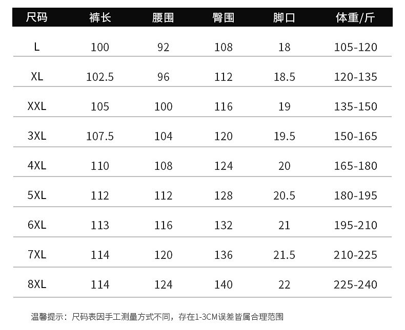 尺码 3XL,7XL,2XL,4XL,XL,8XL,6XL,5XL,L