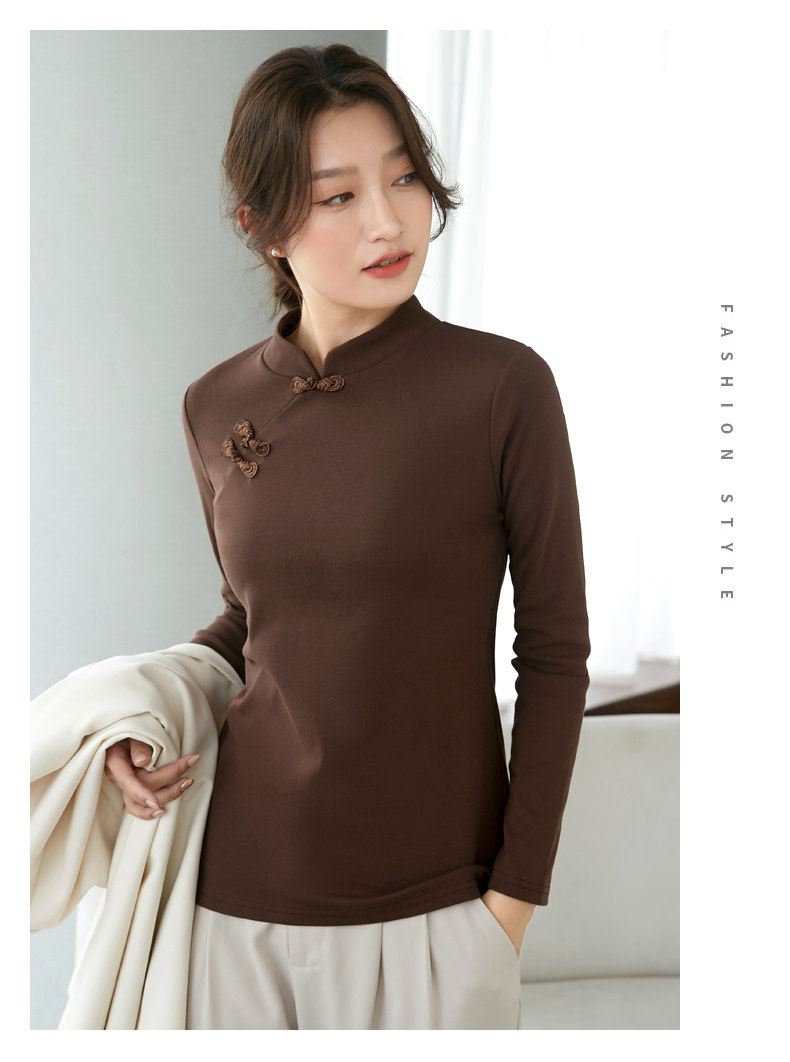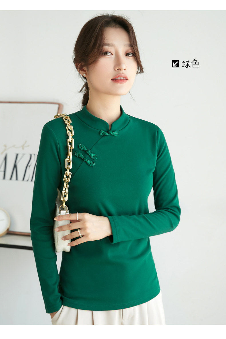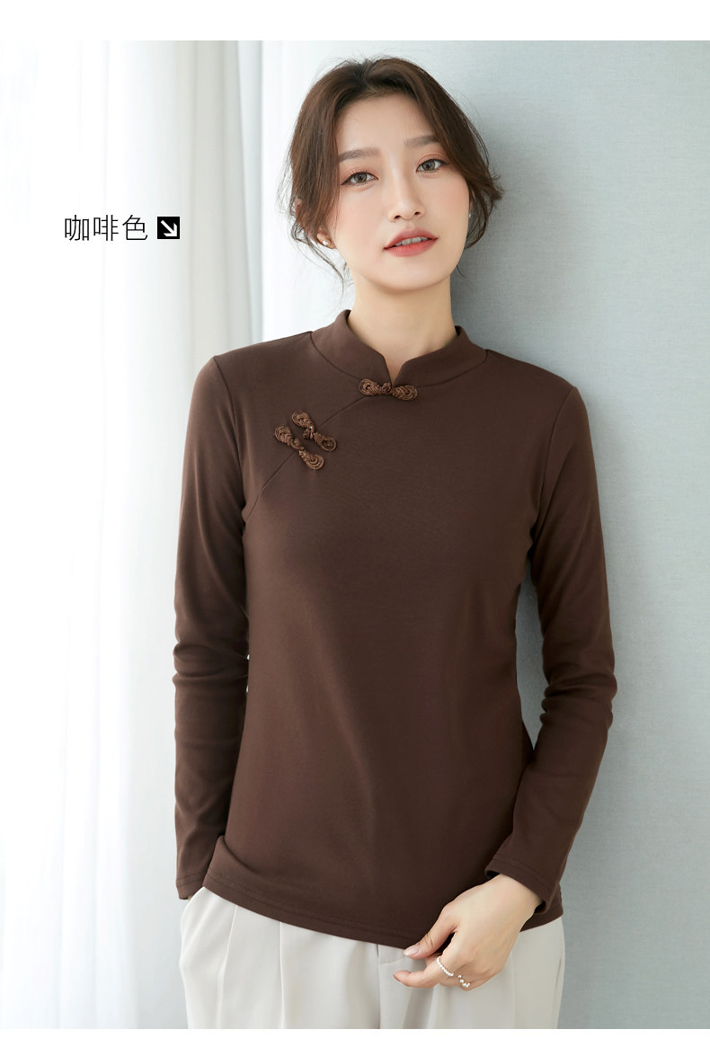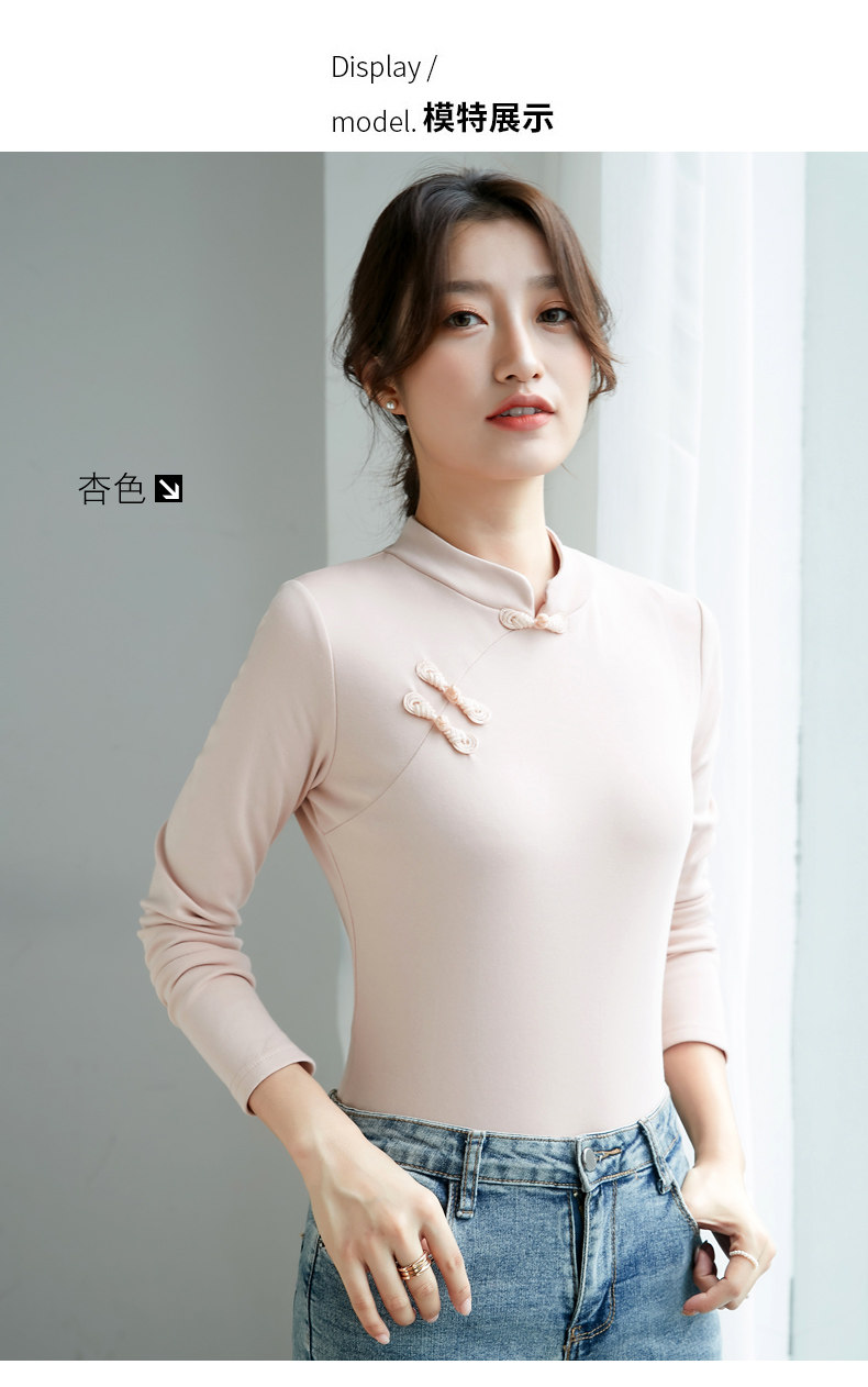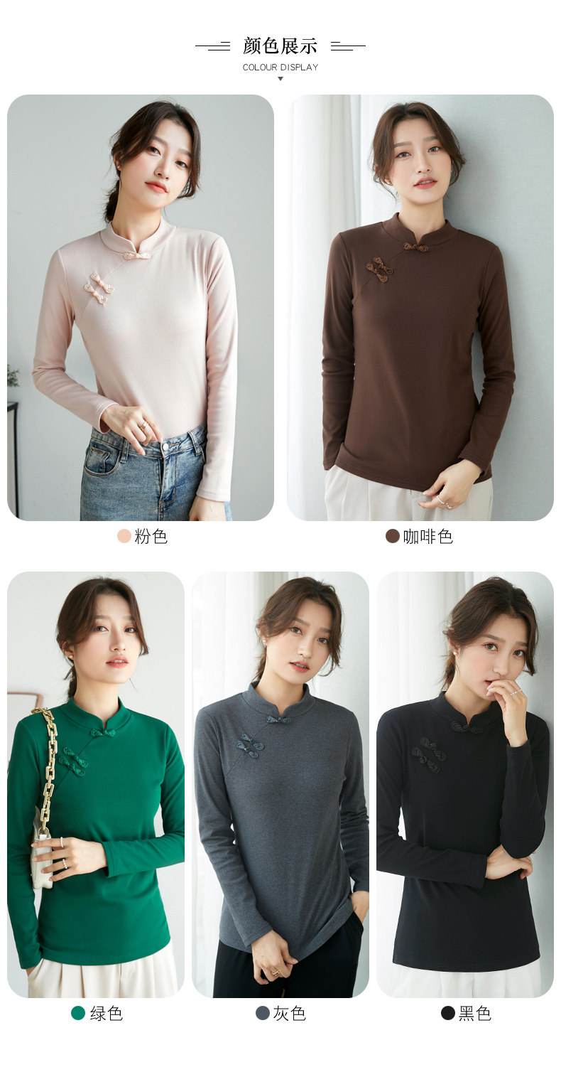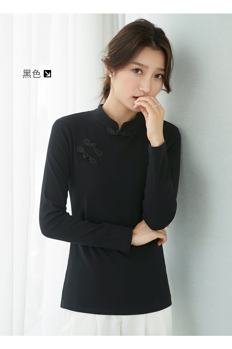 立领棉质打底衫女秋冬长袖t恤洋气新轻国风改良中式旗袍盘扣上衣