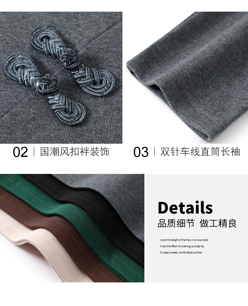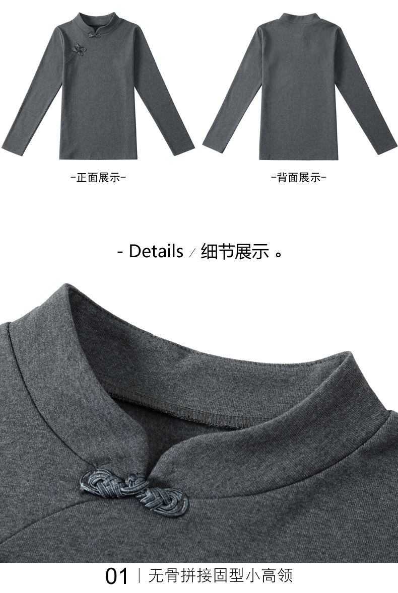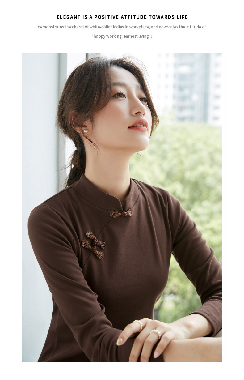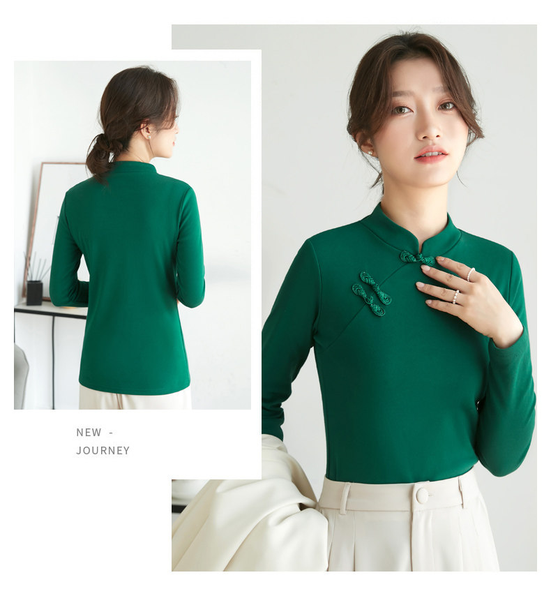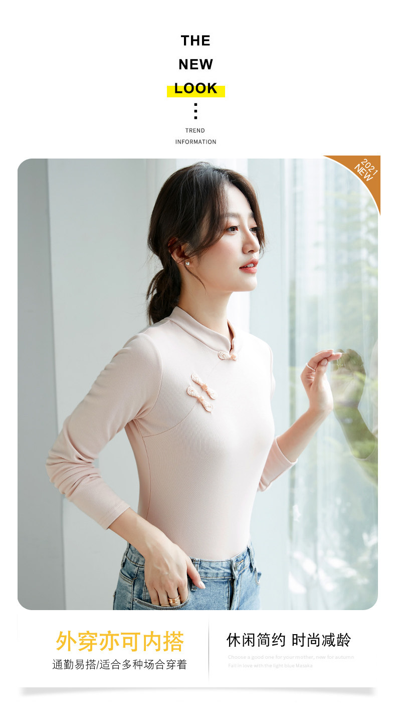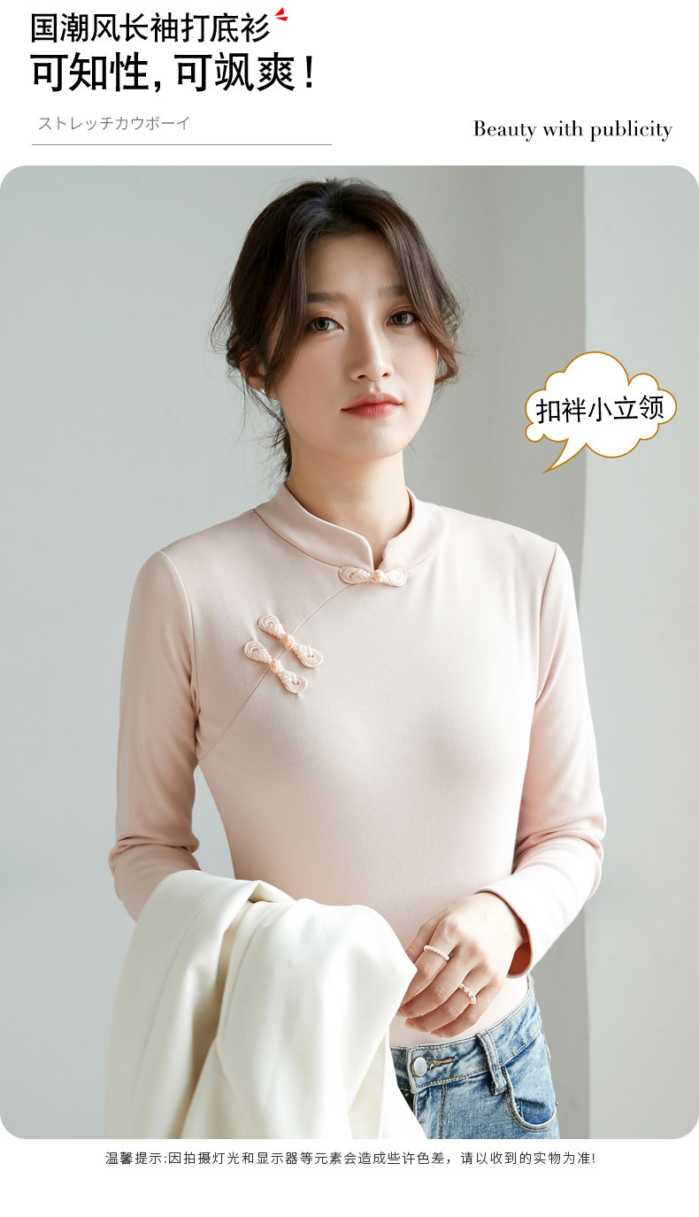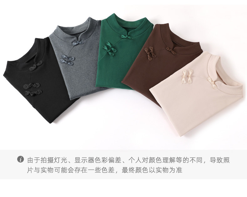 立领棉质打底衫女秋冬长袖t恤洋气新轻国风改良中式旗袍盘扣上衣