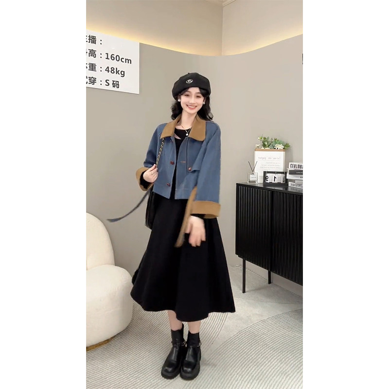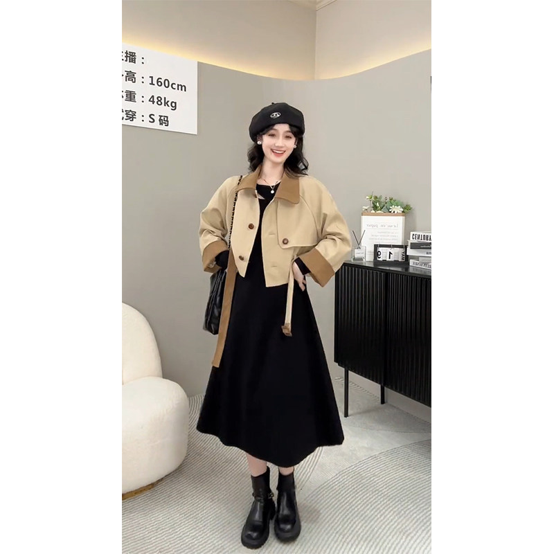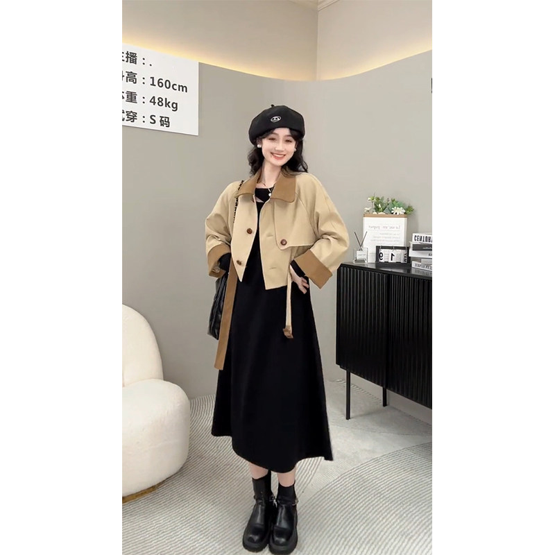 Abrigo cortavientos popular de este año para mujer, abrigo informal de dos prendas con solapa pequeña de gama alta, otoño 2025