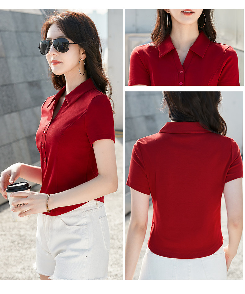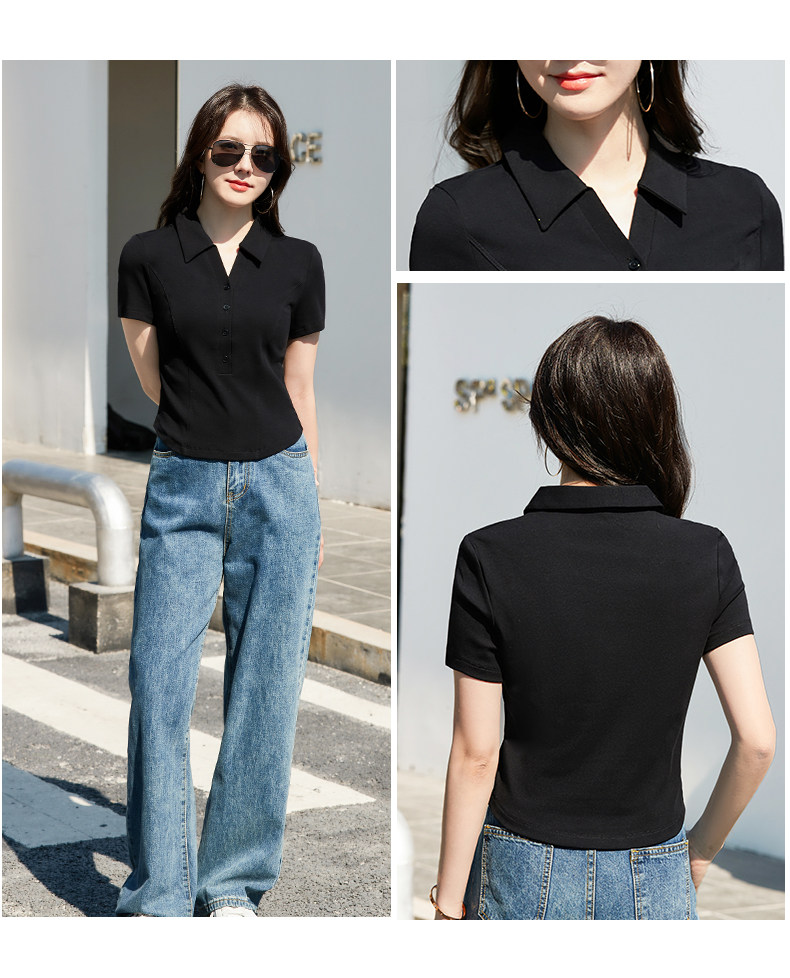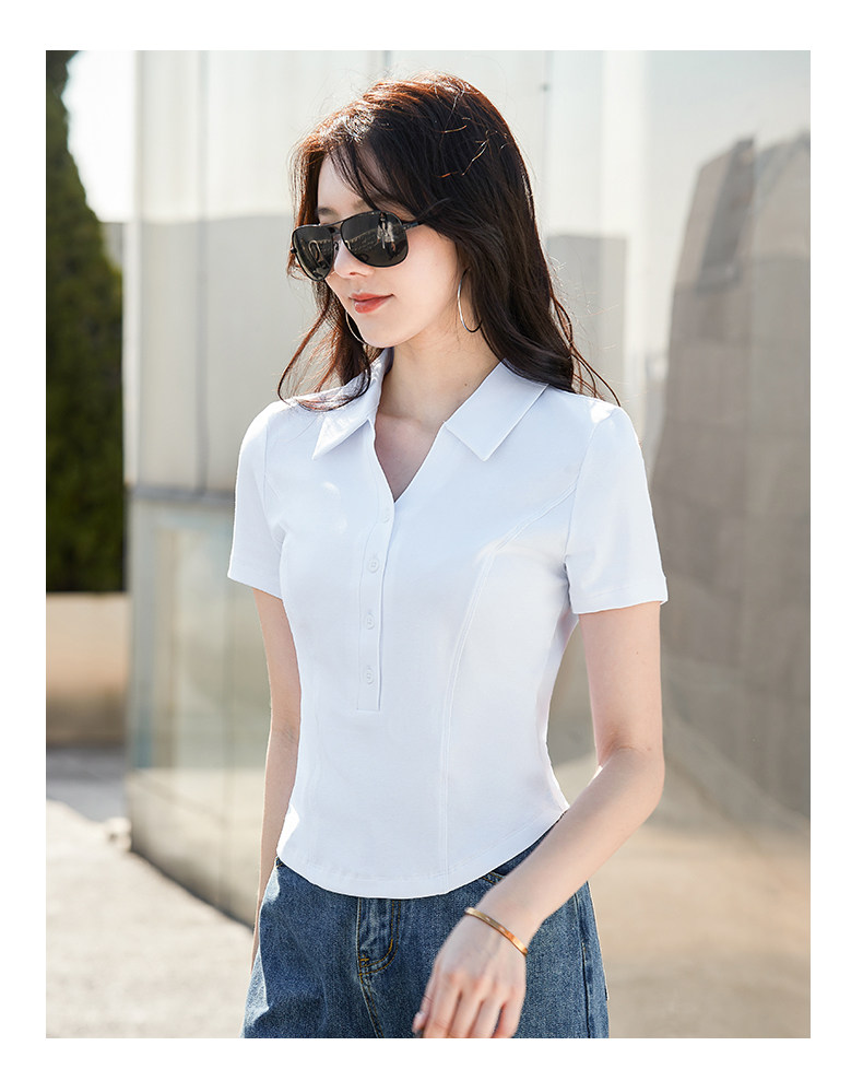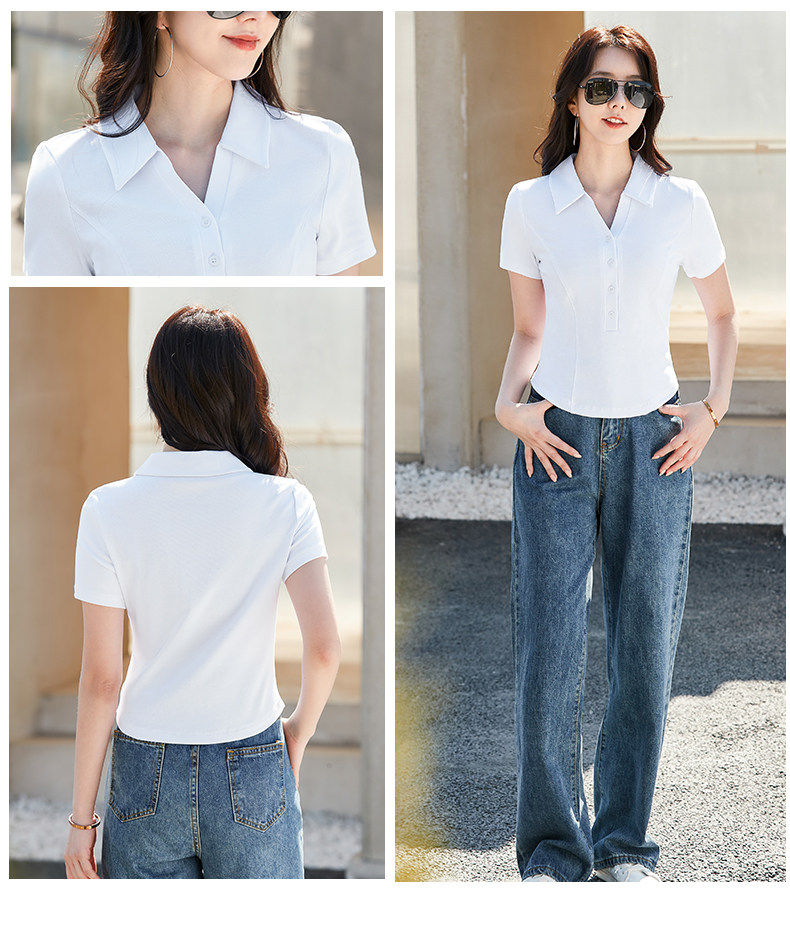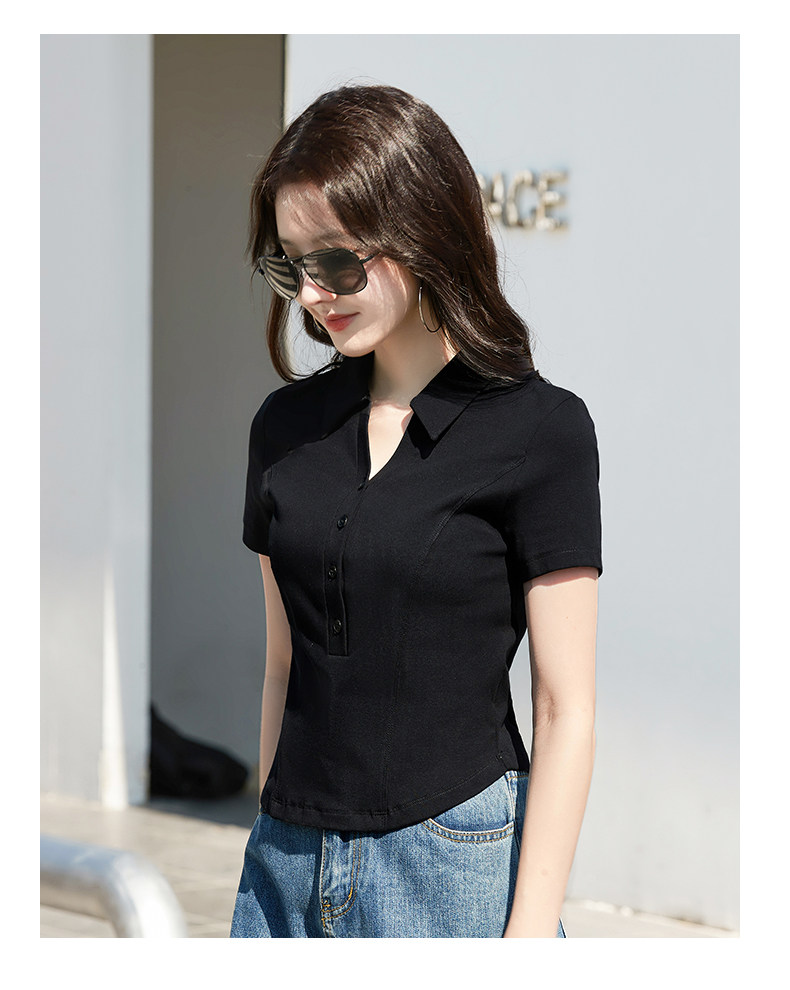 Petit t-shirt à manches courtes à revers court pour femmes, chemise d'été à ourlet incurvé, chemise de style étranger, haut à épaule droite, 2025