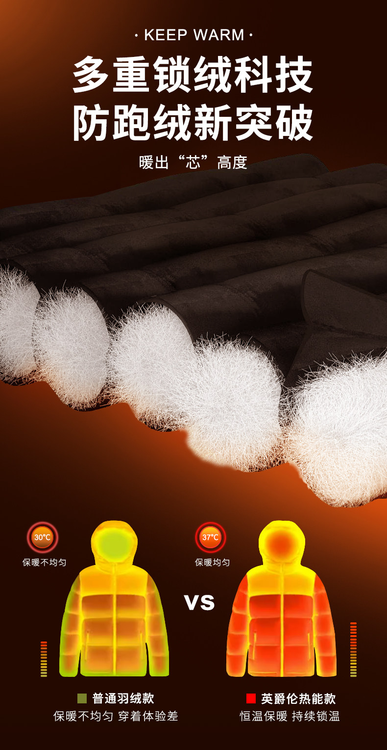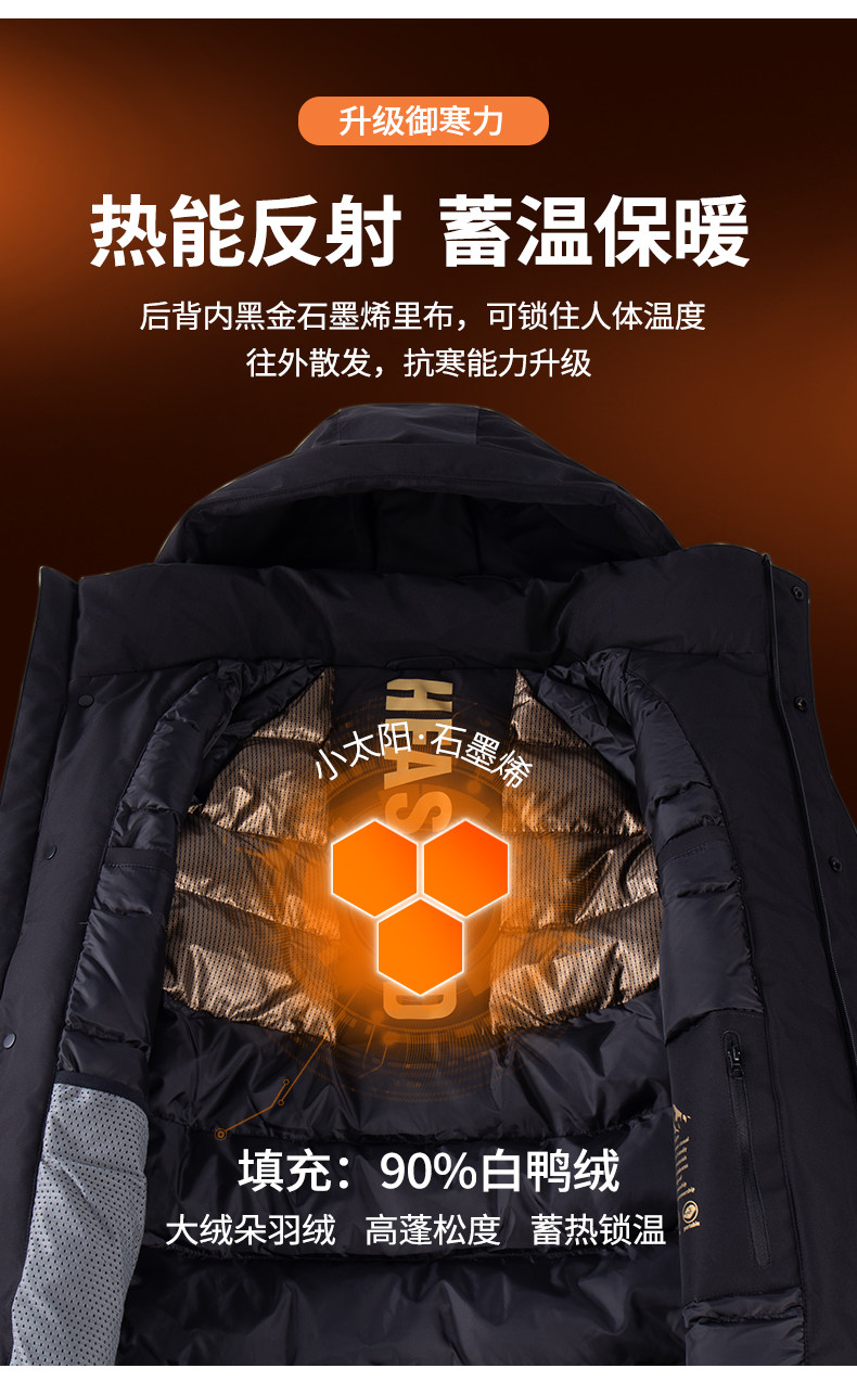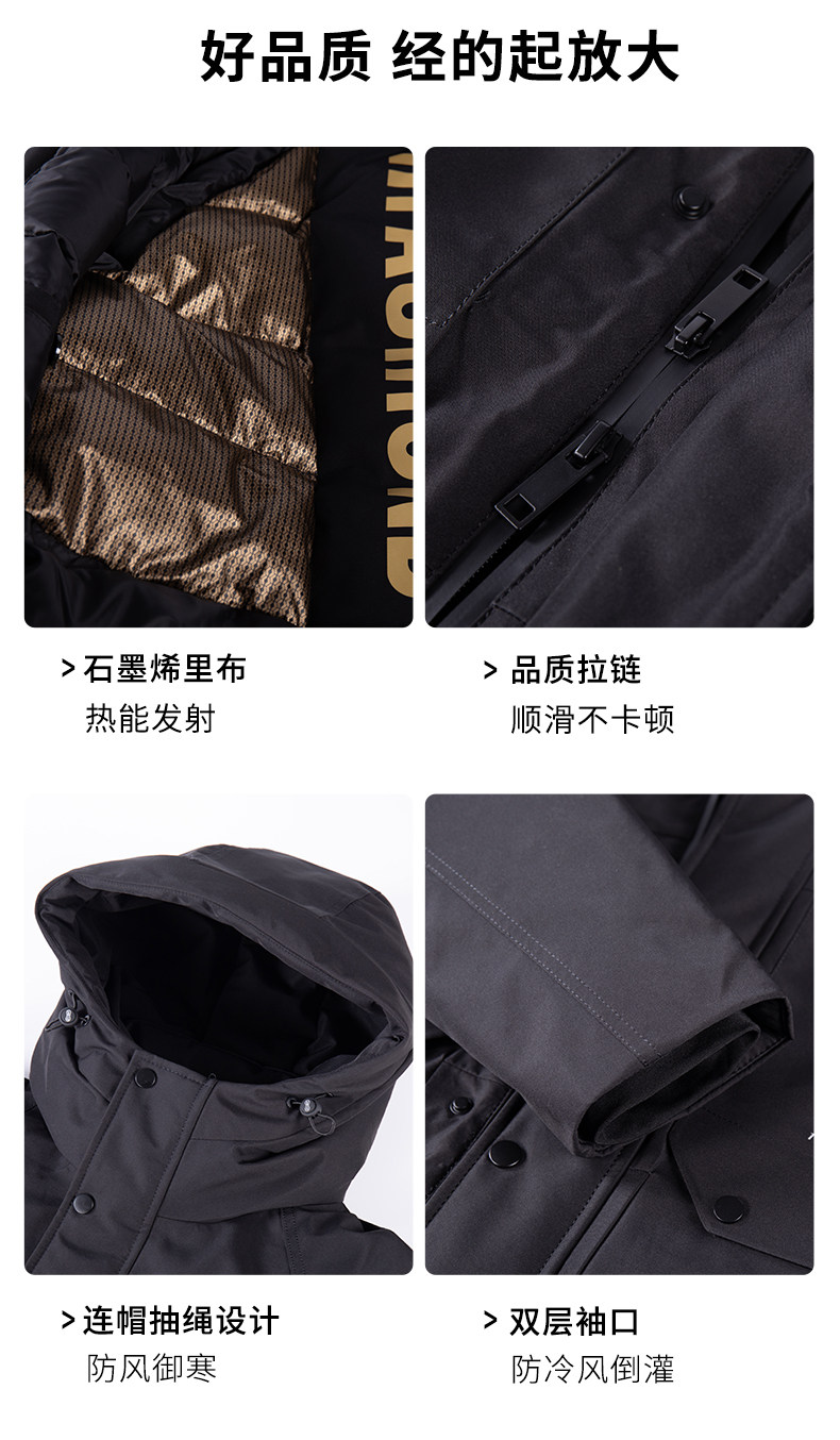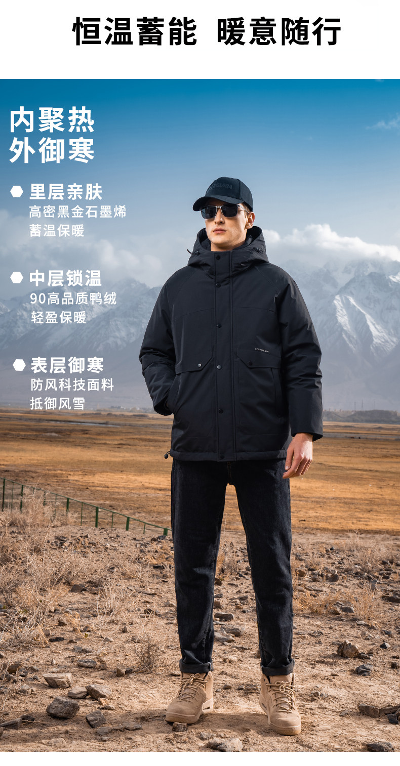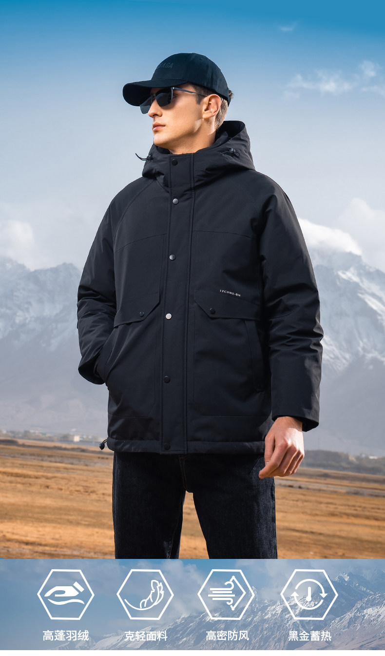 【黑金蓄热热反射】英爵伦连帽羽绒服男冬季极寒防风工装保暖外套