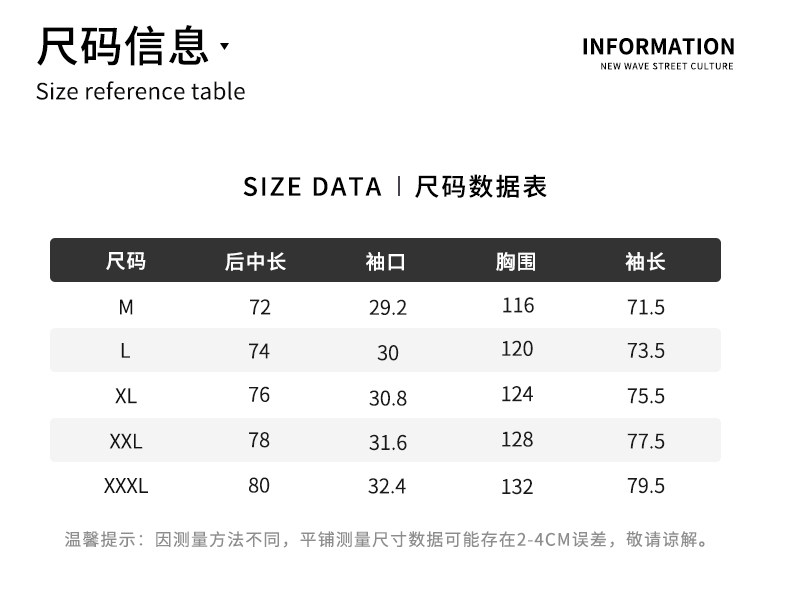 China(cm) 72-76 76-81 81-87 87-93 93-98