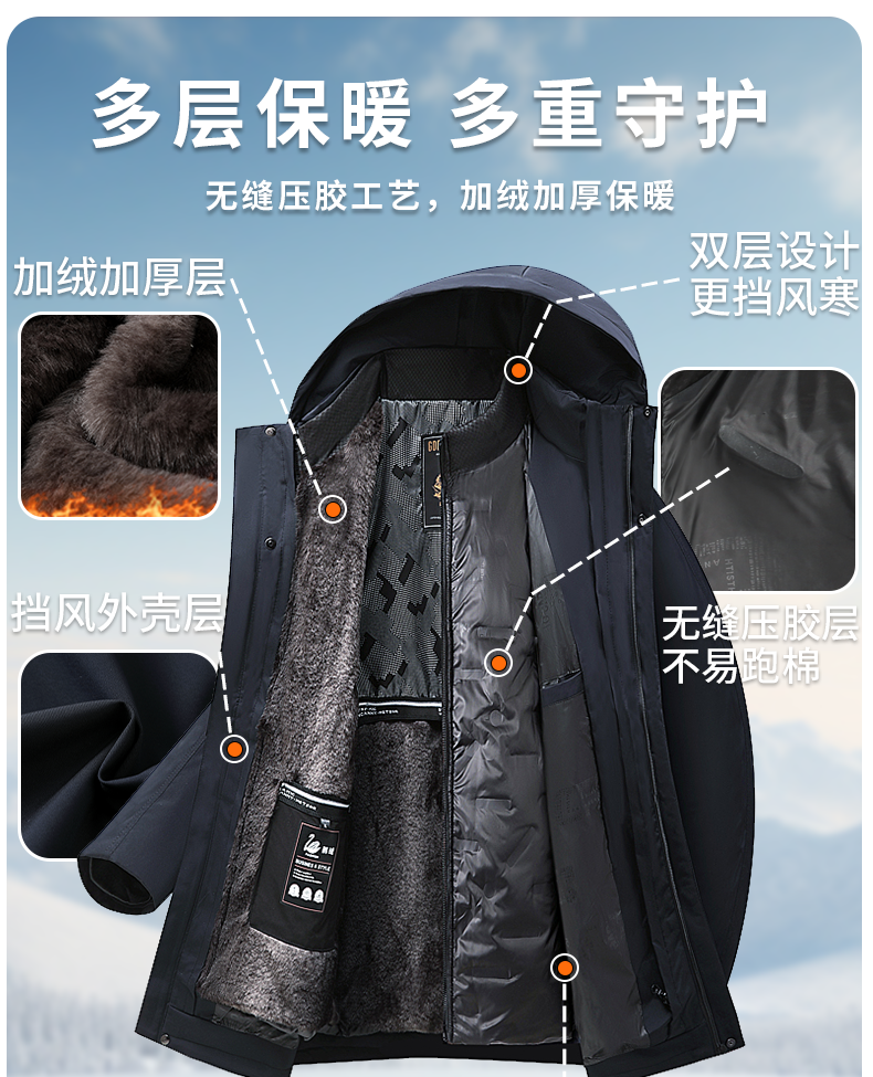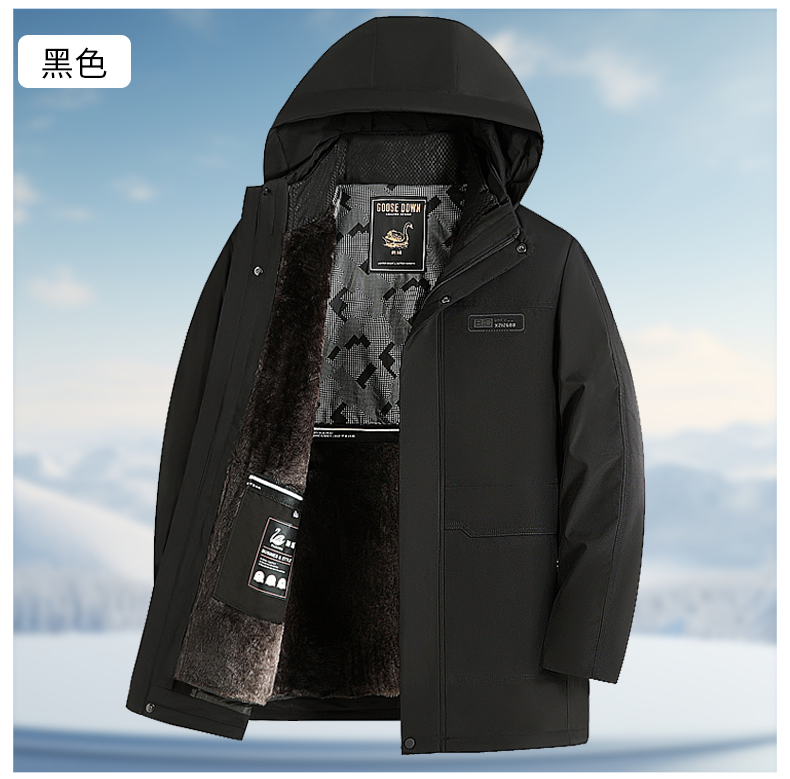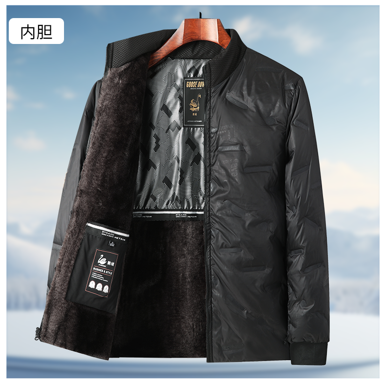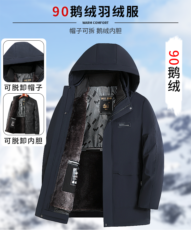 Dad's Winter Goose down Jacket with Removable Liner, Thickened and Fleece-Lined for Middle-Aged and Elderly Men, Grandpa's Coat