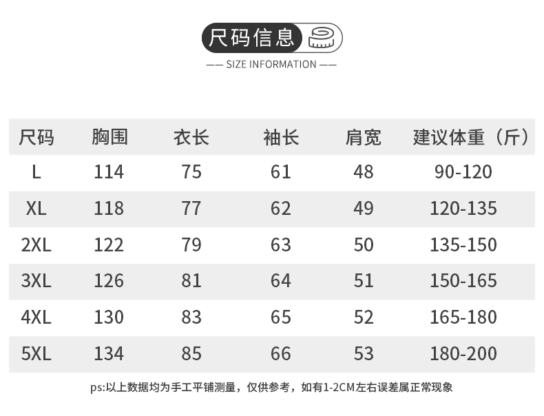 China (cm) 165 / 88-90 170 / 96-98 175 / 108-110 180 / 118-122 185 / 126-130