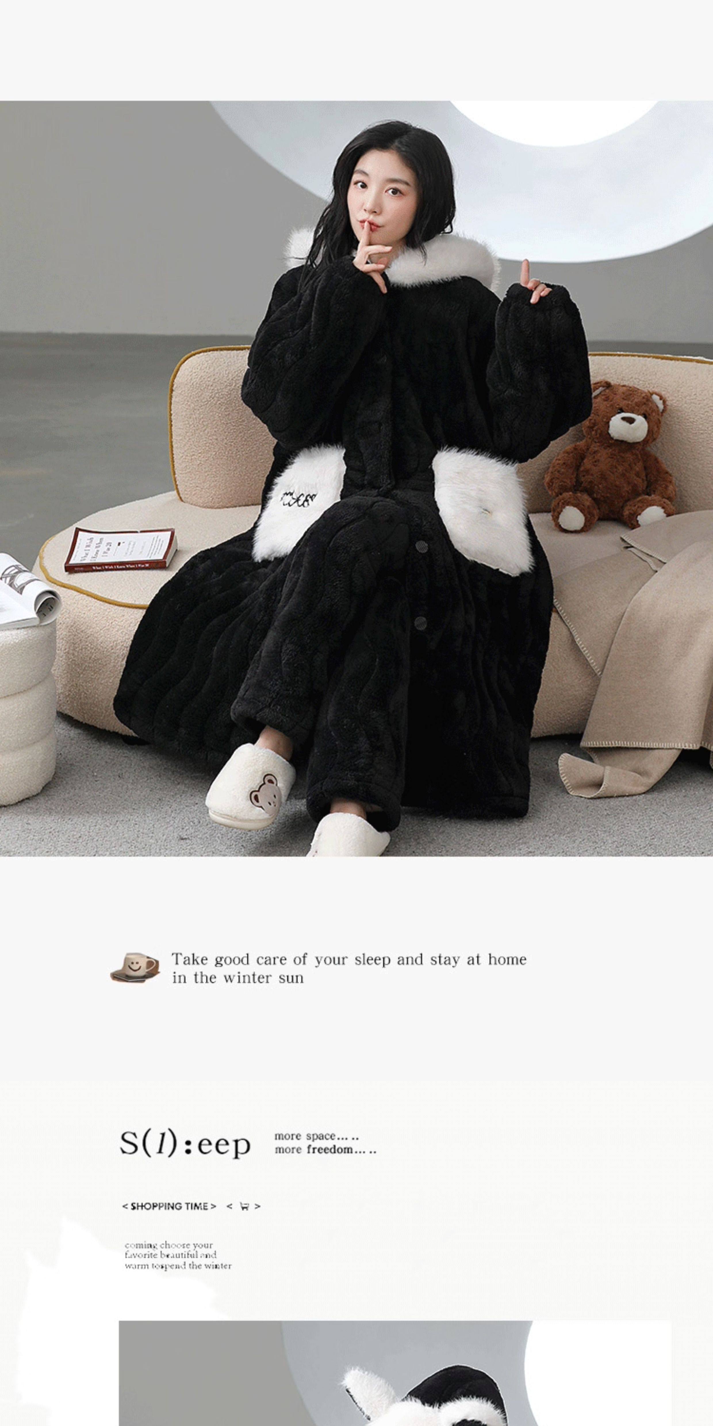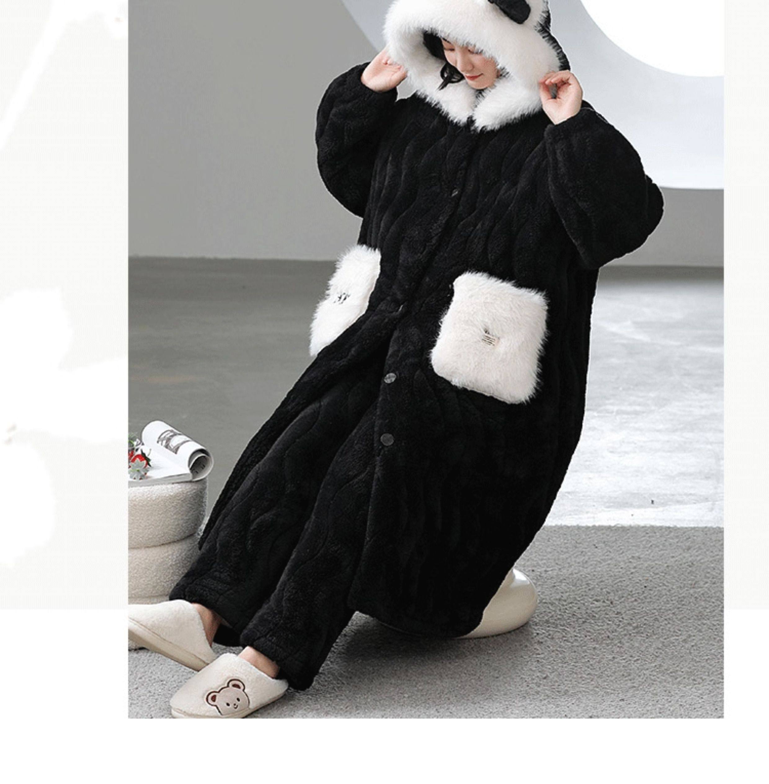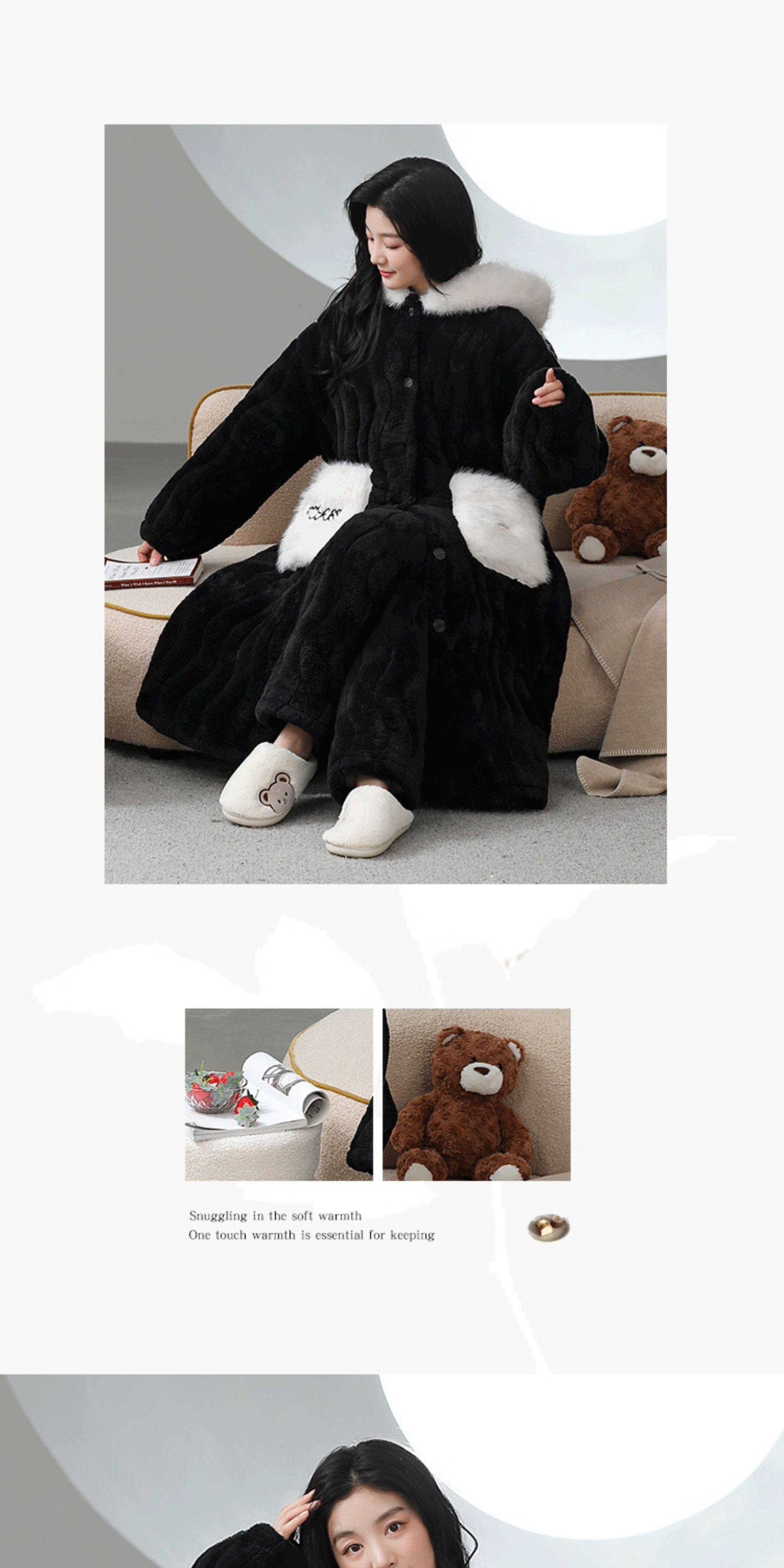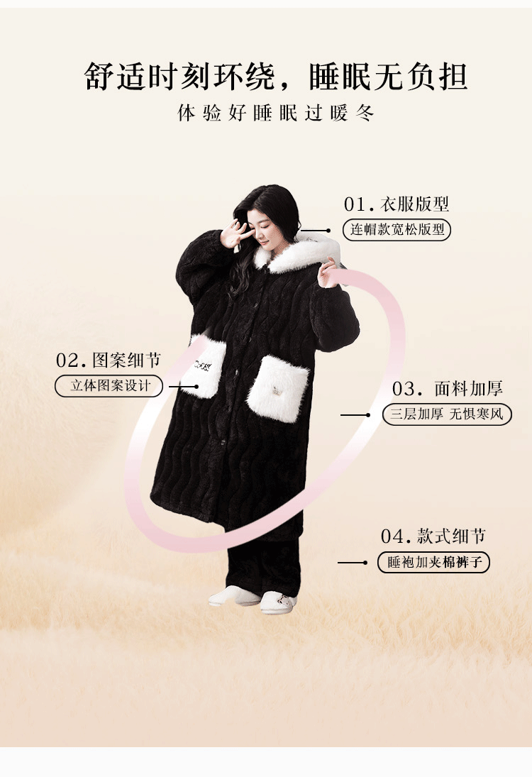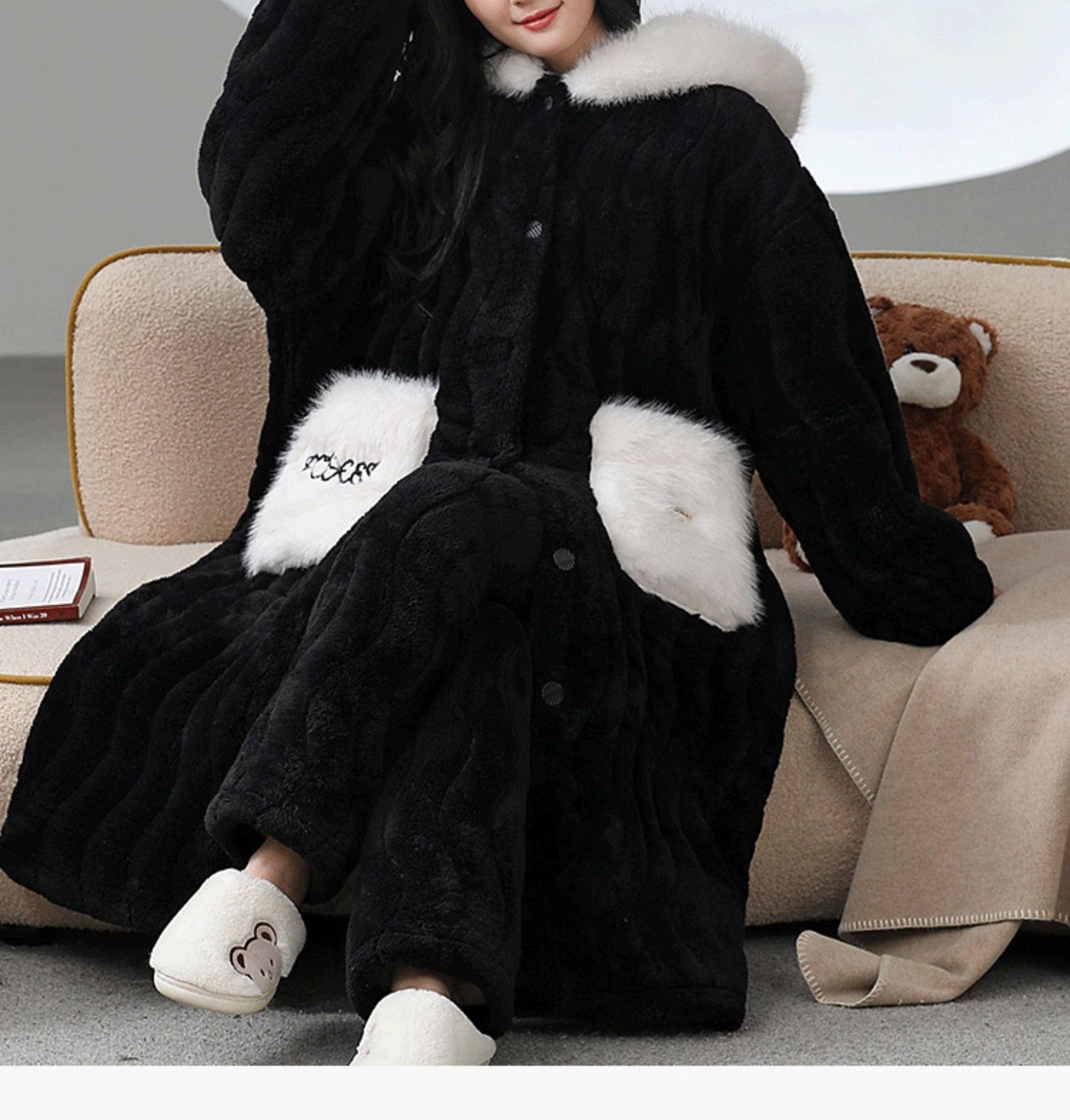 Catman Coral Fleece Nightgown for Women Autumn and Winter 2024 New Three-Layer Quilted Pajamas Thickened Warm Homewear Set