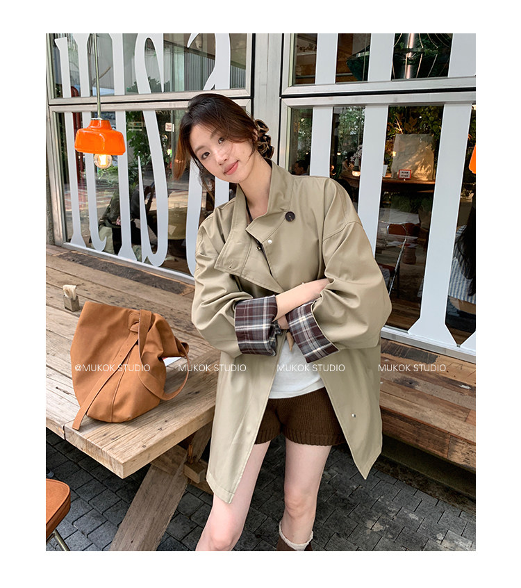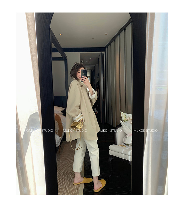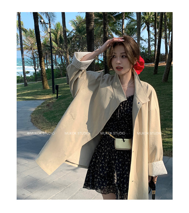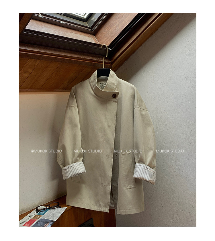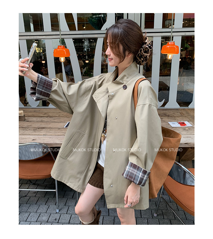 Mukok under the Shadow of Notting Hill~ High-End Color-Blocked Short Trench Coat for Women, Slimming Loose-Fitting British Style Coat