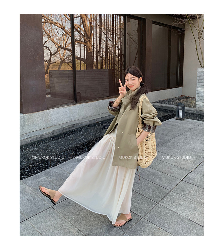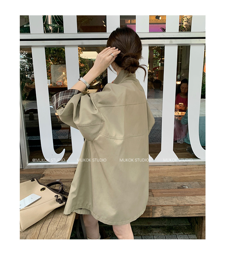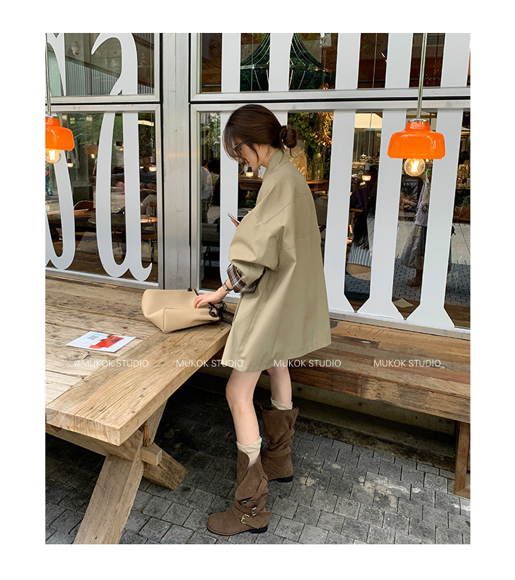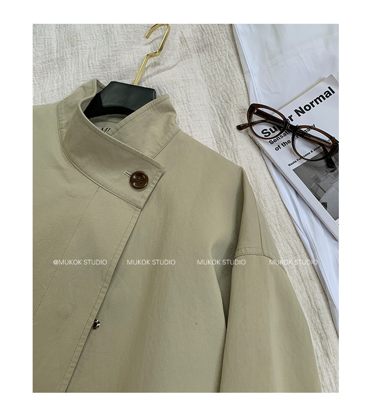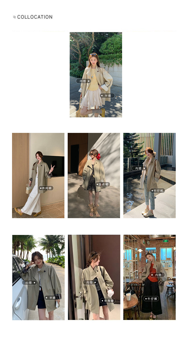 Mukok under the Shadow of Notting Hill~ High-End Color-Blocked Short Trench Coat for Women, Slimming Loose-Fitting British Style Coat
