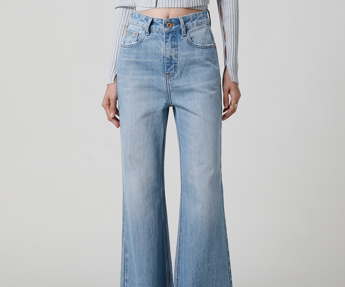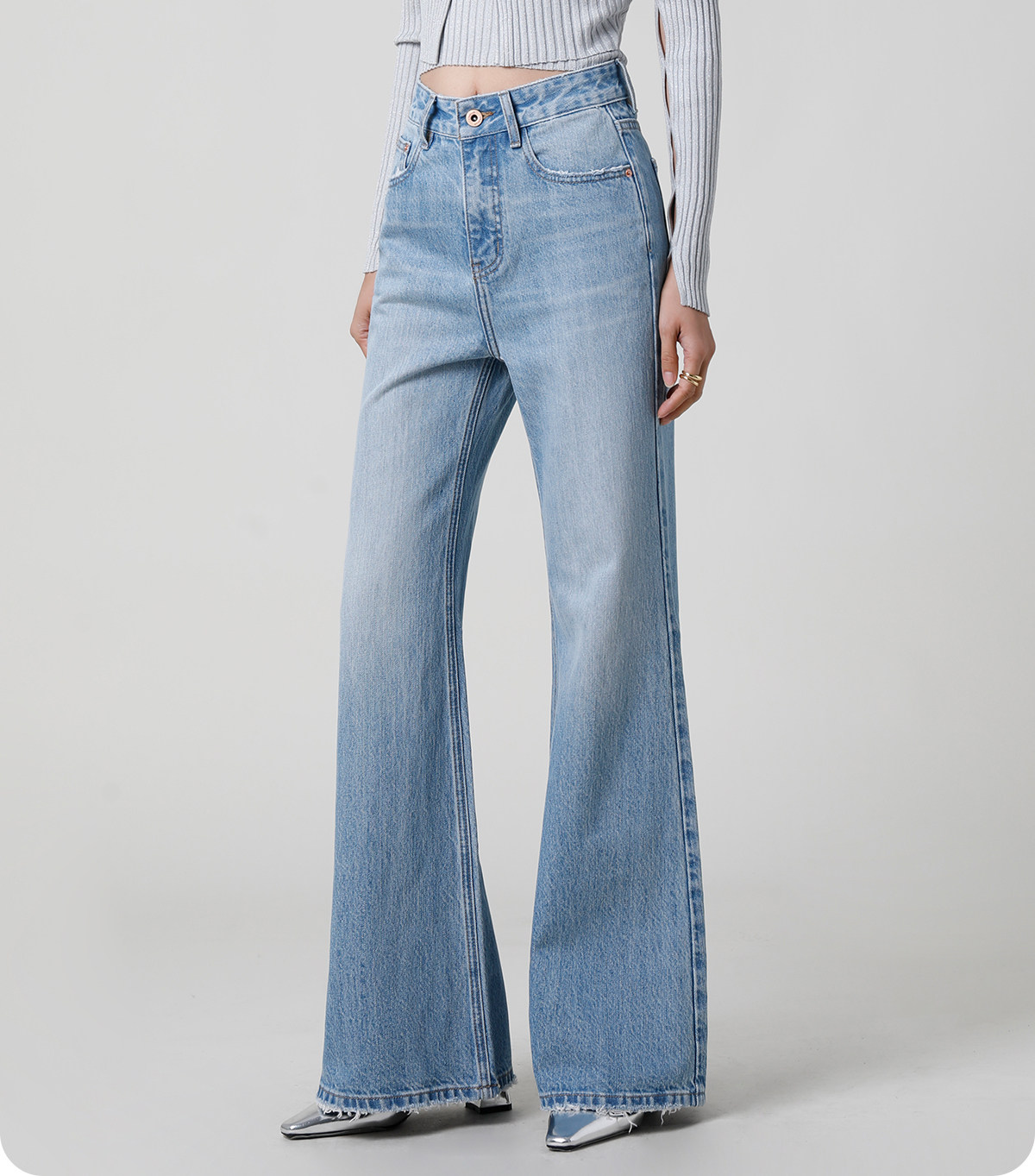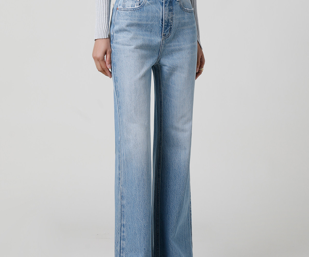 Fashionable and slimming light blue high-waisted straight-leg bootcut jeans for women loose 2025 new wide-leg flared pants