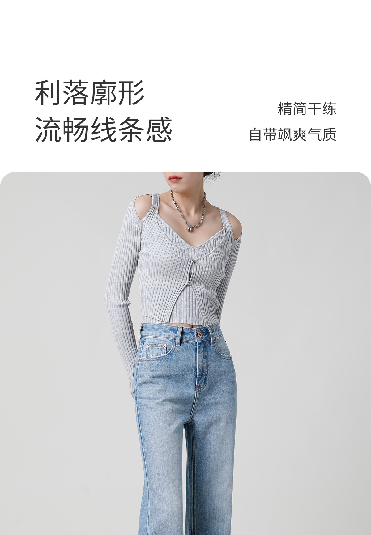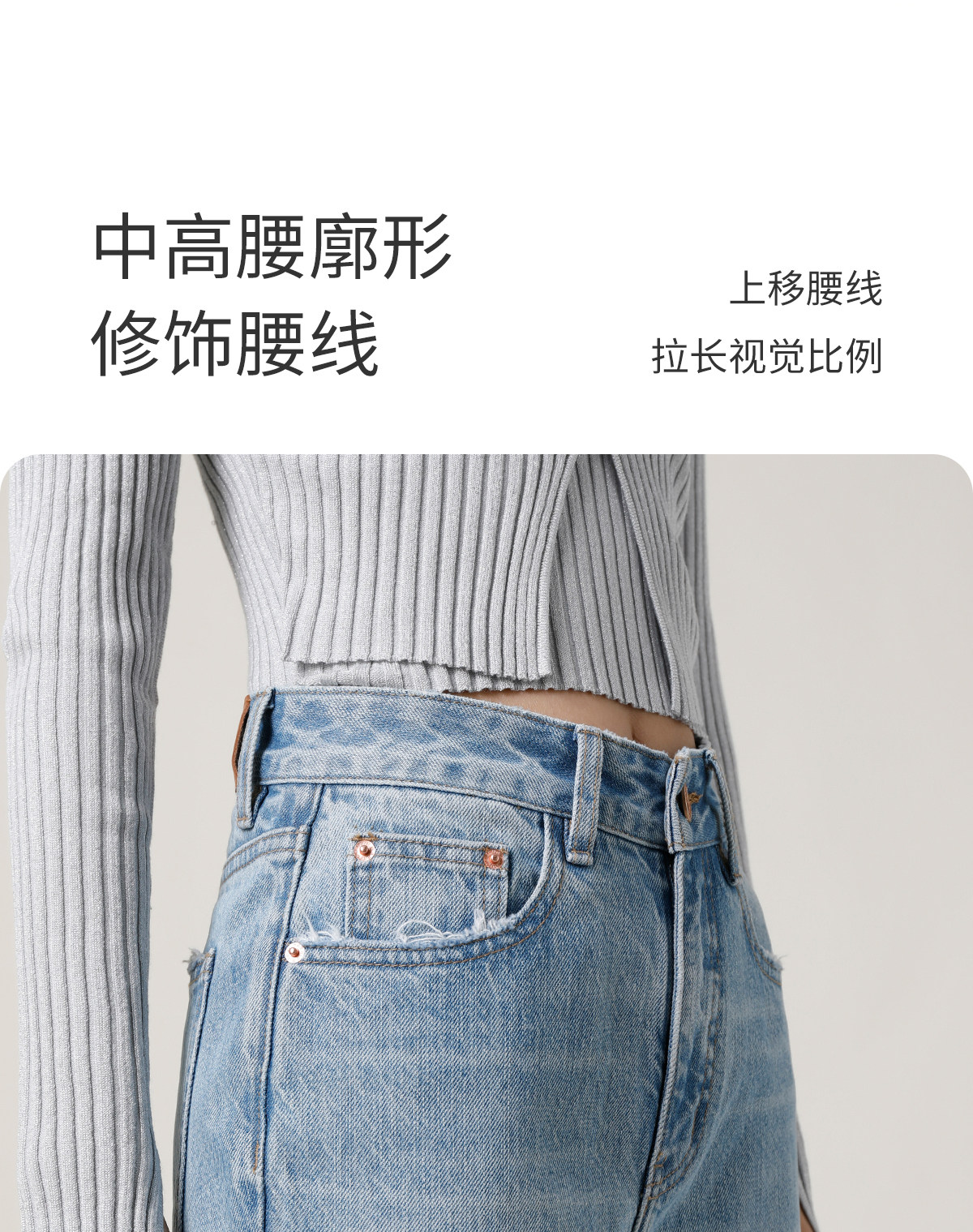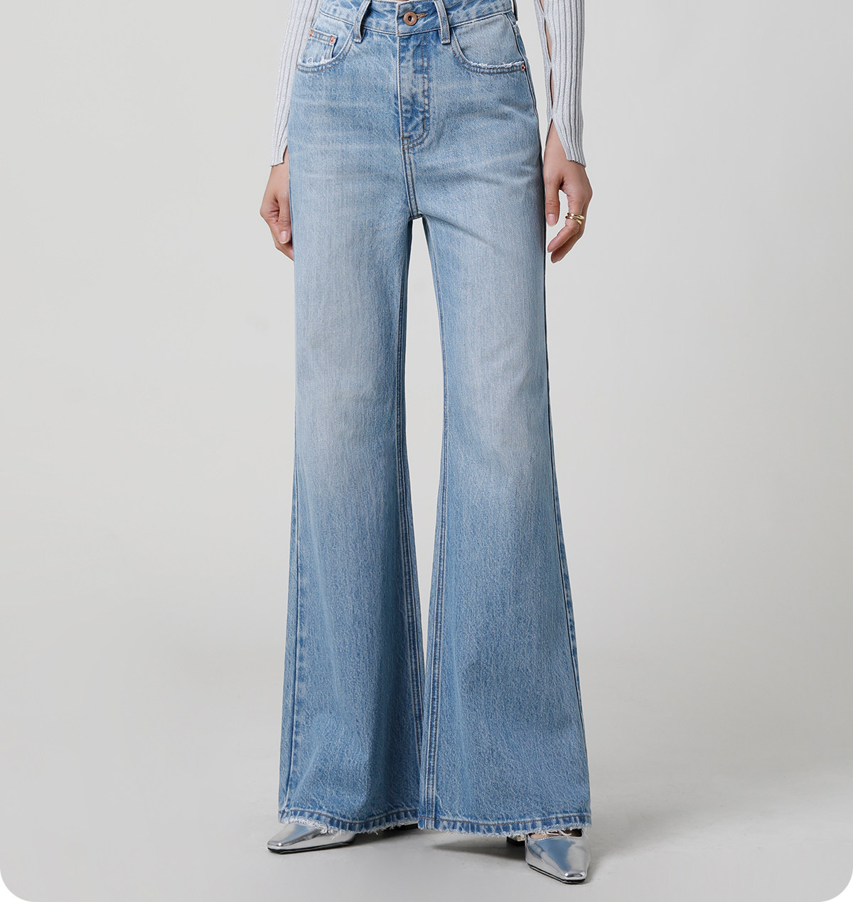 Fashionable and slimming light blue high-waisted straight-leg bootcut jeans for women loose 2025 new wide-leg flared pants