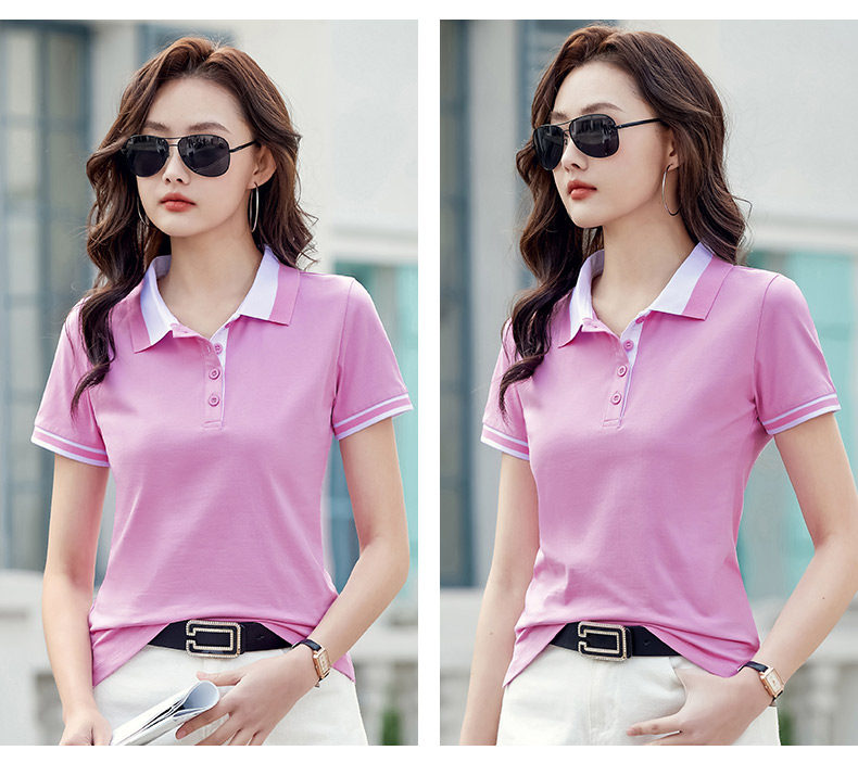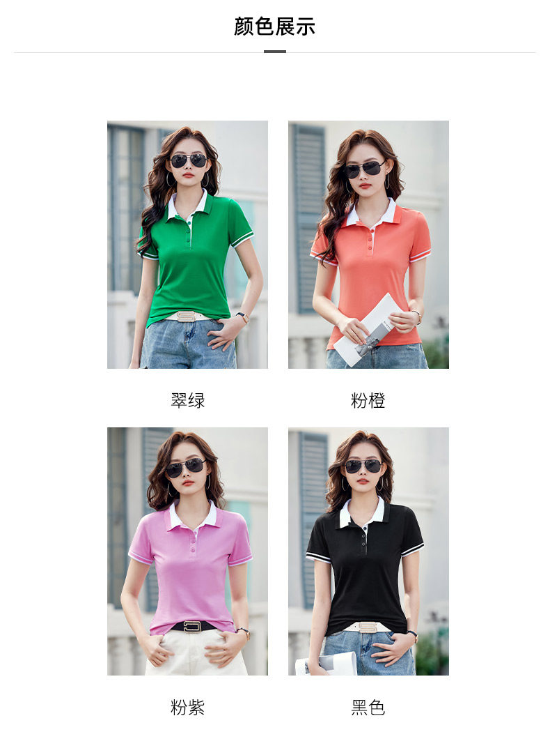 纯棉POLO衫正肩短袖T恤女夏季2026新款撞色体恤翻领运动休闲上衣
