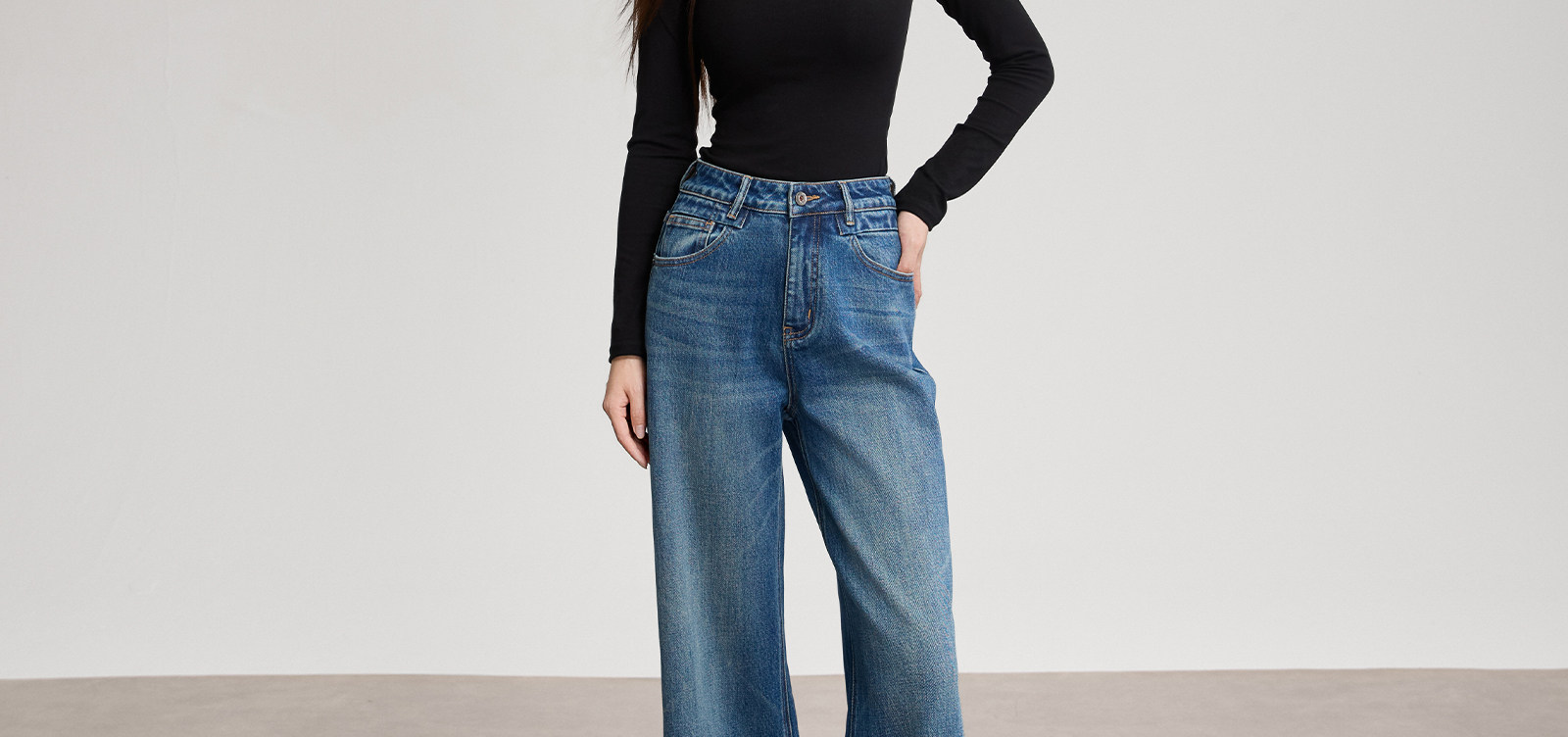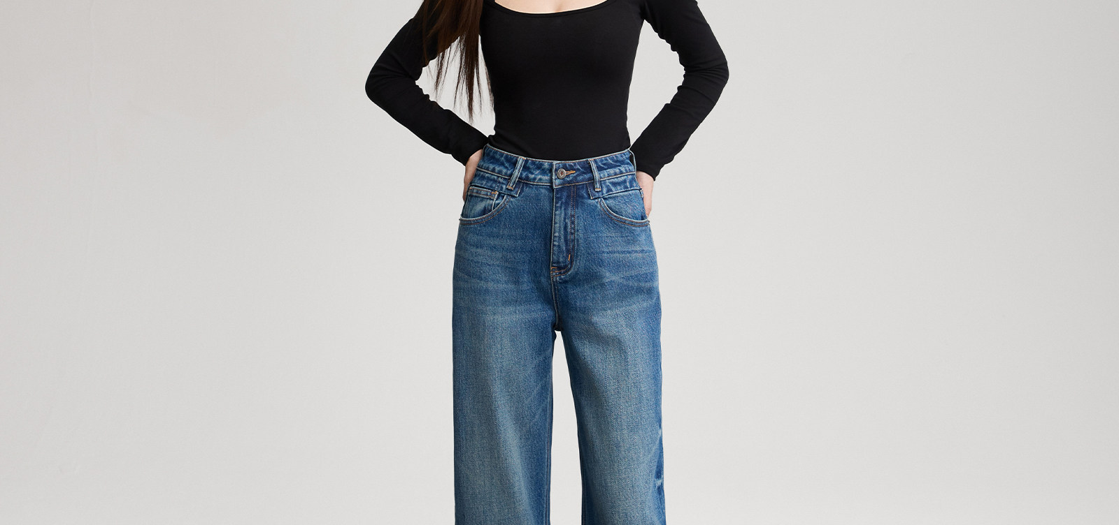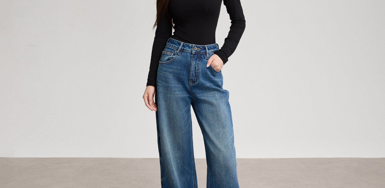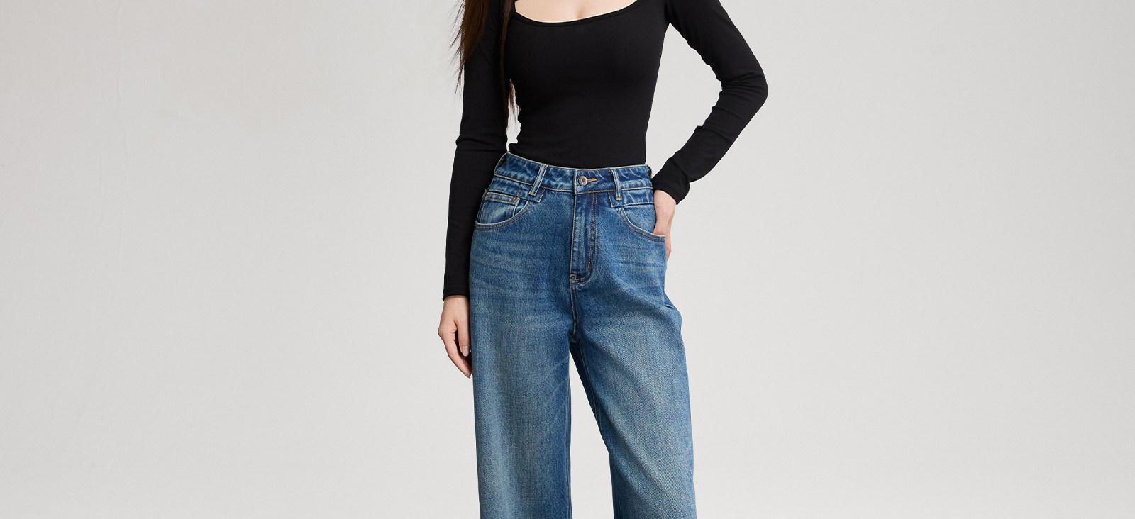 Jeans mit weitem Bein für Damen, gerade bodenlange Herbst- und Winterhose mit hoher Taille, lockere Hose Yuanfeng 5905