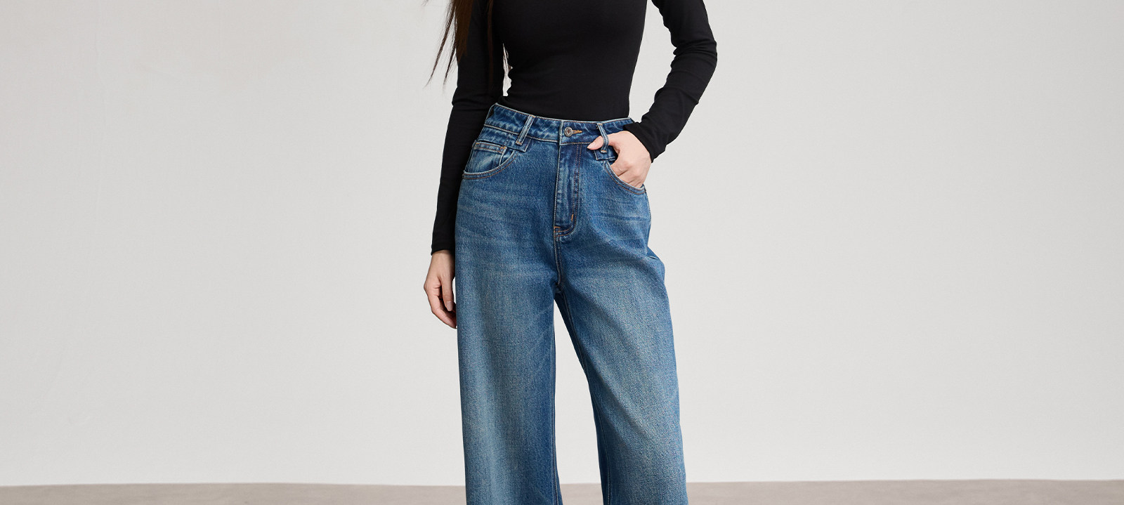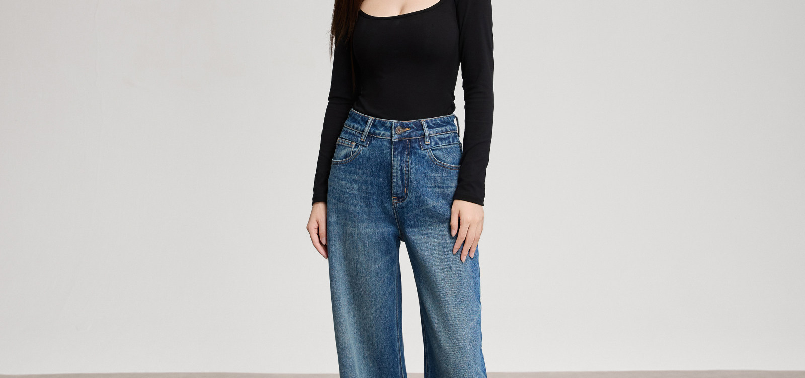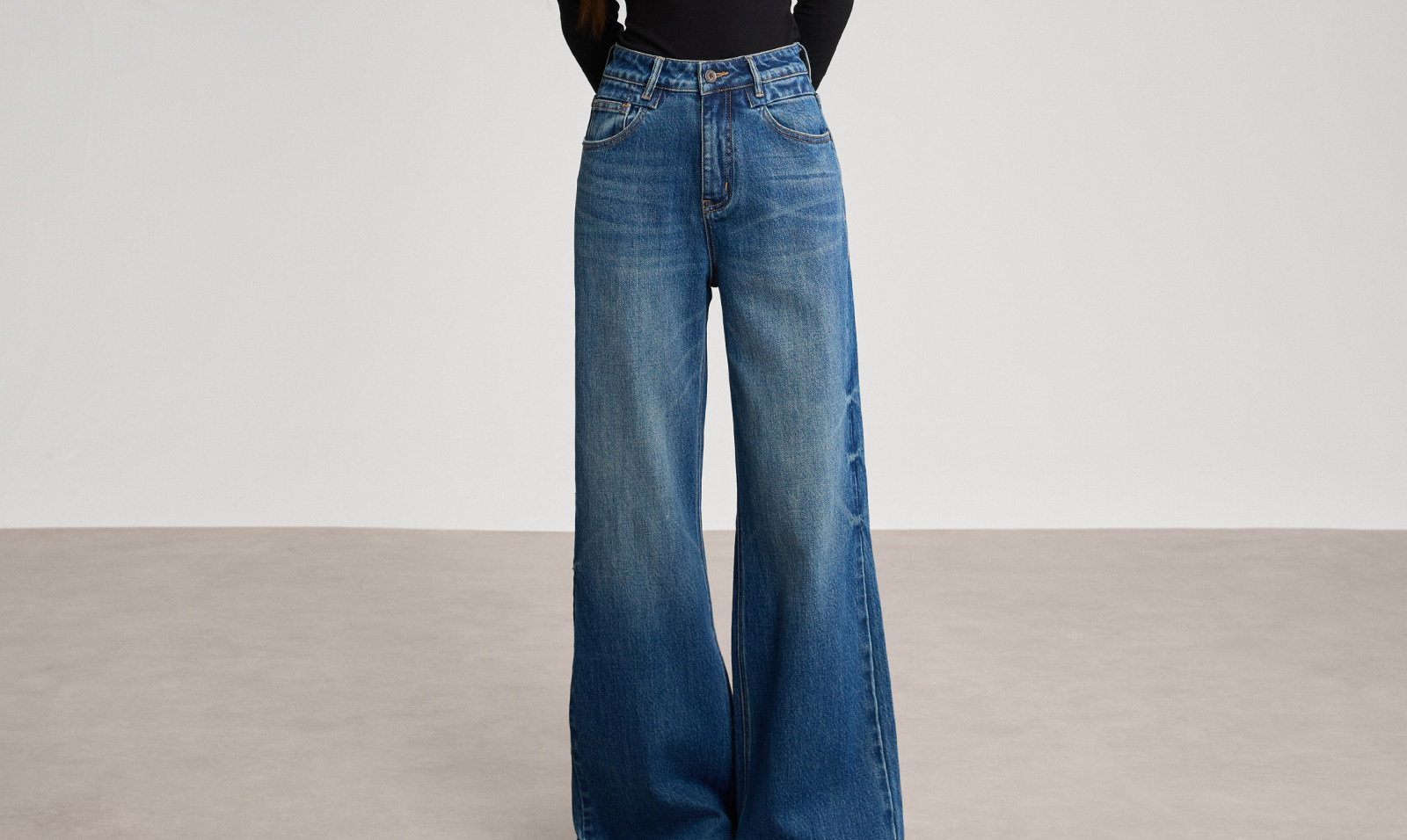 Jeans mit weitem Bein für Damen, gerade bodenlange Herbst- und Winterhose mit hoher Taille, lockere Hose Yuanfeng 5905