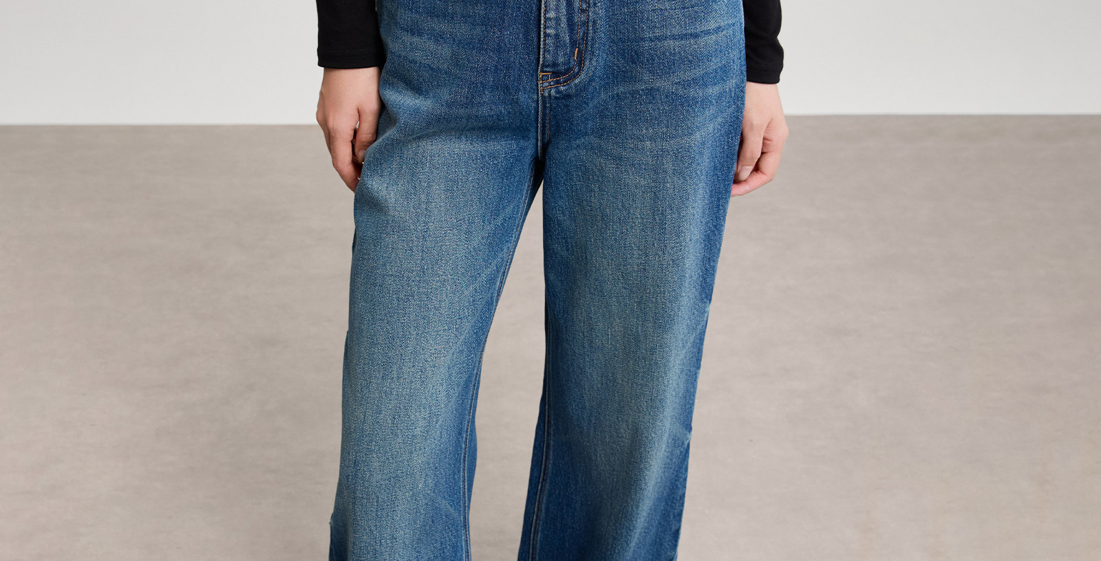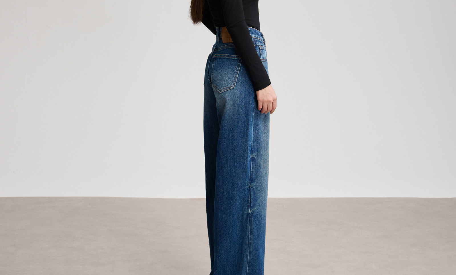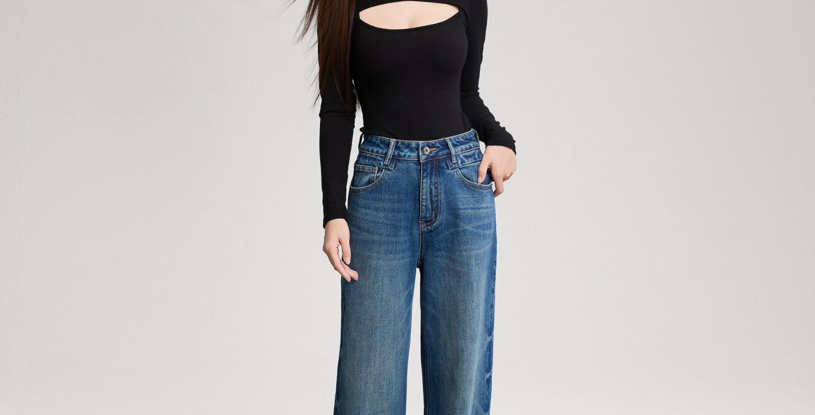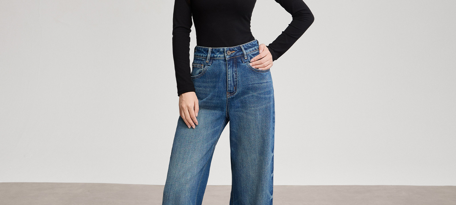 Jeans mit weitem Bein für Damen, gerade bodenlange Herbst- und Winterhose mit hoher Taille, lockere Hose Yuanfeng 5905