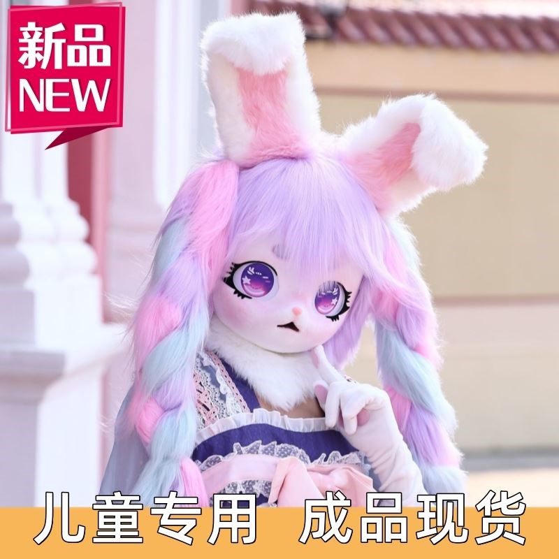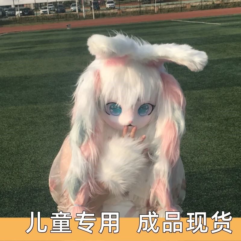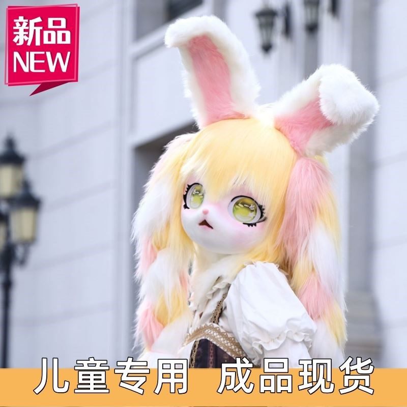 [Оранжевые материалы]Детские головные уборы в стиле кигуруми с изображением животных, в наличии, аниме-конвенция, меховые головные уборы для мужчин и женщин, полный комплект костюма для косплея животного.