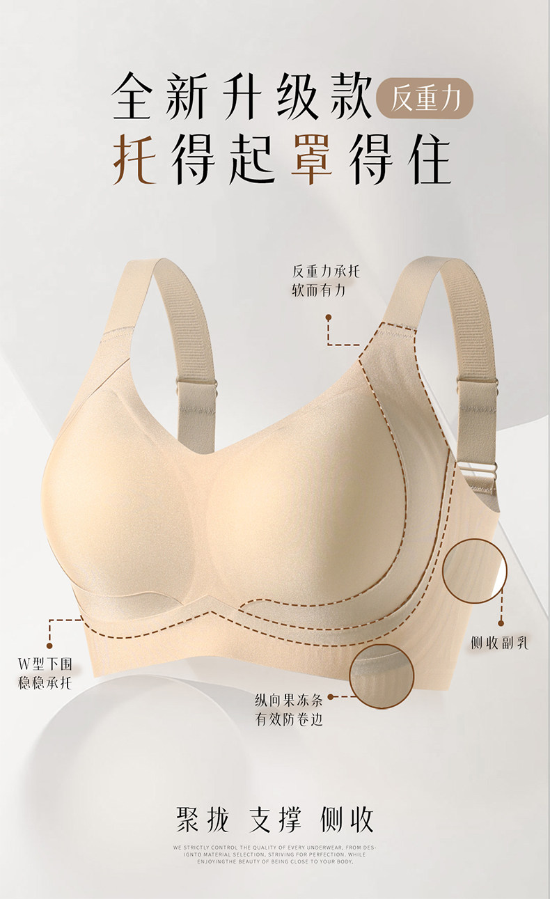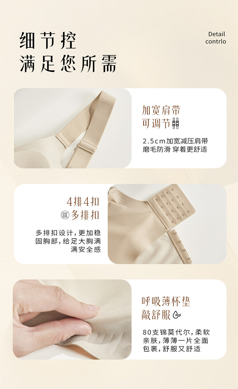Cat-Themed Large Bust Minimizing Bra for Women, Plus Size, Side Support, Anti-Sagging, Gathering, Lifting, Wireless, Soft Support Bra
