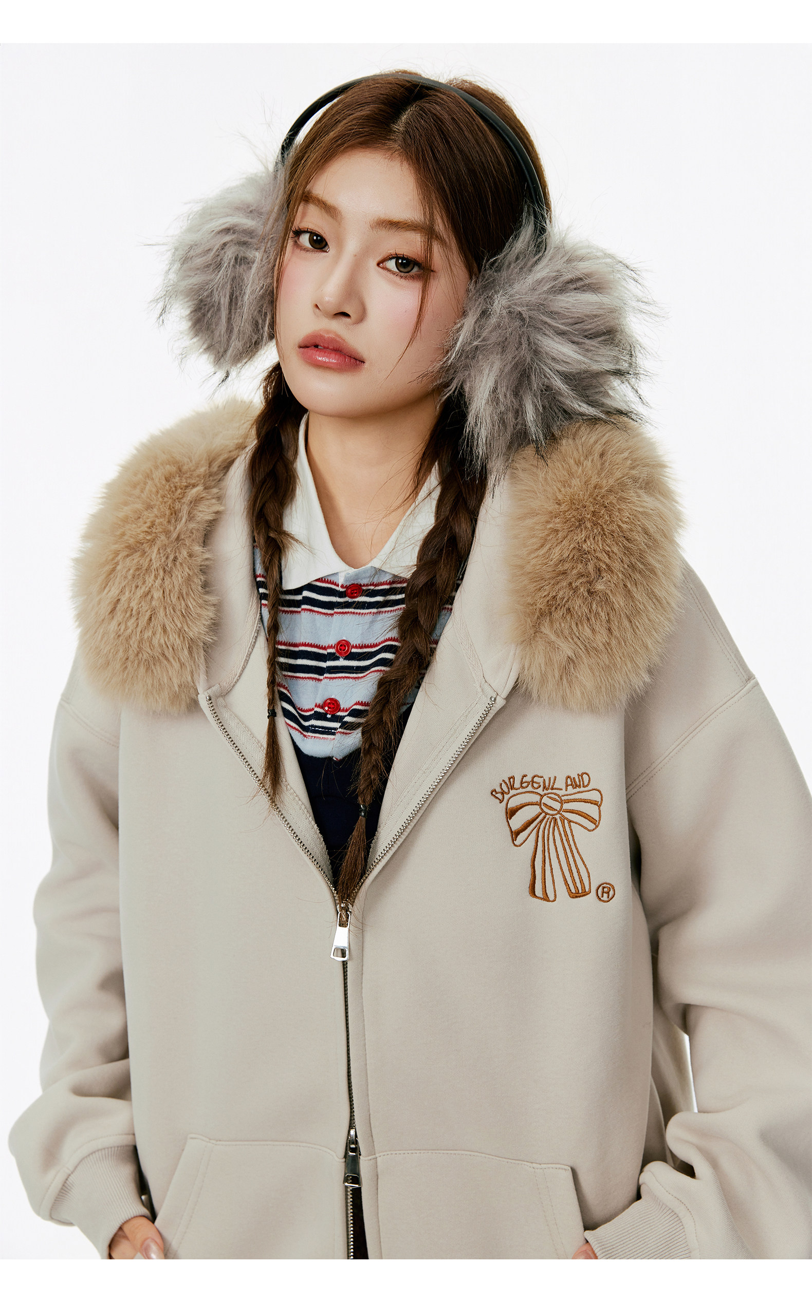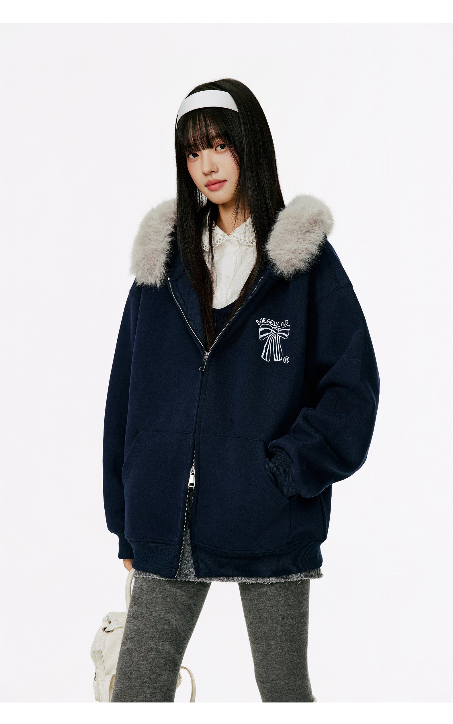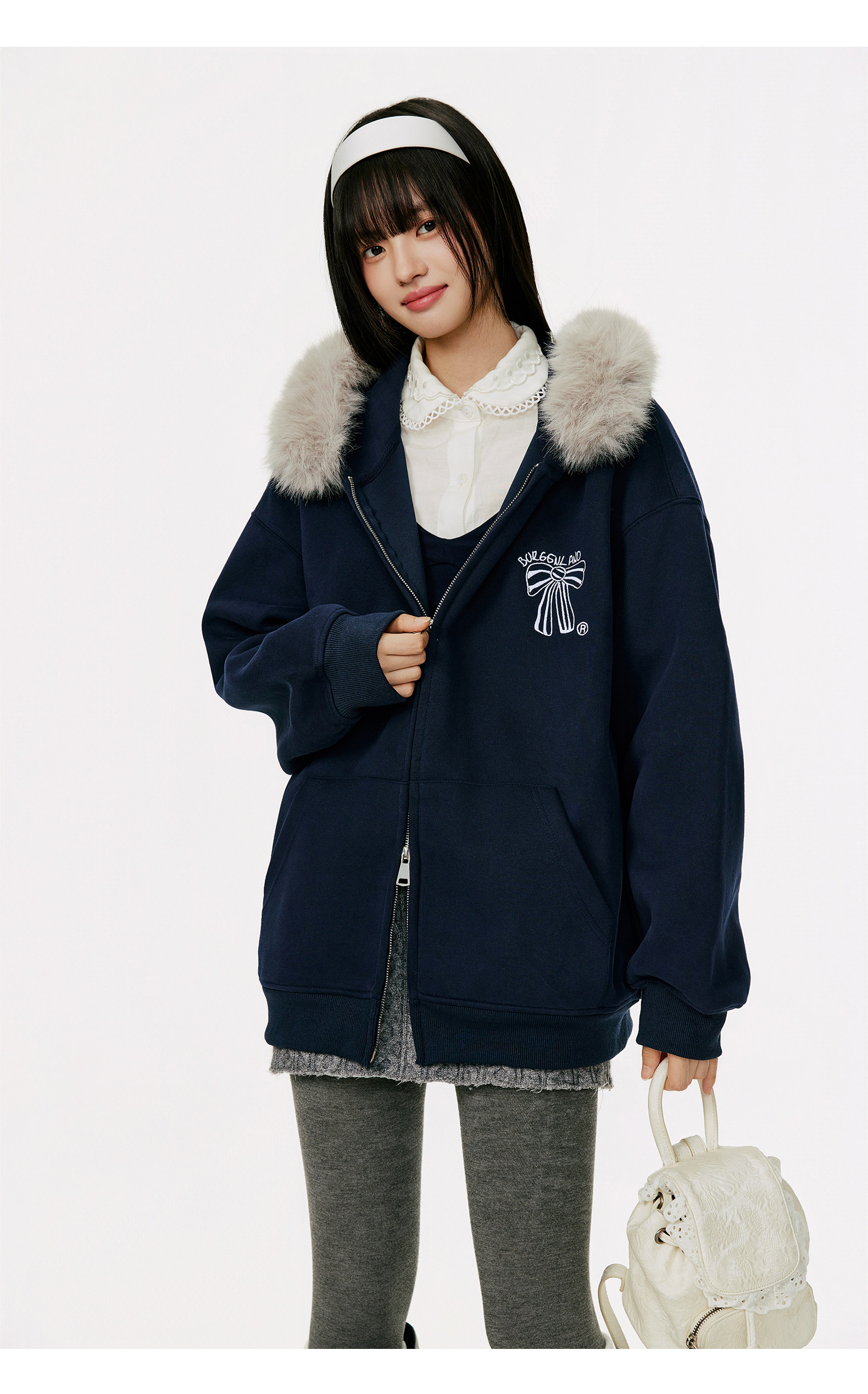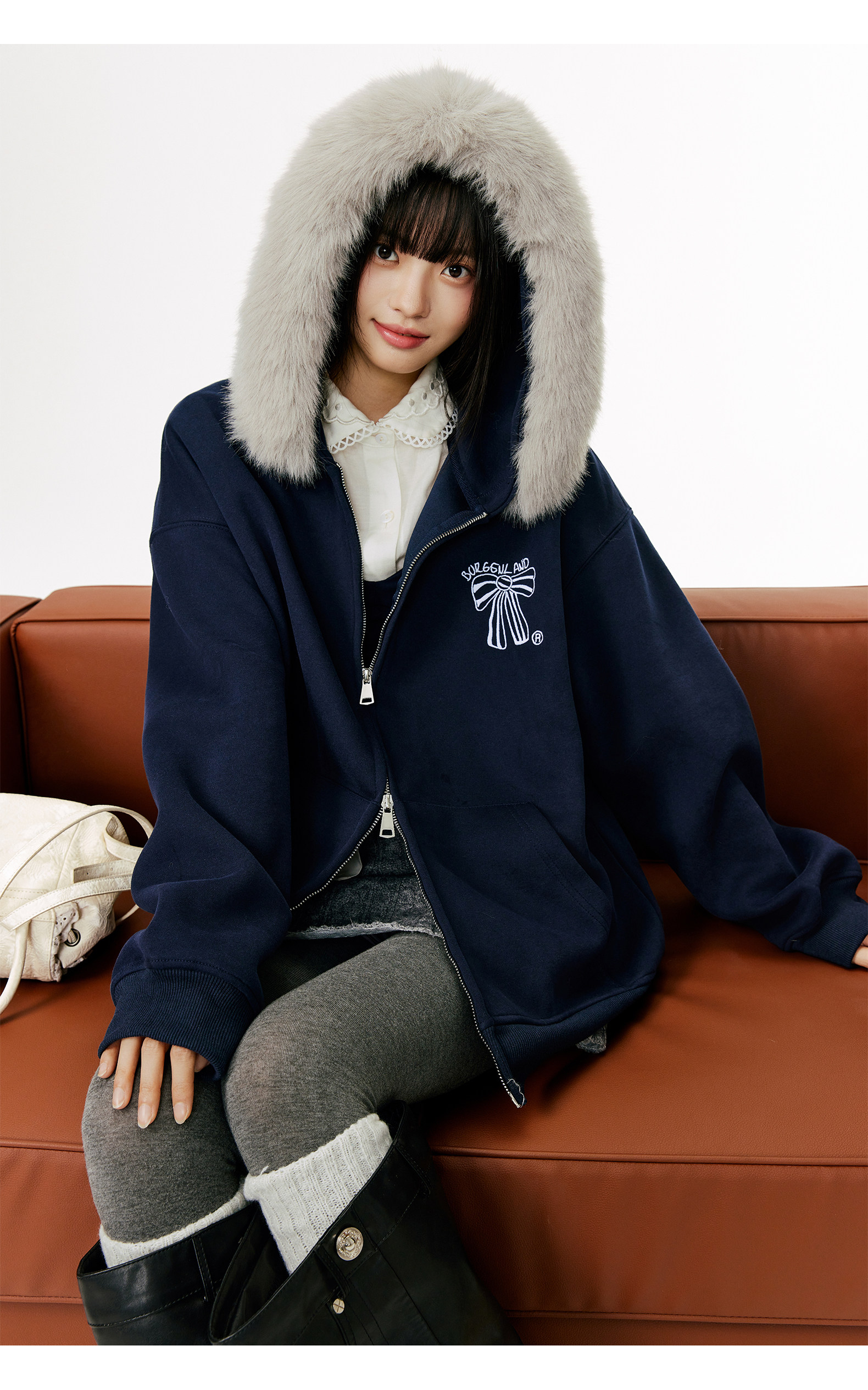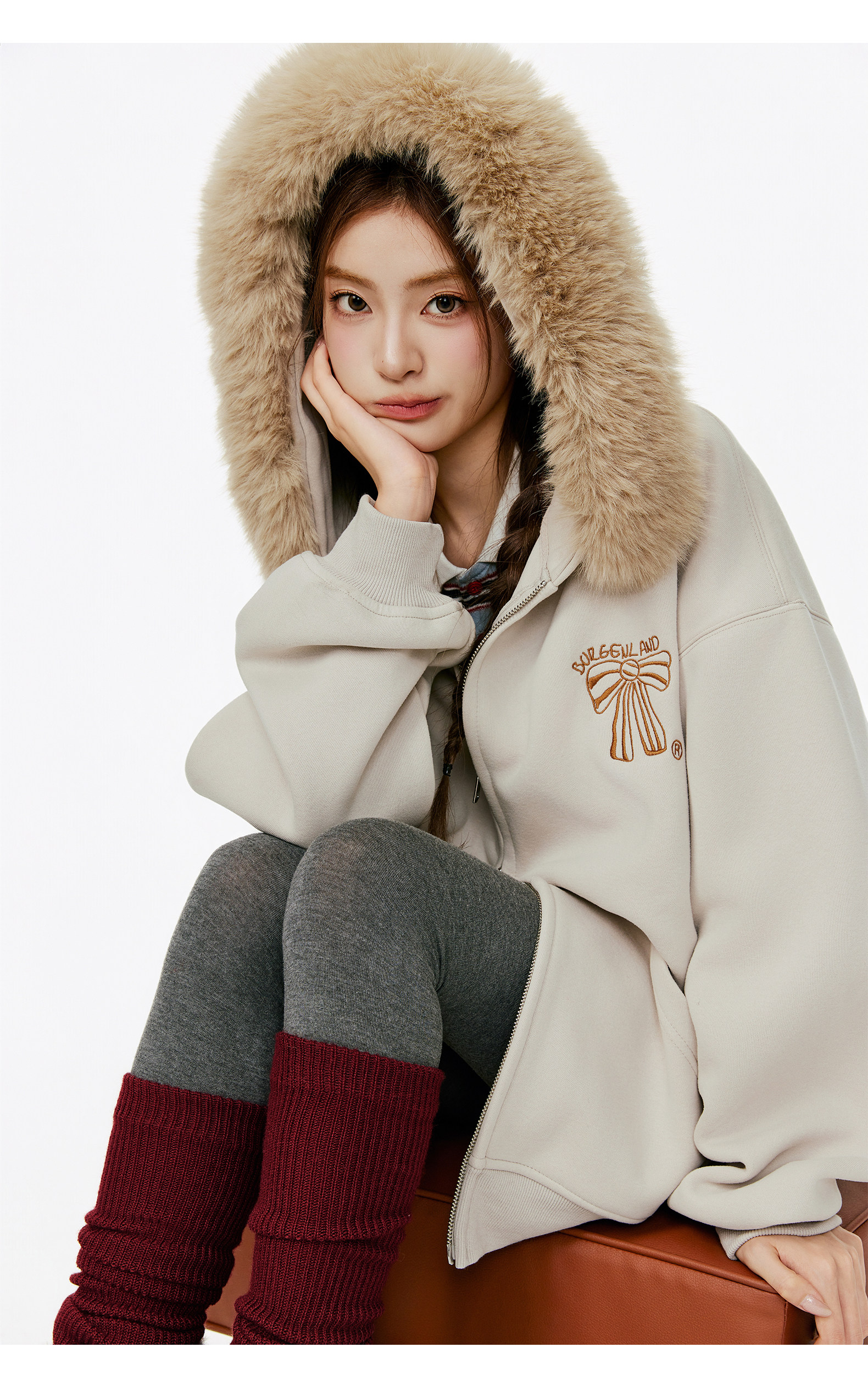 Женская толстовка-кардиган с меховым воротником и капюшоном, осенне-зимняя, с вышивкой, в стиле ретро, на молнии, повседневная, свободного кроя, с мехом