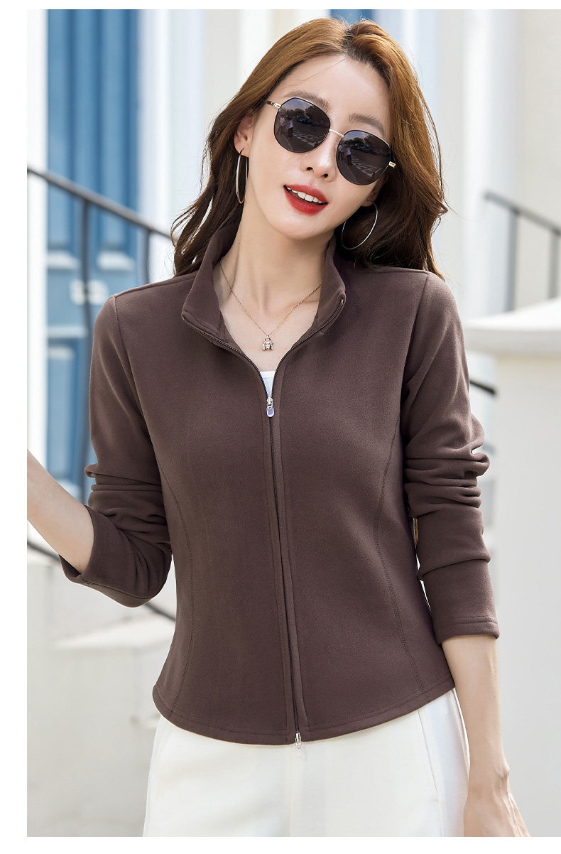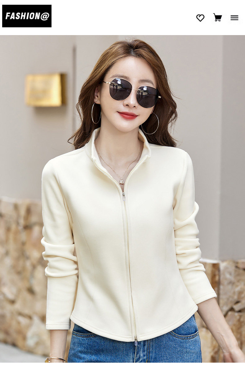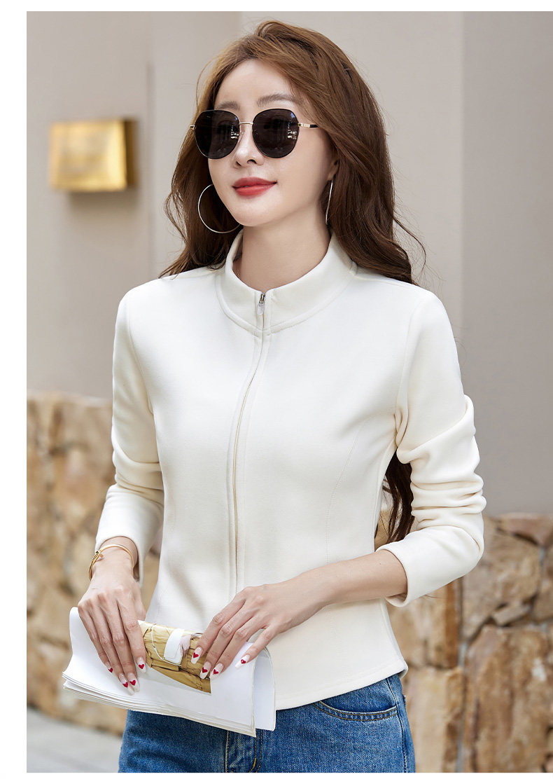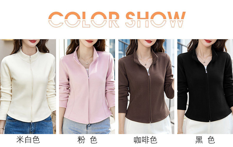 双面绒立领短款拉链开衫外套女秋冬2025新款休闲百搭长袖T恤上衣