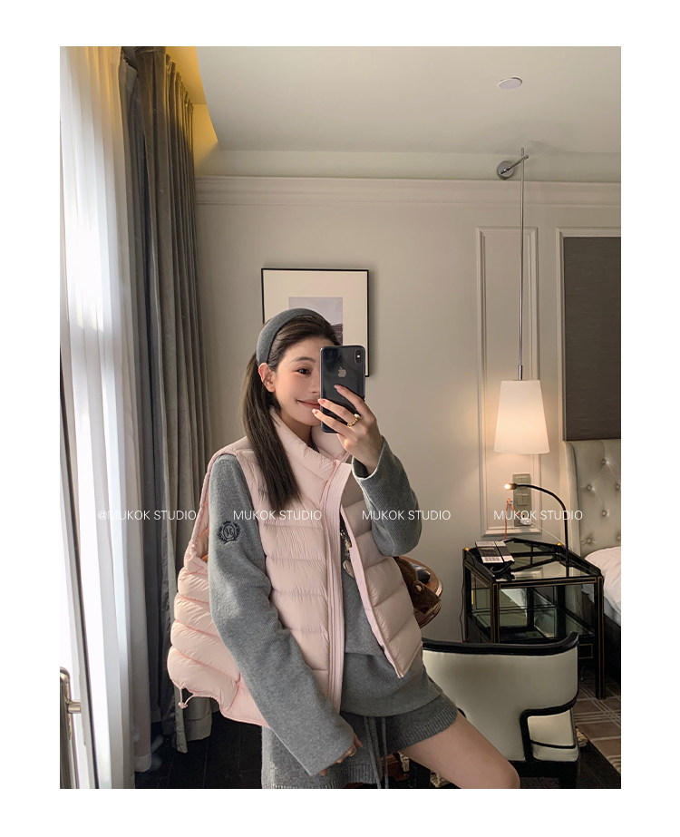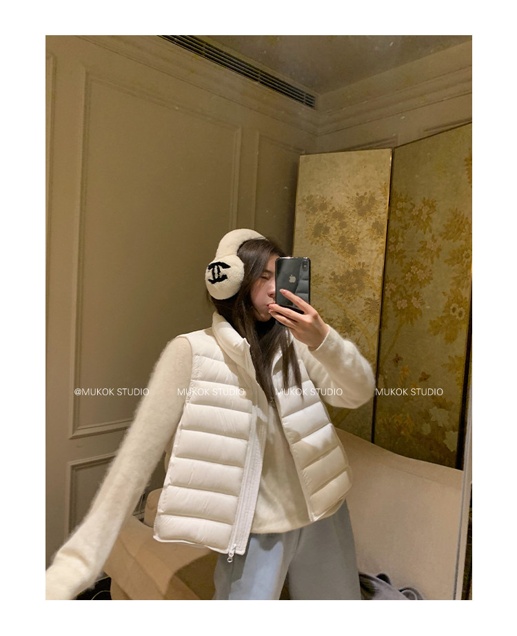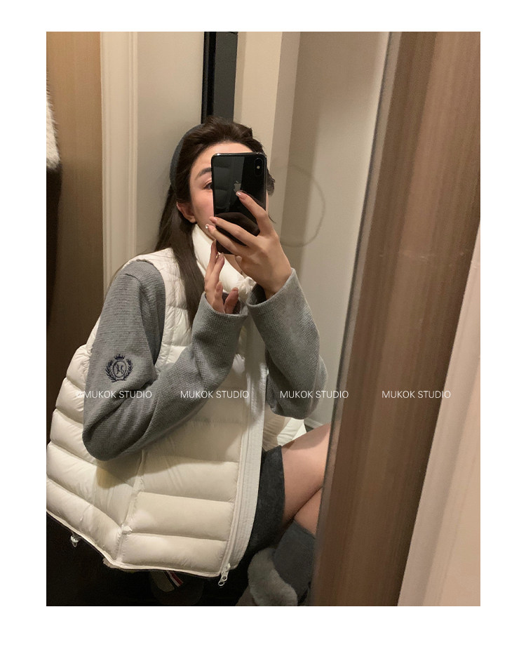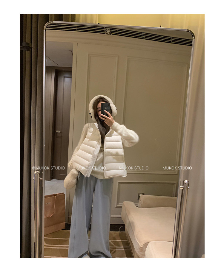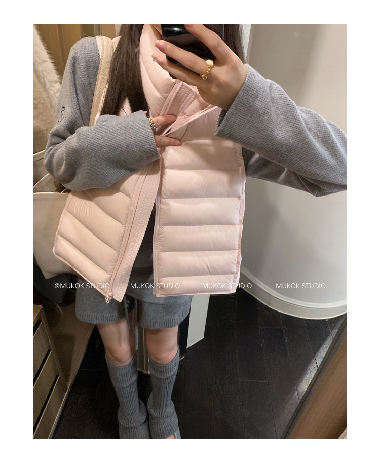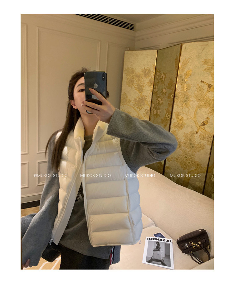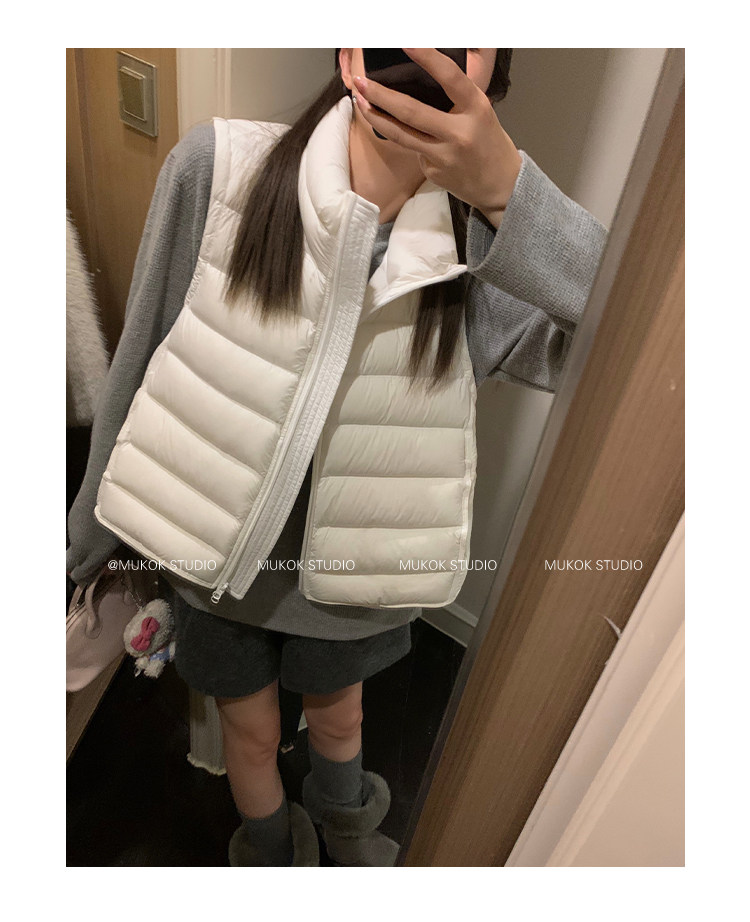 Короткий жилет MUKOK Samsung 90 из белого утиного пуха, не дающий пуху вылезать, для невысоких людей, в нескольких цветах.