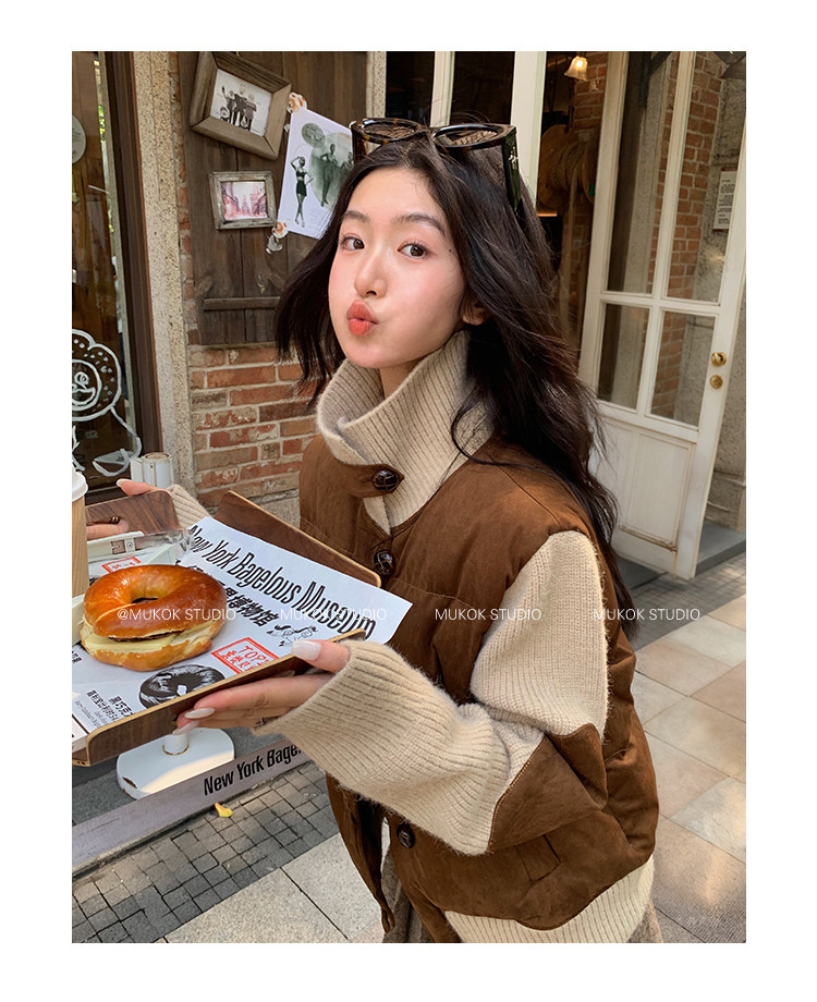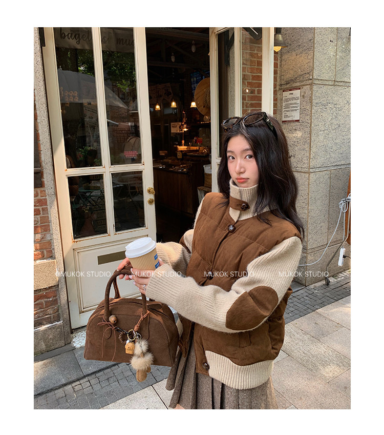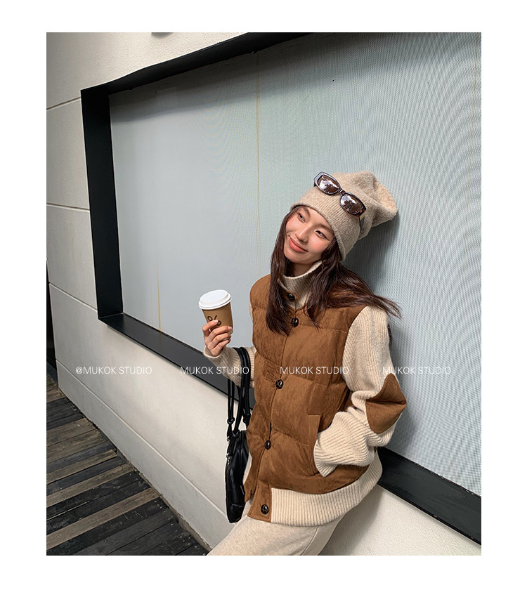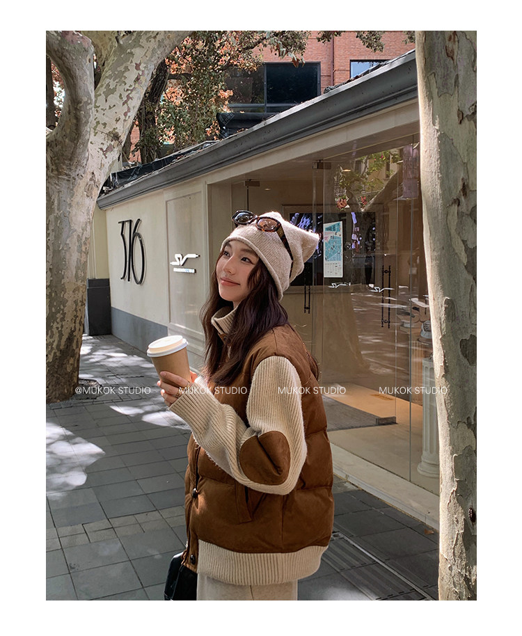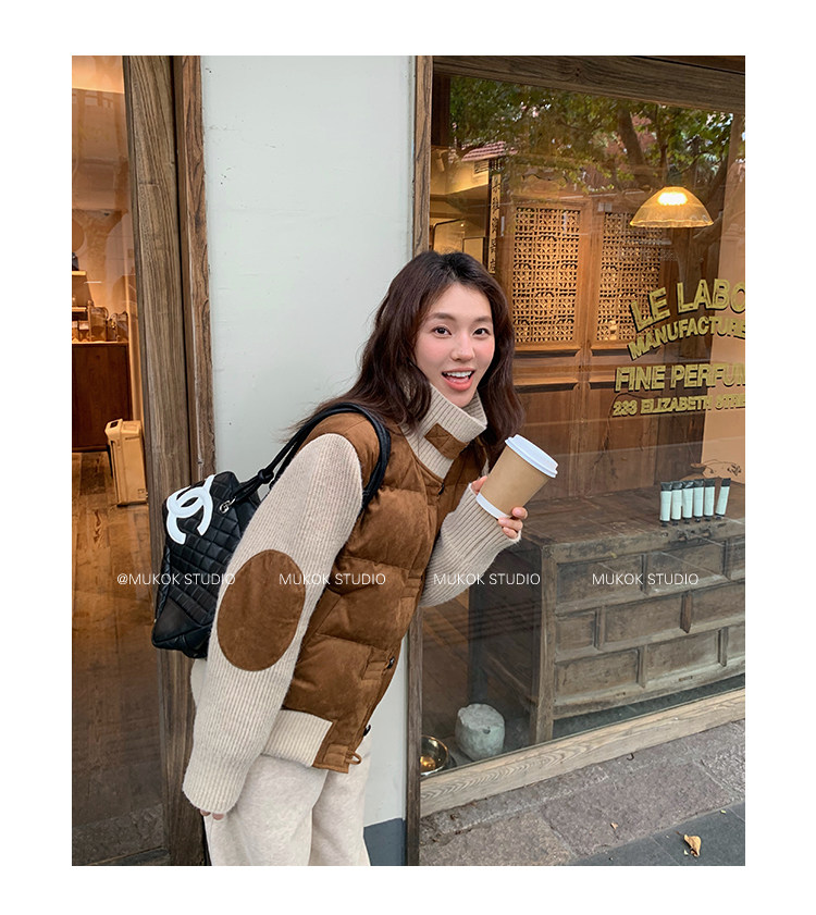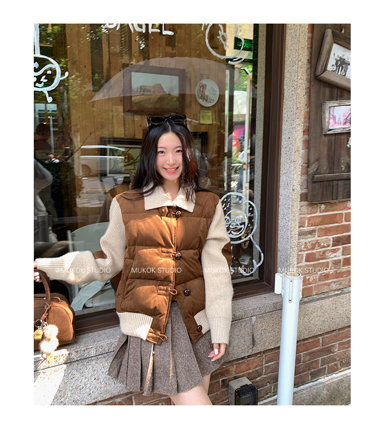 Mukok Miu Series Samsung 90 White Duck down Color-Block Suede and Wool Blend down Jacket for Women, Short Style for Autumn and Winter