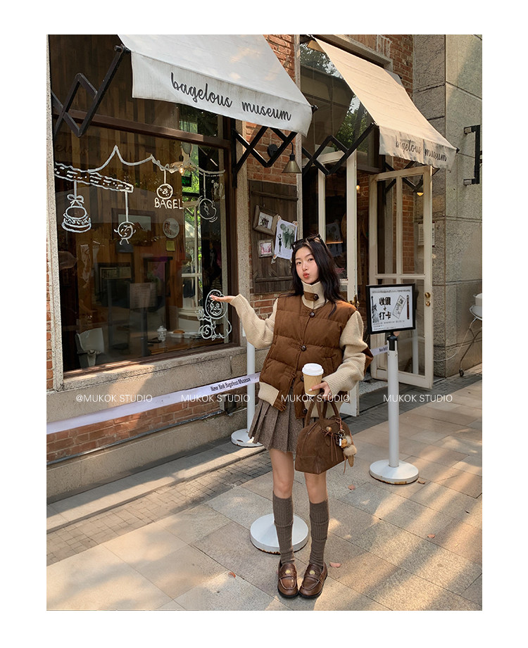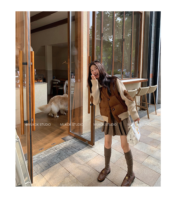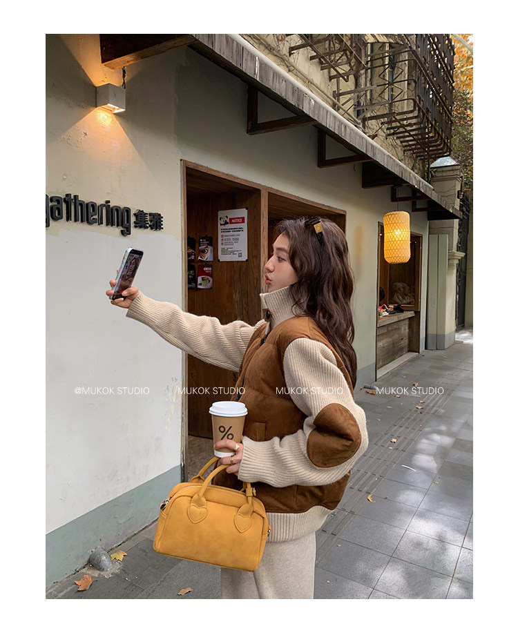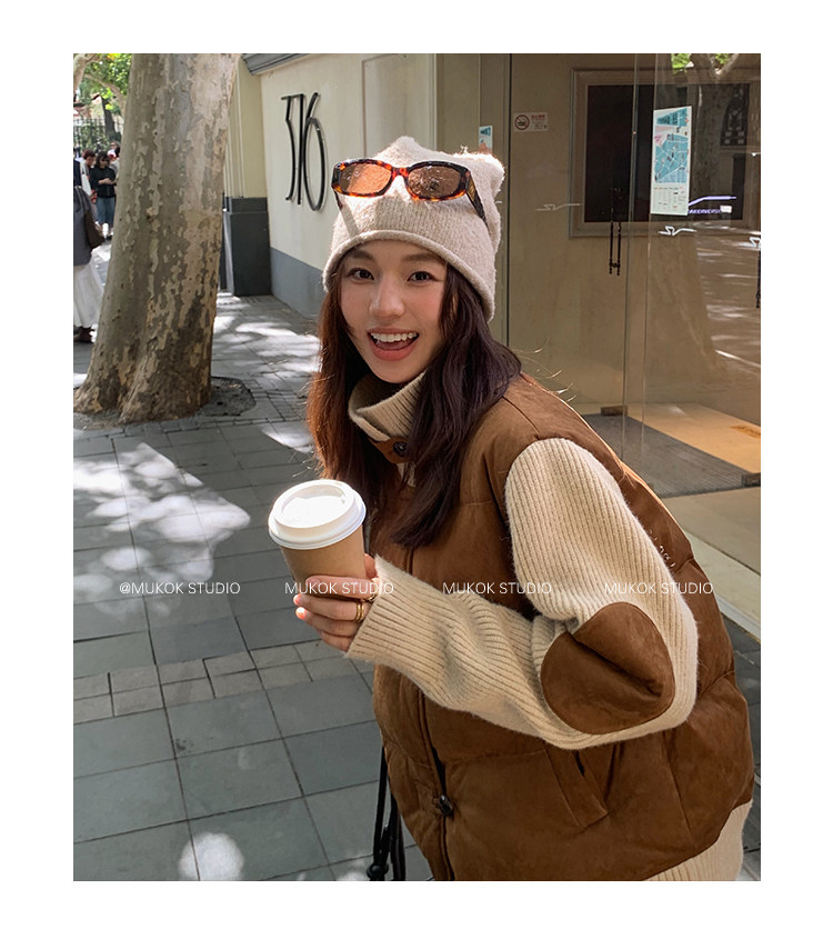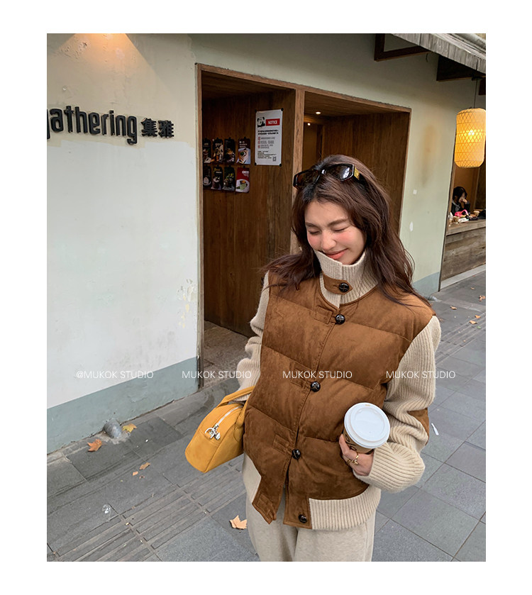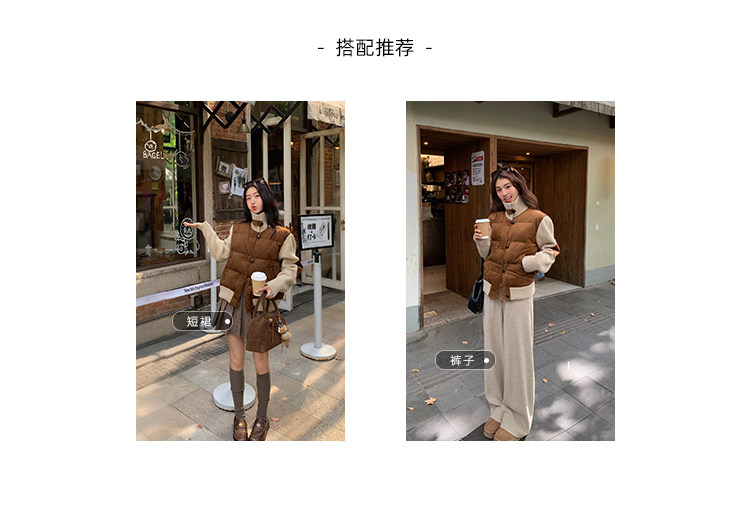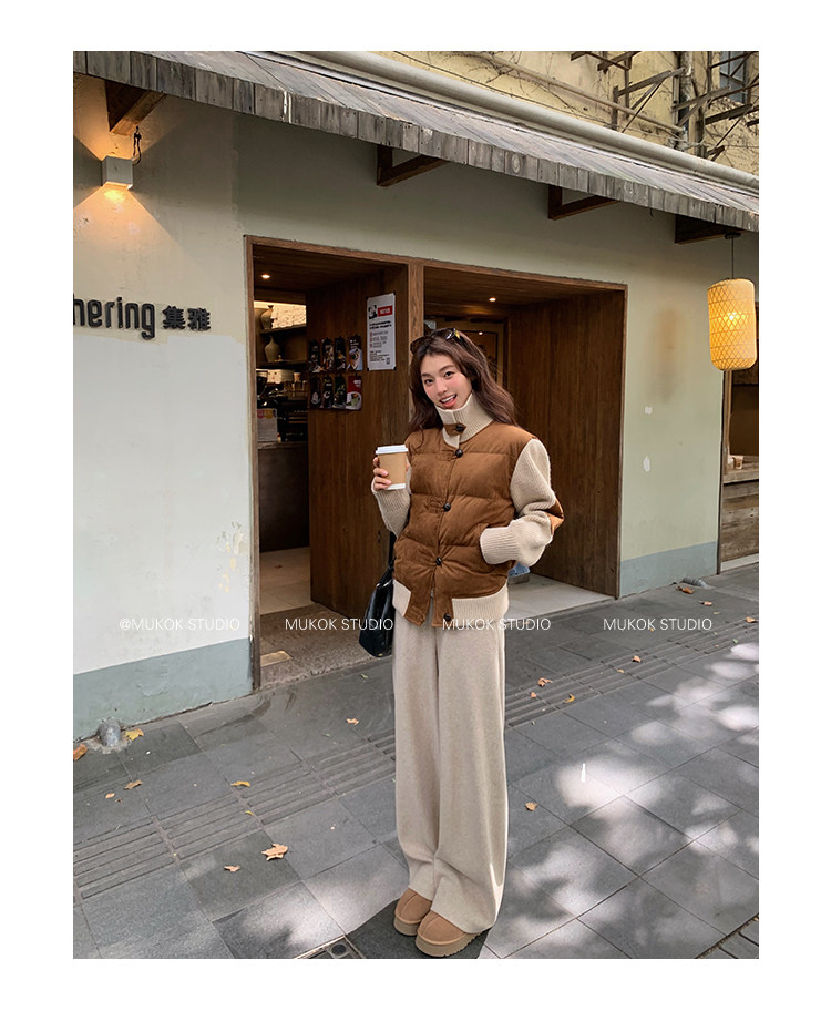 Mukok Miu Series Samsung 90 White Duck down Color-Block Suede and Wool Blend down Jacket for Women, Short Style for Autumn and Winter