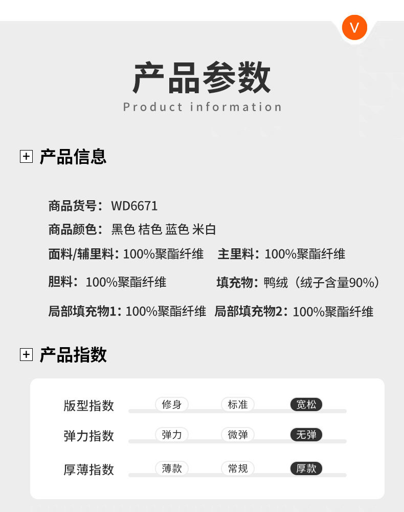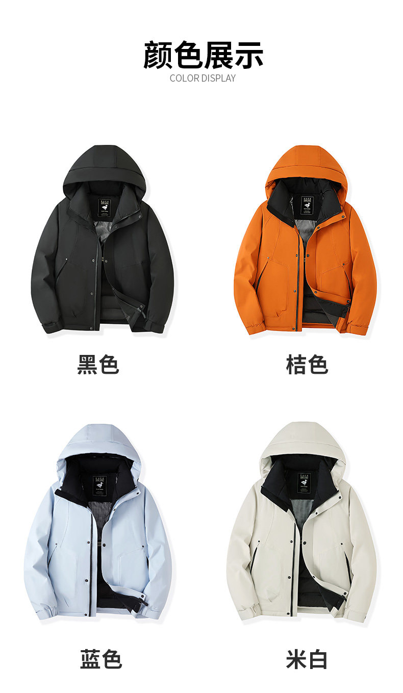 颜色 黑色【90白鸭绒】,桔色【90白鸭绒】,蓝色【90白鸭绒】,米白【90白鸭绒】