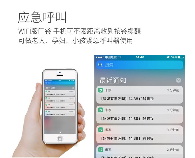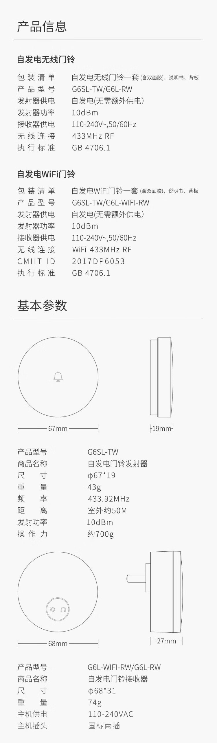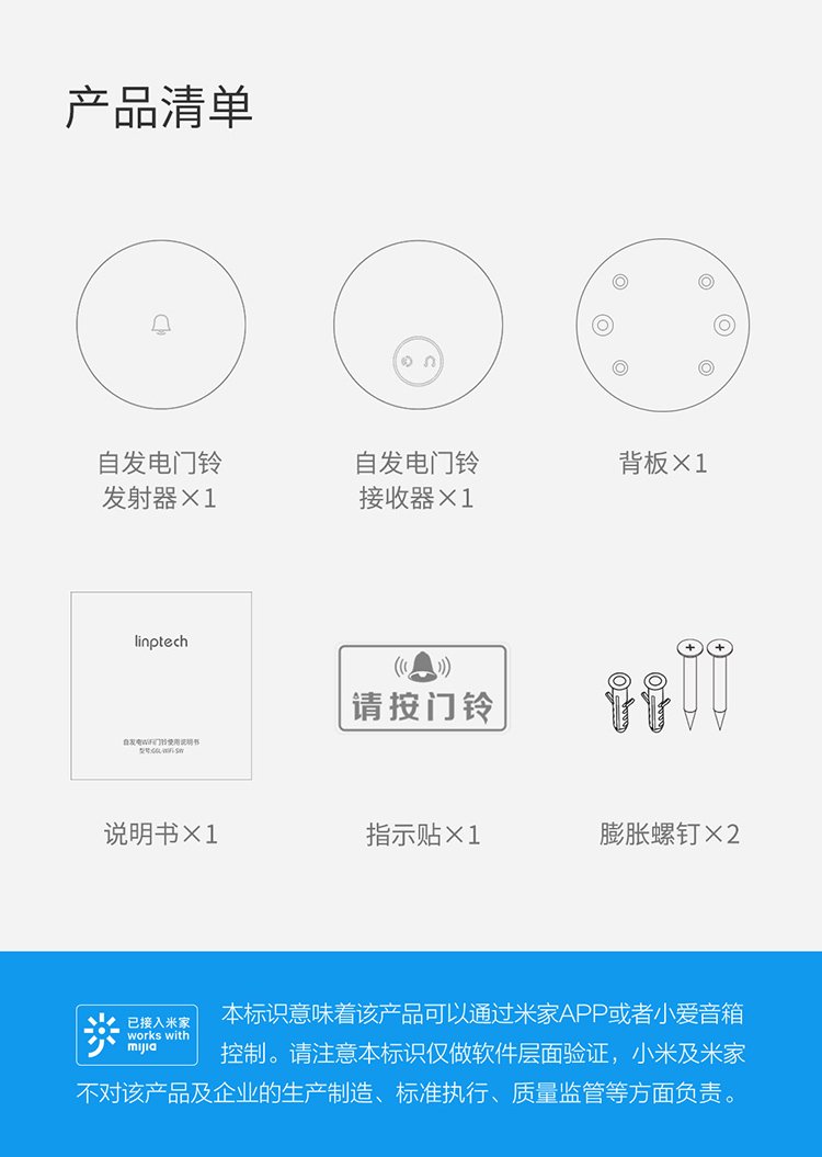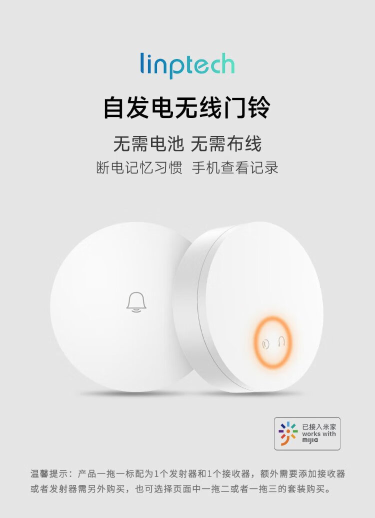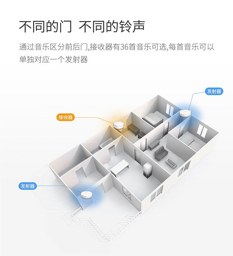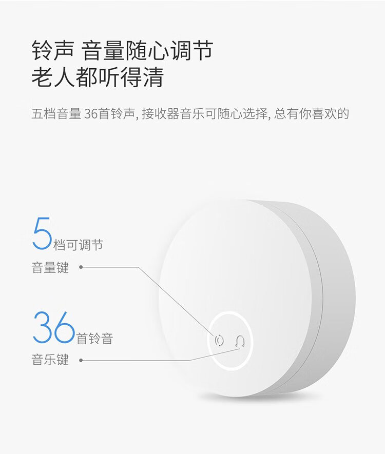 领普科技自发电无线门铃 远距离大音量家用老人呼叫器普通款