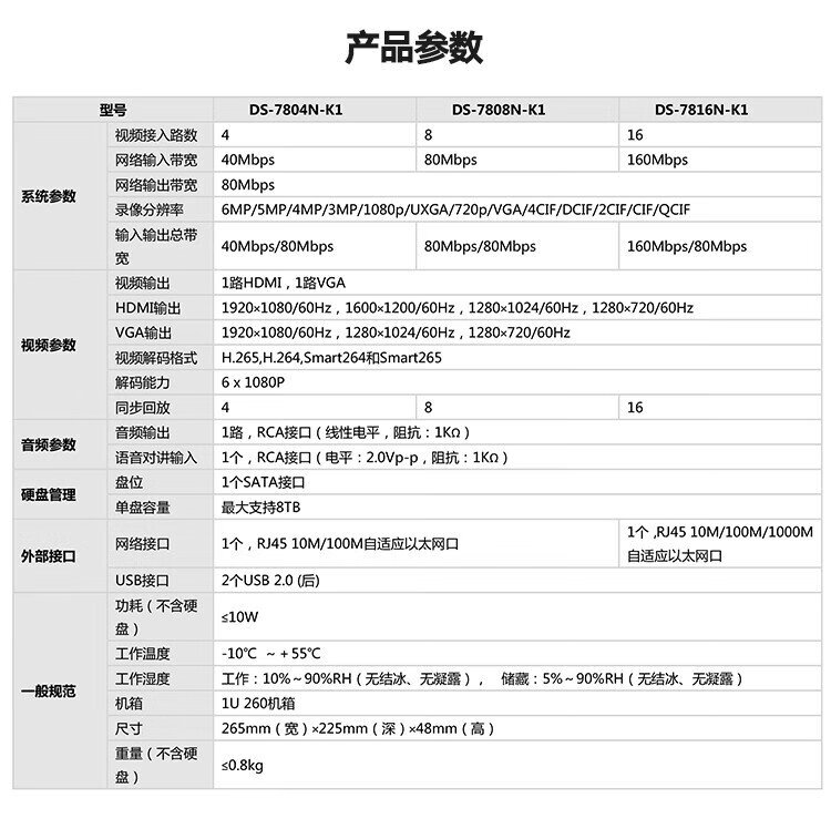 HIKVISION Hikvision network surveillance hard disk video recorder 16-channel H.265 encoding 1080P decoding HD surveillance video recorder DS-7816N-Q1