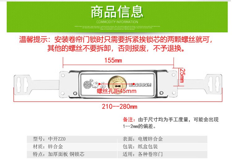 梅花(BLOSSOM)卷帘门锁 中开卷闸门锁 商铺仓库防盗门锁 C级锁芯铜芯铜钥匙DZ01