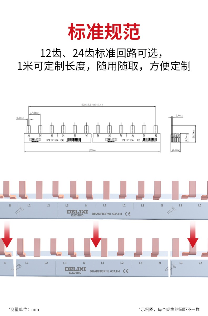 德力西(DELIXI)汇流排 断路器空气开关接线排 梳状母排【2P63A 24回路带端盖】