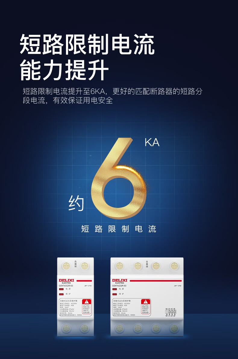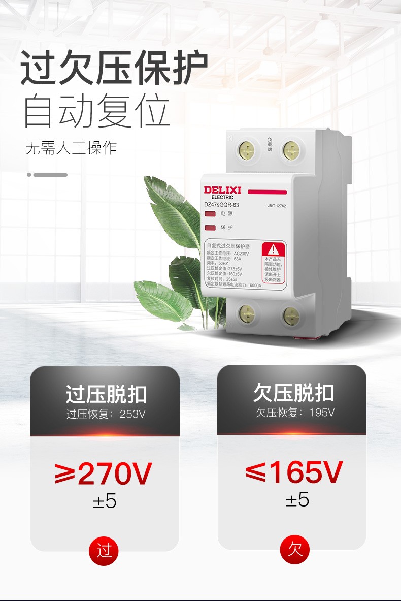 DELIXI self-restorable over and under voltage protector two-phase four-wire over and under voltage protection DZ47SGQR circuit breaker 1P+N 63A