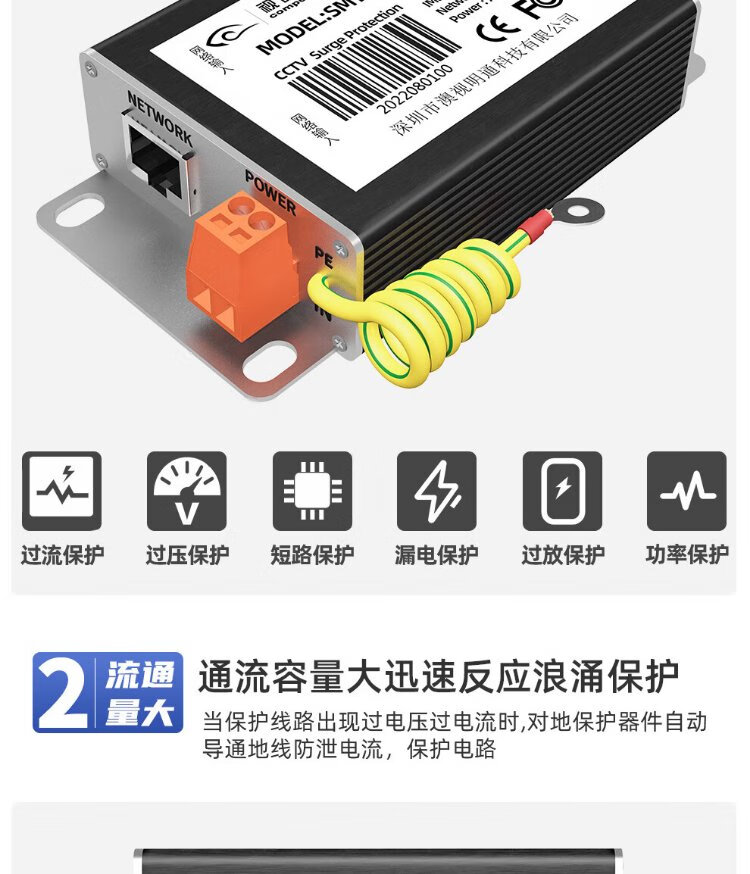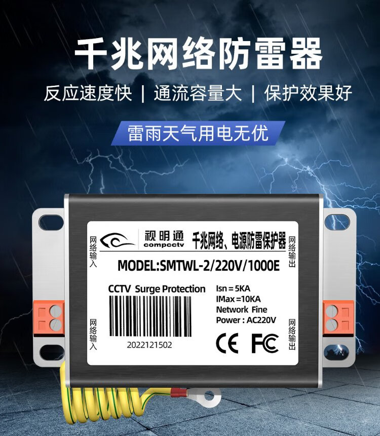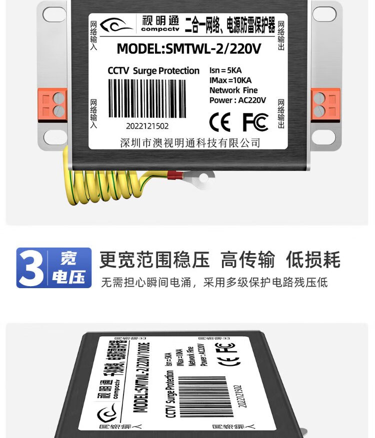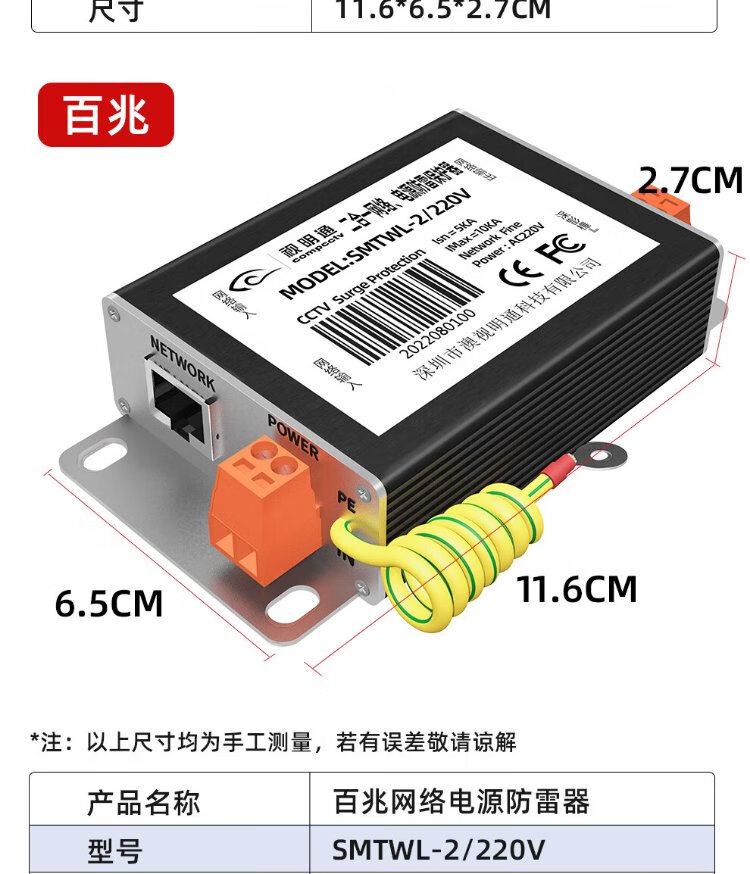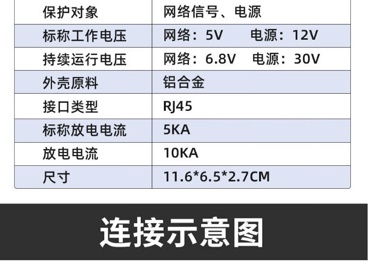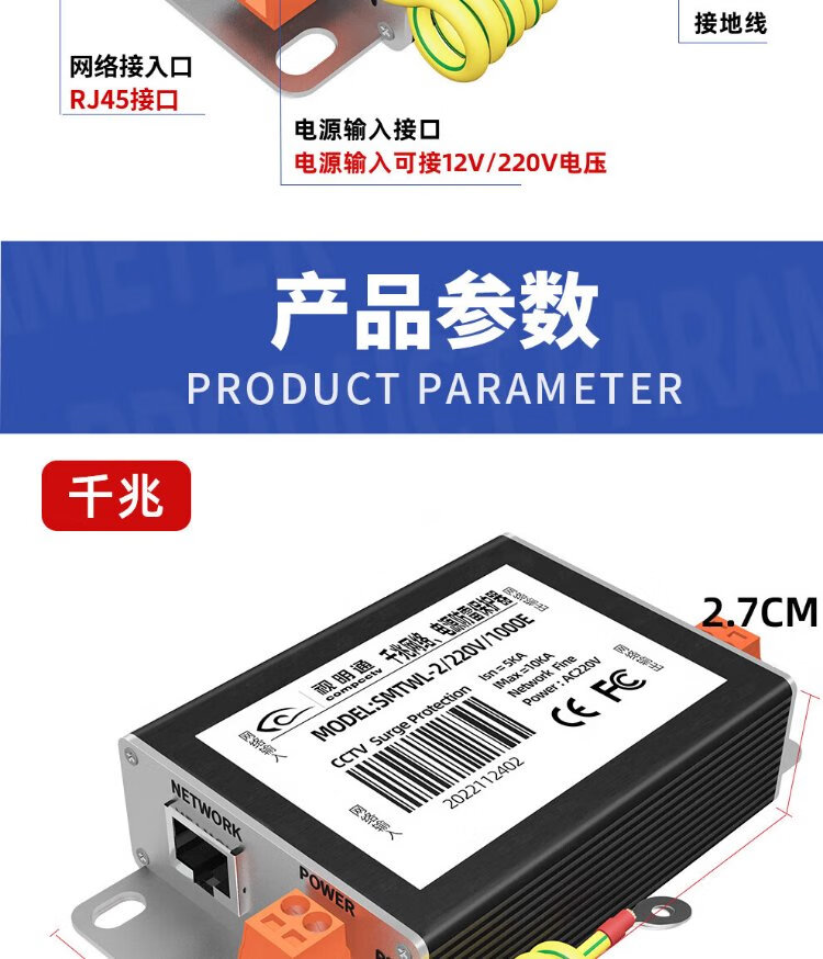 视明通 千兆二合一网络电源防雷器 监控摄像头避雷器1000M RJ45网线口信号浪涌保护器