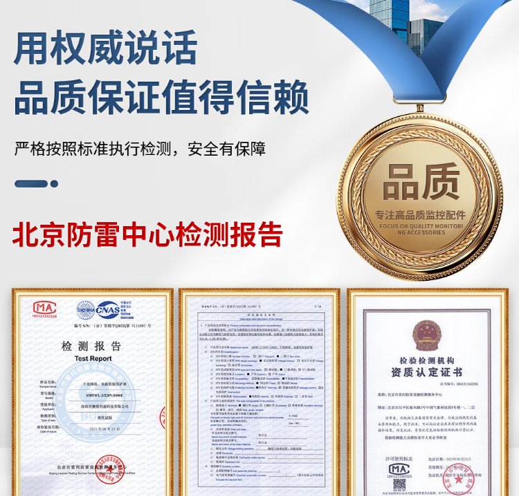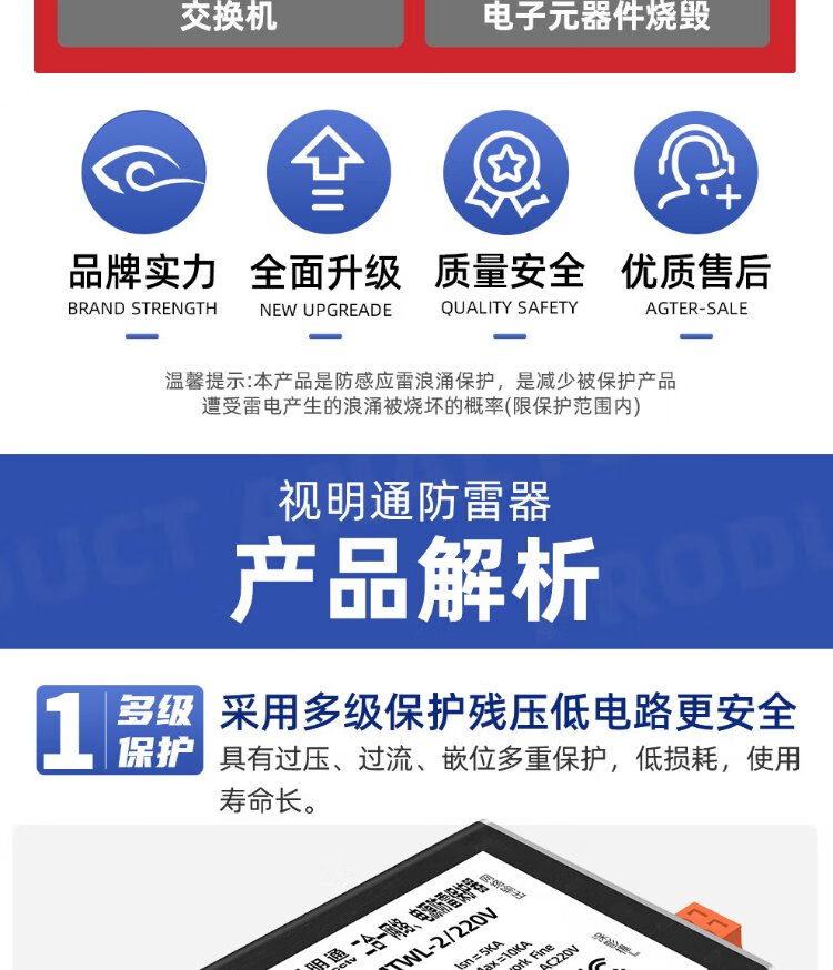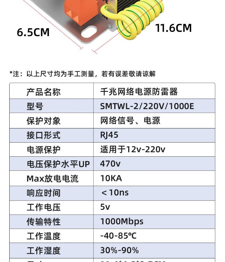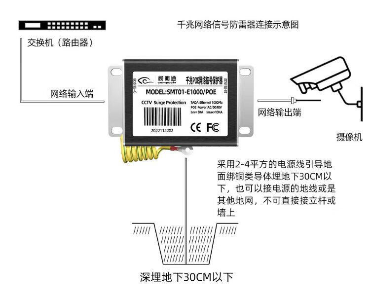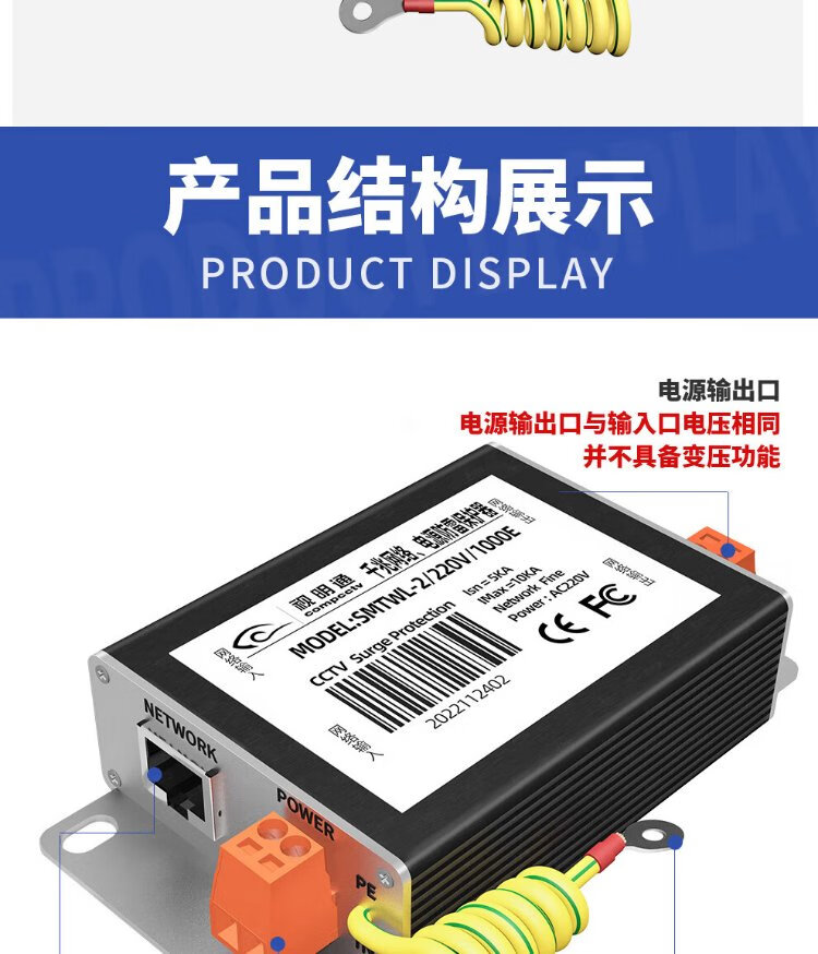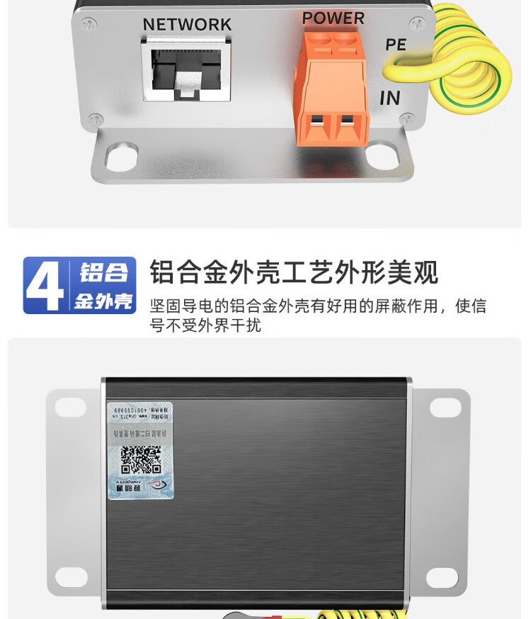 视明通 千兆二合一网络电源防雷器 监控摄像头避雷器1000M RJ45网线口信号浪涌保护器