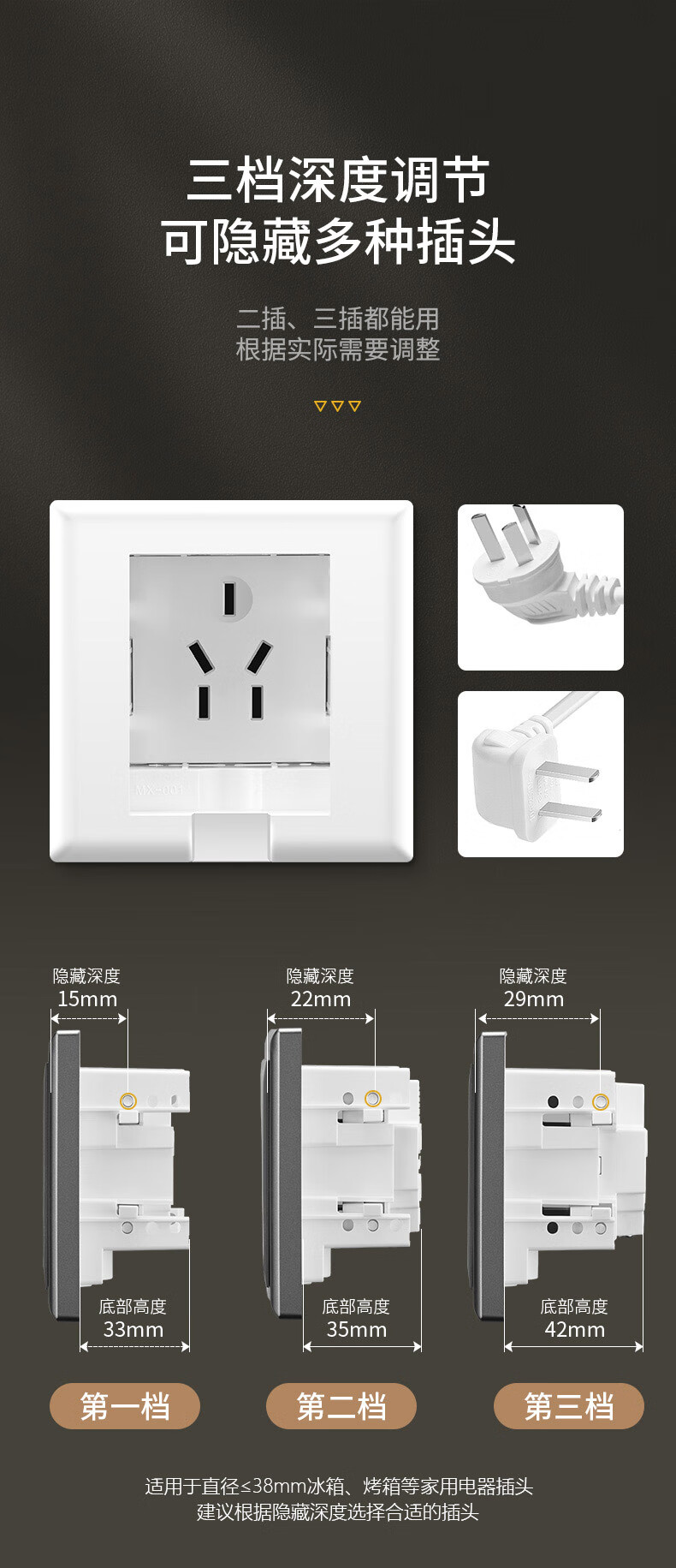 DELIXI switch socket type 86 embedded socket refrigerator embedded socket hidden socket white 10A five holes