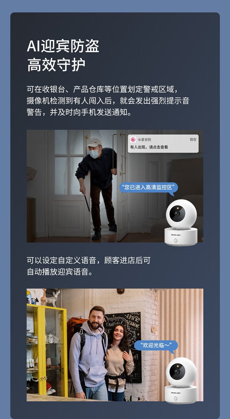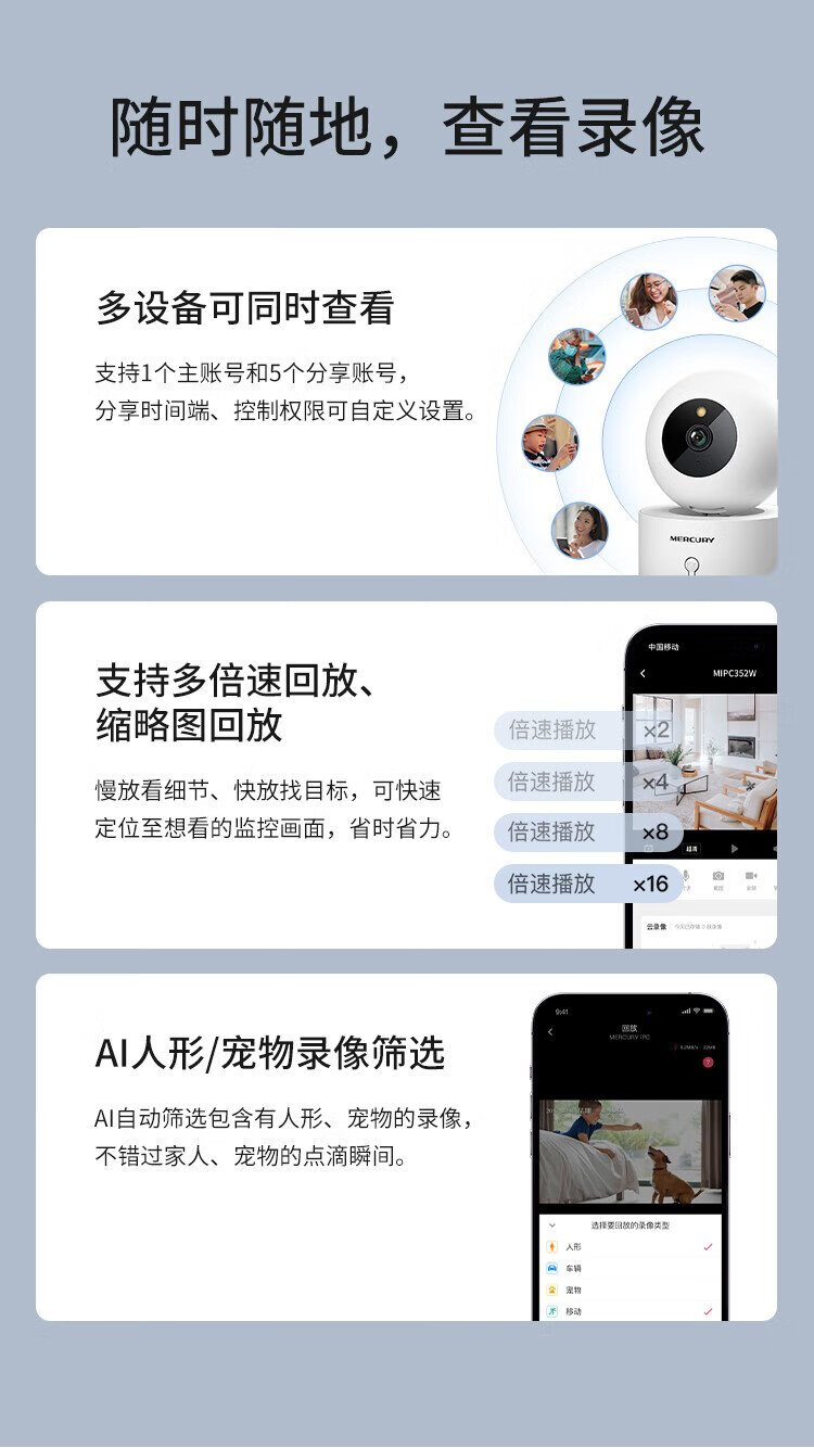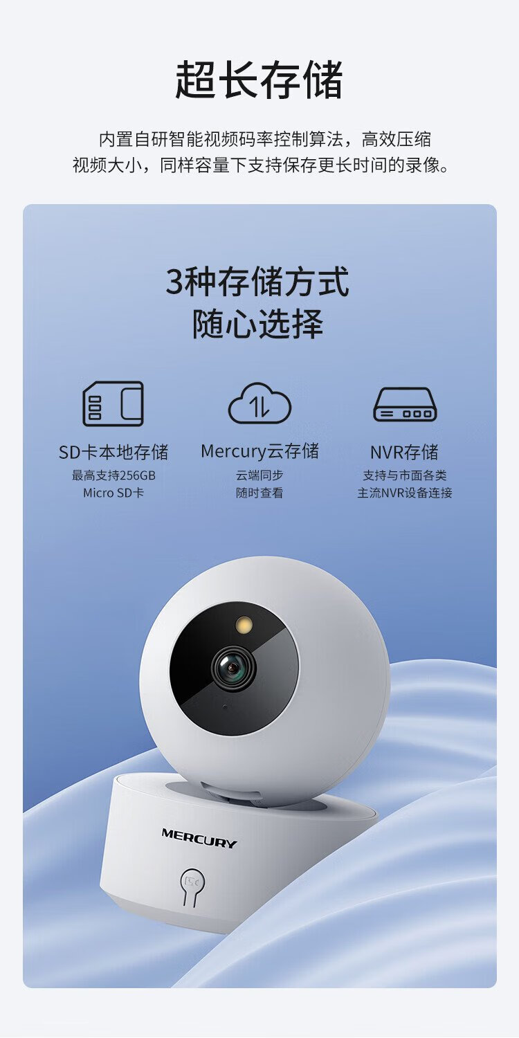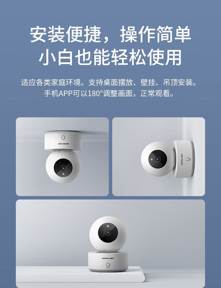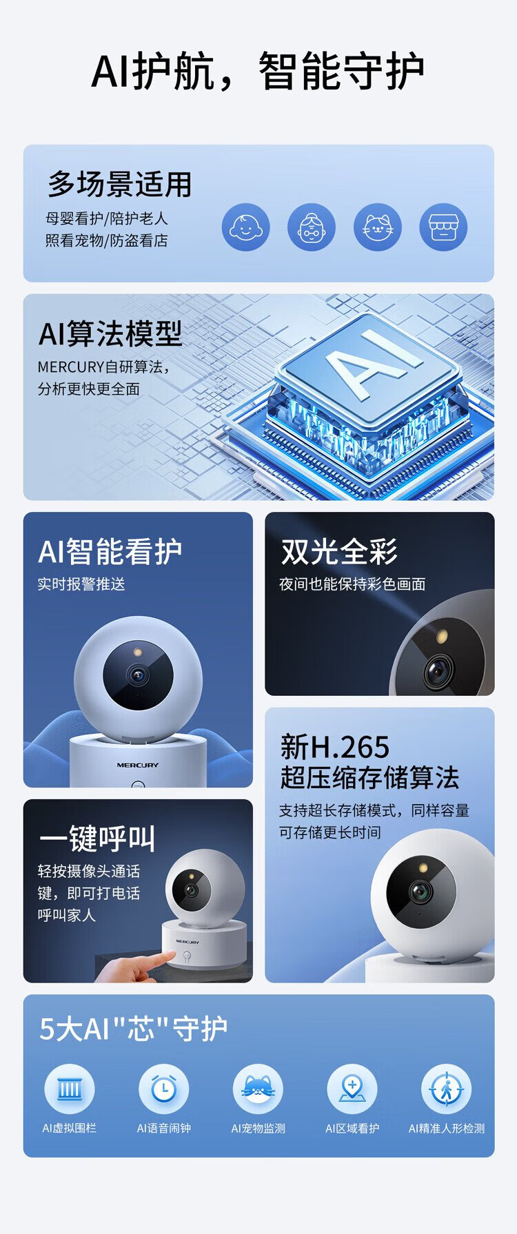 MERCURY smart camera pan/tilt 5 million pixels 3K panoramic full color night vision humanoid pet detection baby care monitor home wireless mobile phone remote viewing call