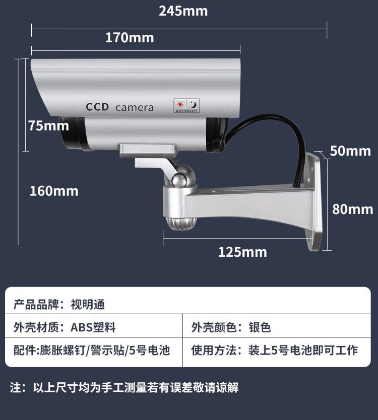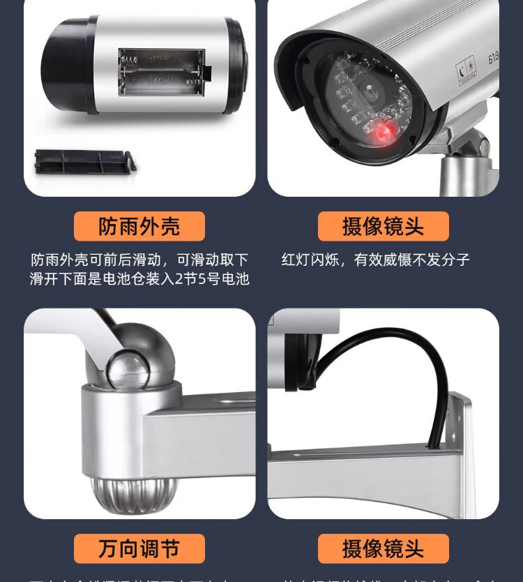 视明通 仿真监控摄像头假监控器带灯摄影头模型探头防盗防雨室外