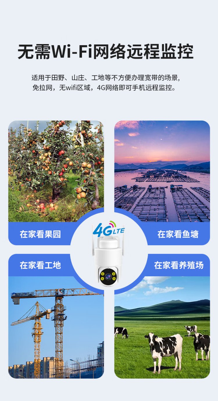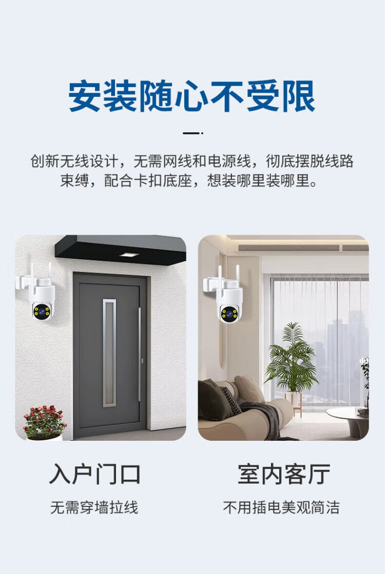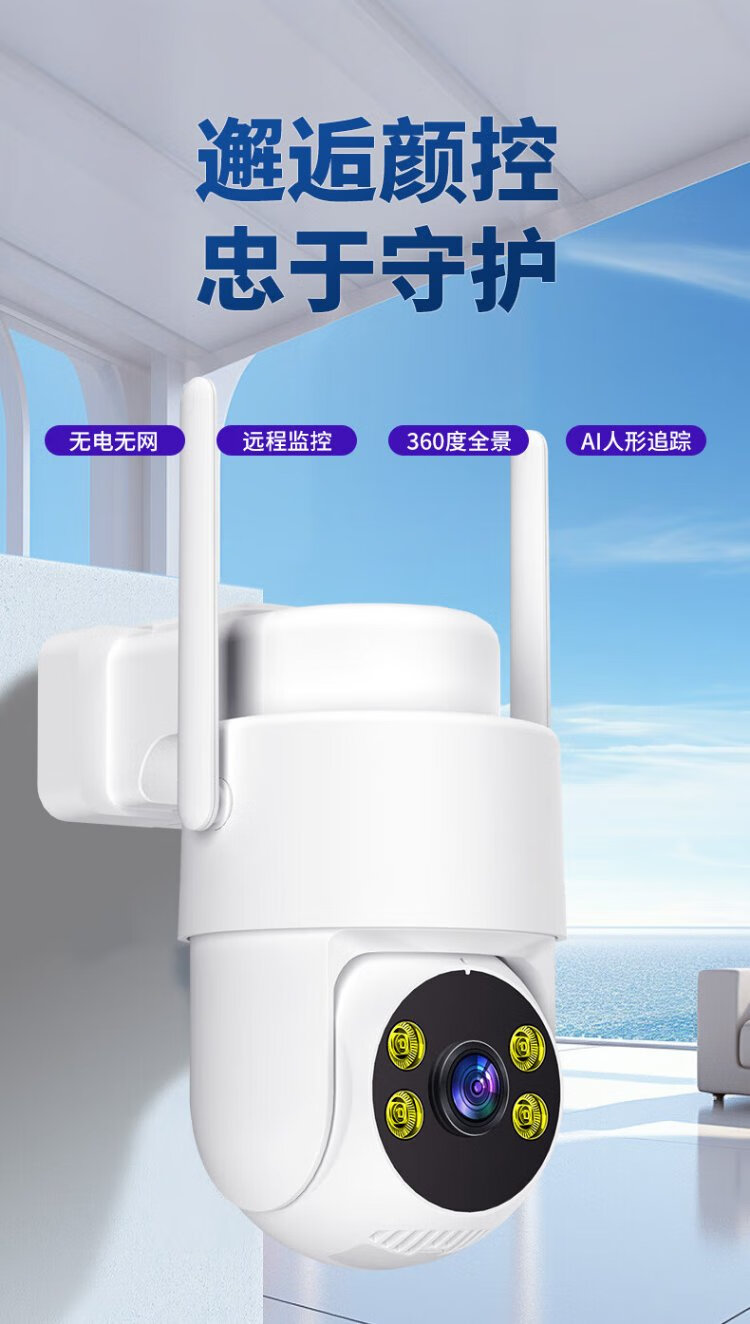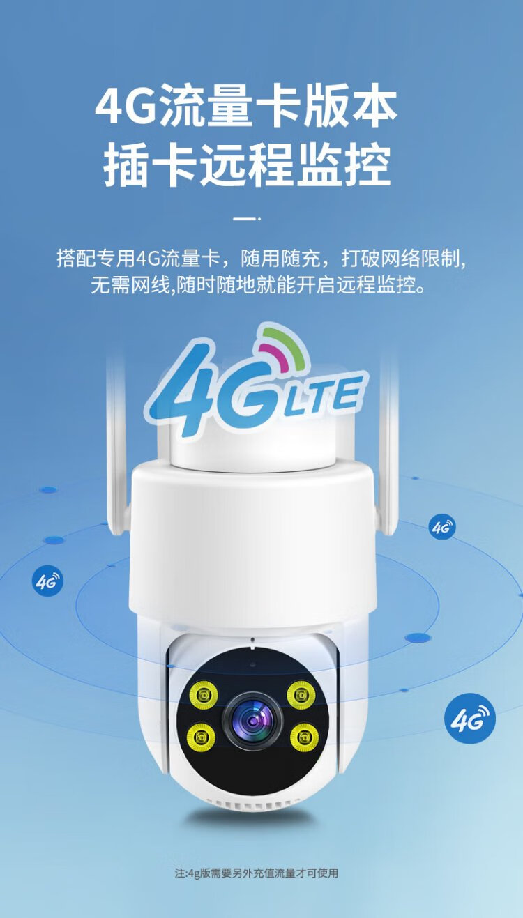 Great Wall 4G battery-free plug-in camera, lifetime data-free, no need to connect to wifi, wireless AI home monitor, 360-degree no blind spots, night vision, rural room, outdoor mobile phone remote