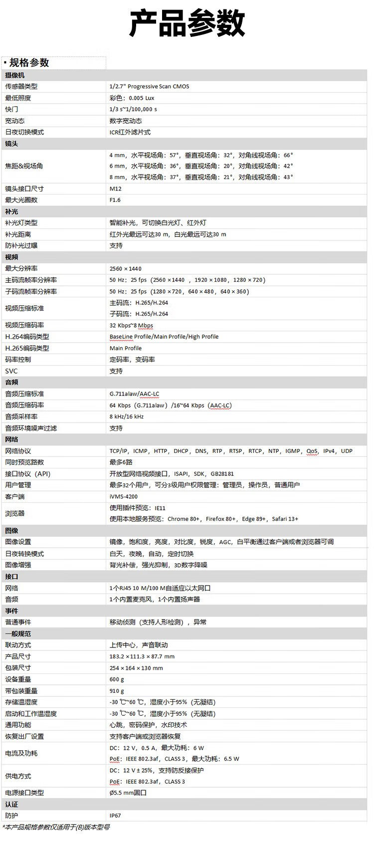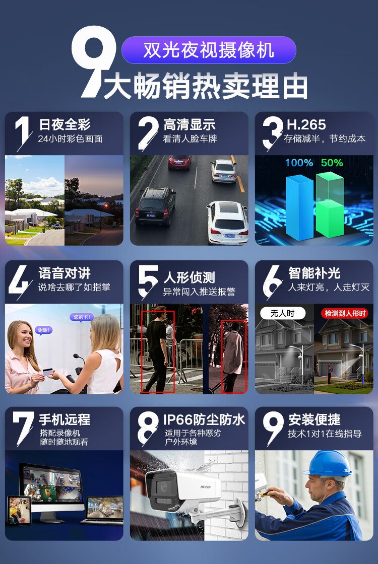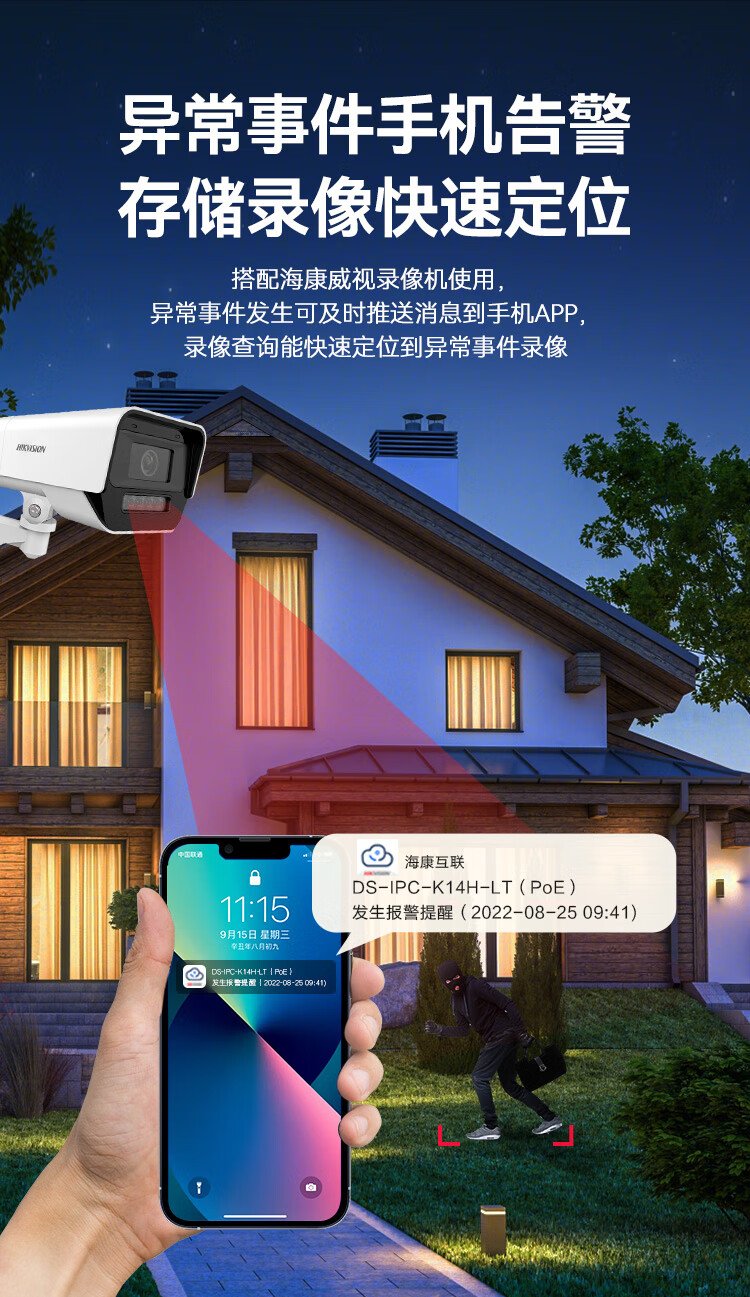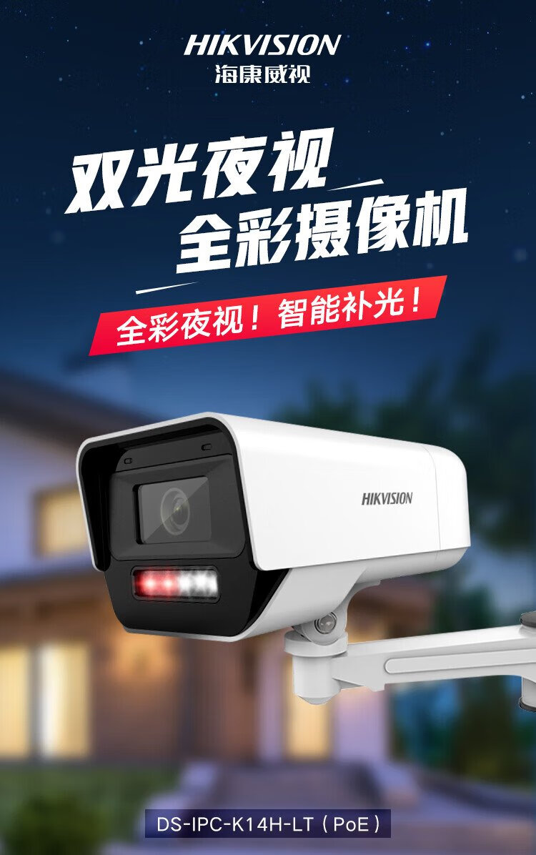 HIKVISION海康威视双光夜视监控摄像头400万高清全彩画面室内室外监控器手机远程语音对讲防水K14H-LT 4MM