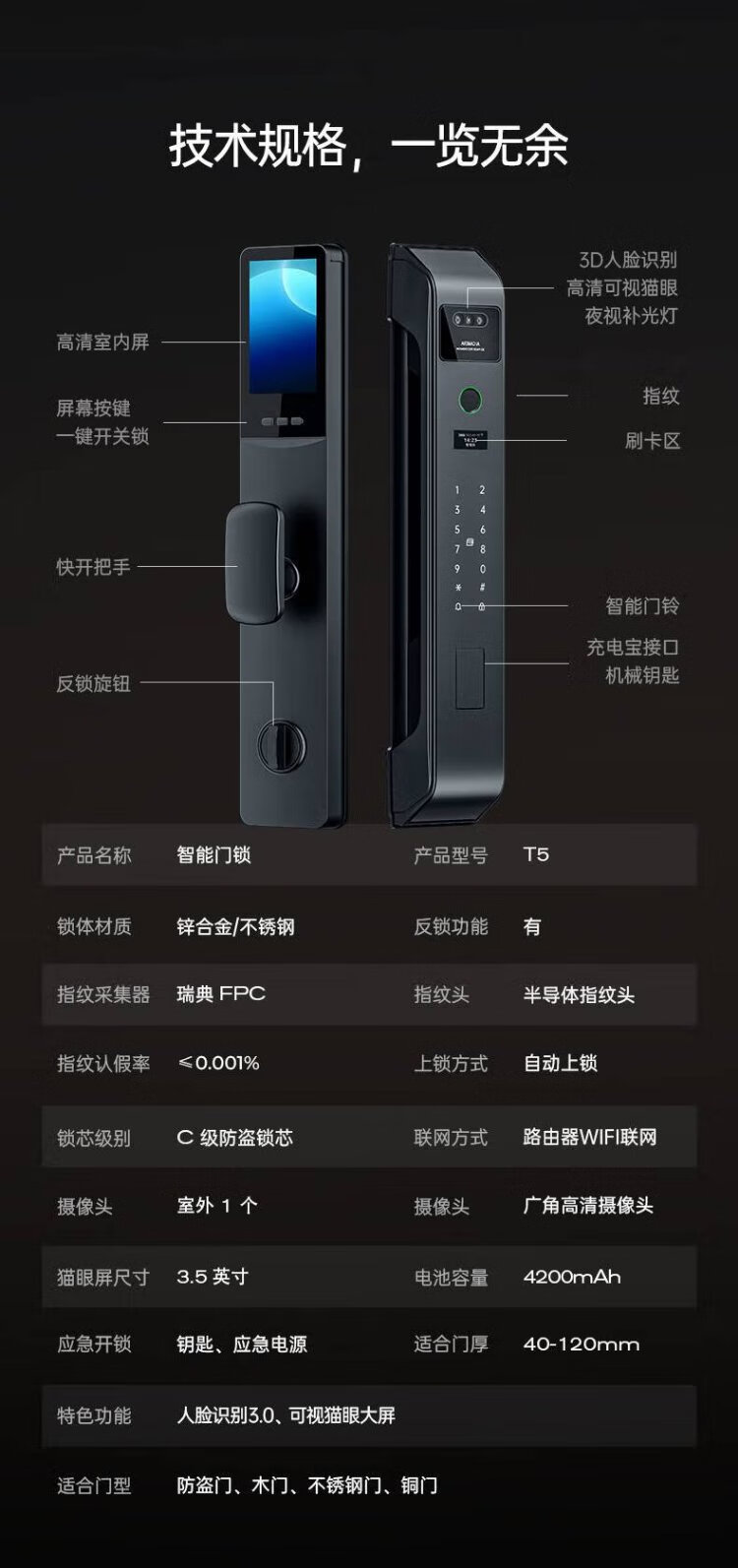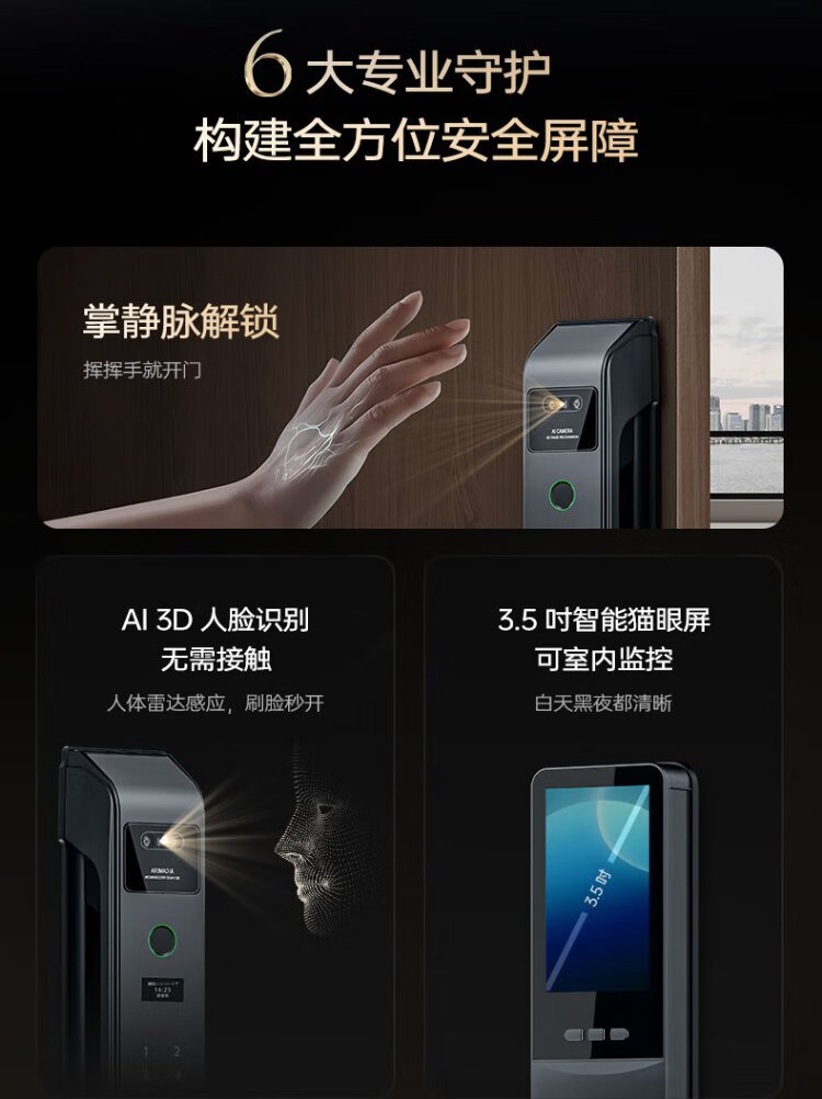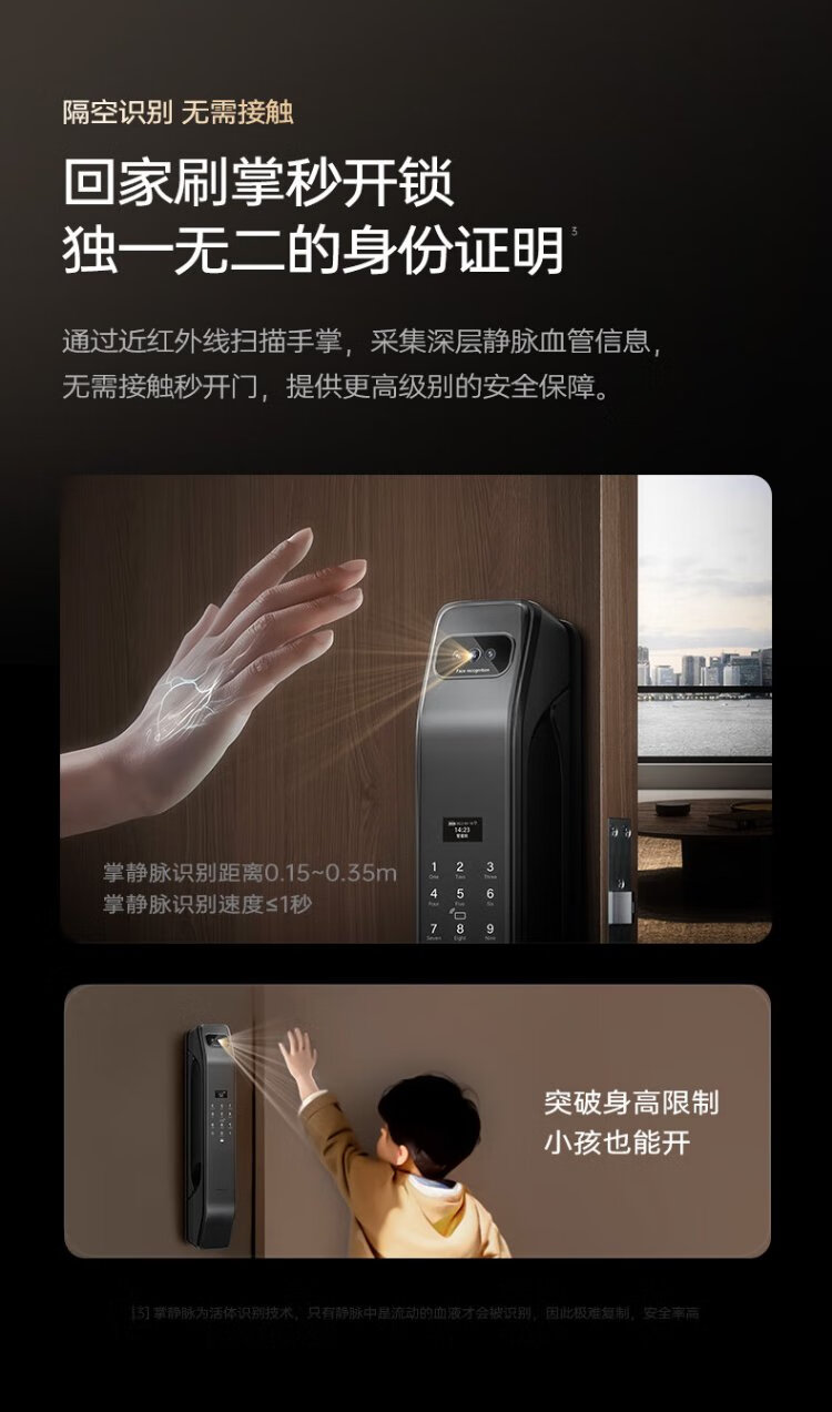 爵象智能门锁 掌静脉3D人脸识别指纹锁 C级锁芯电子锁密码锁T5包安装