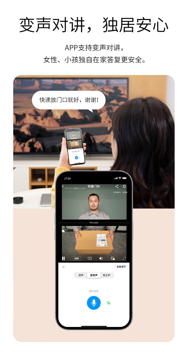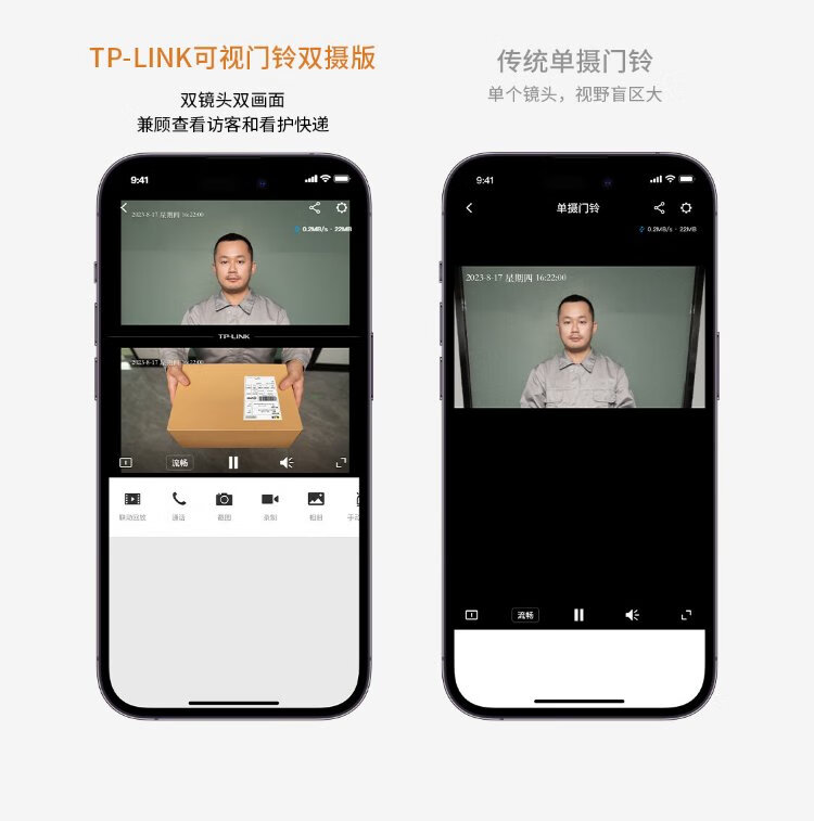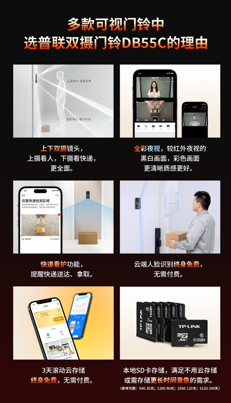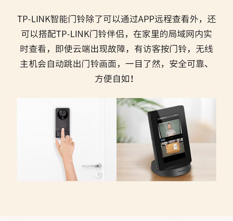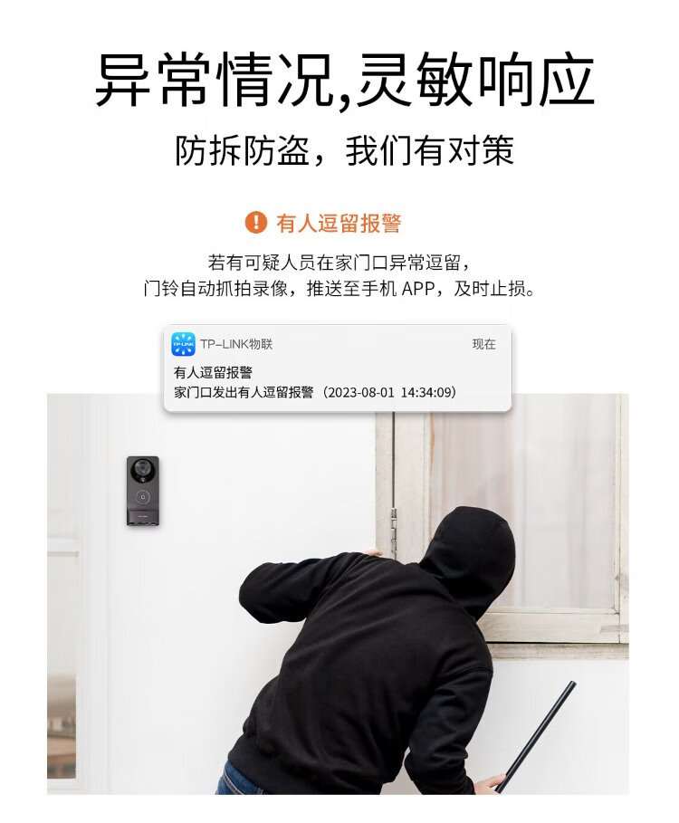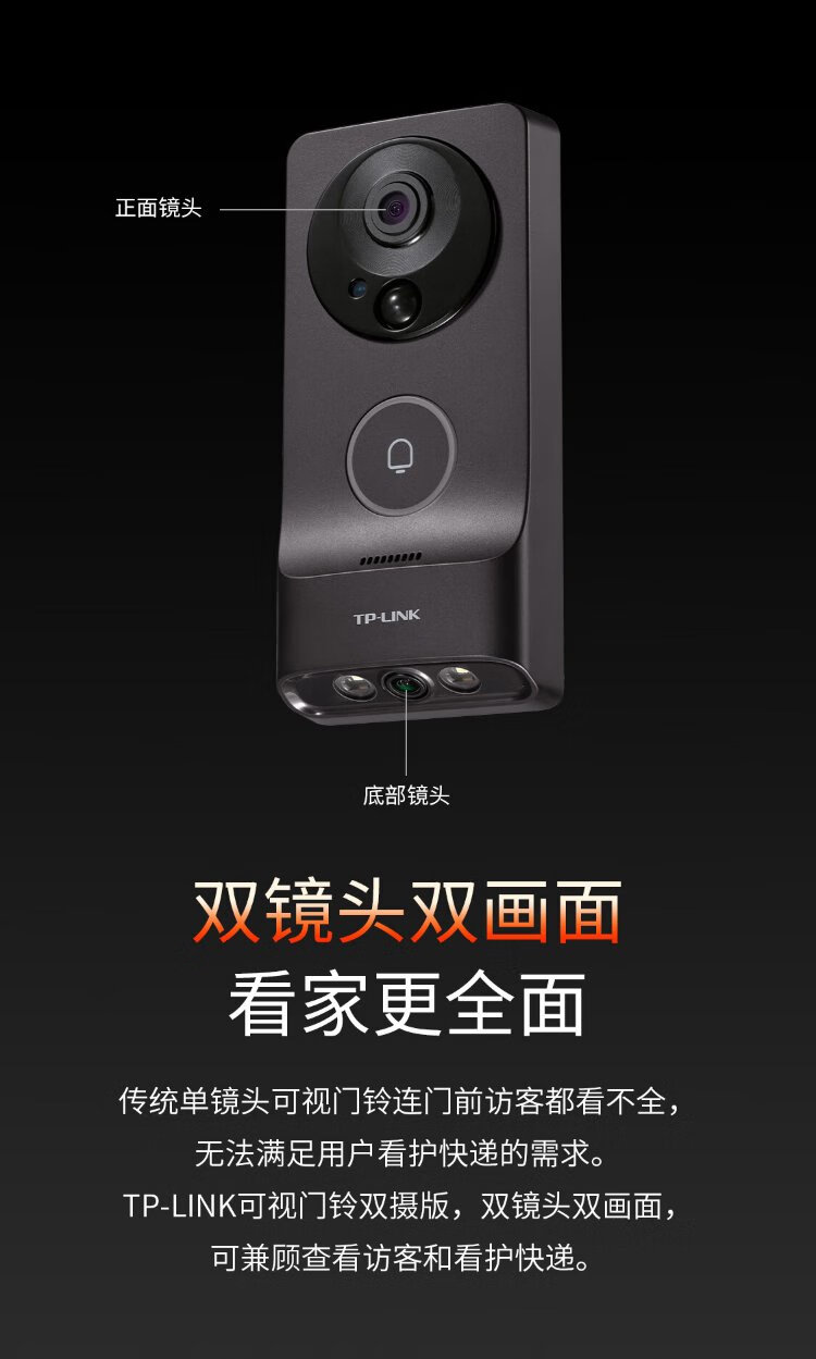 普联(TP-LINK)智能双摄可视门铃 电子猫眼家用监控摄像头 全彩夜视 快递看护 逗留强拆报警 远程查看对讲 DB55C